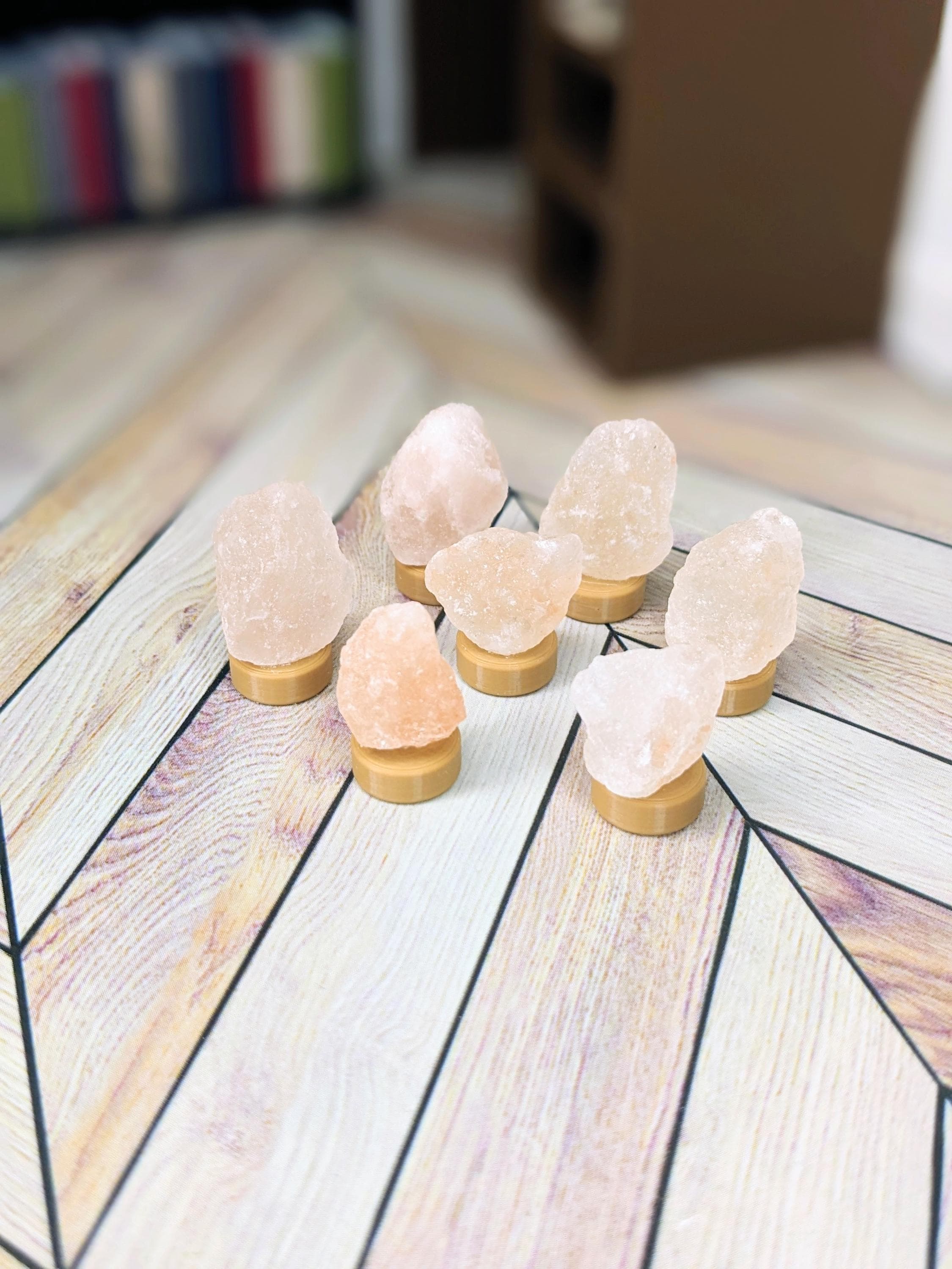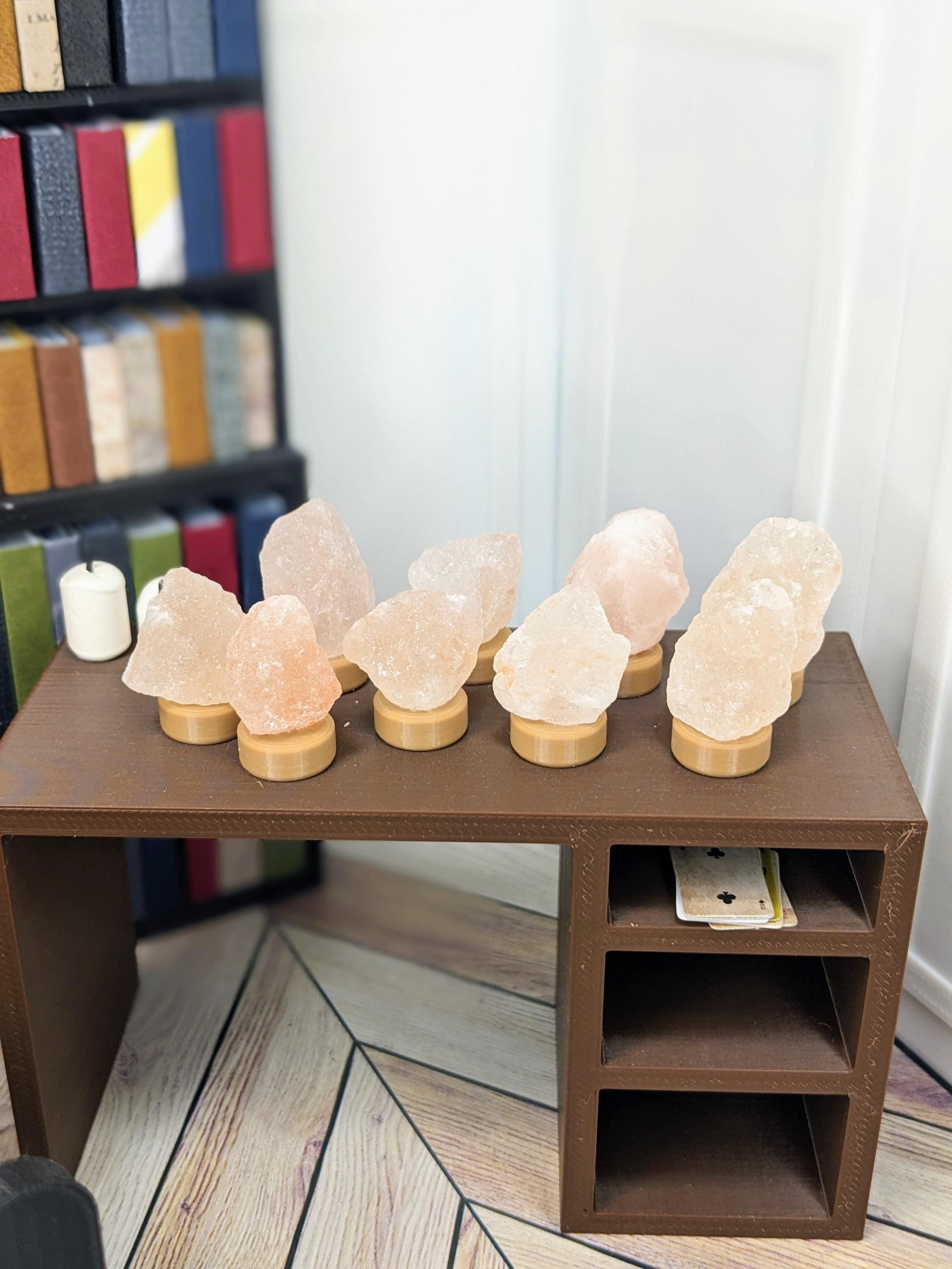 A teeny tiny salt lamp in 1:12 scale! These are made with a rose quartz rock and a 3D printed tan base. Each salt lamp is perfectly pink, shiny, and unique in shape and size, so dimensions are approximate. You will receive one salt lamp. Each one is unique and the one you receive may differ from the photos. This item is non-functional. It does not light up or glow.