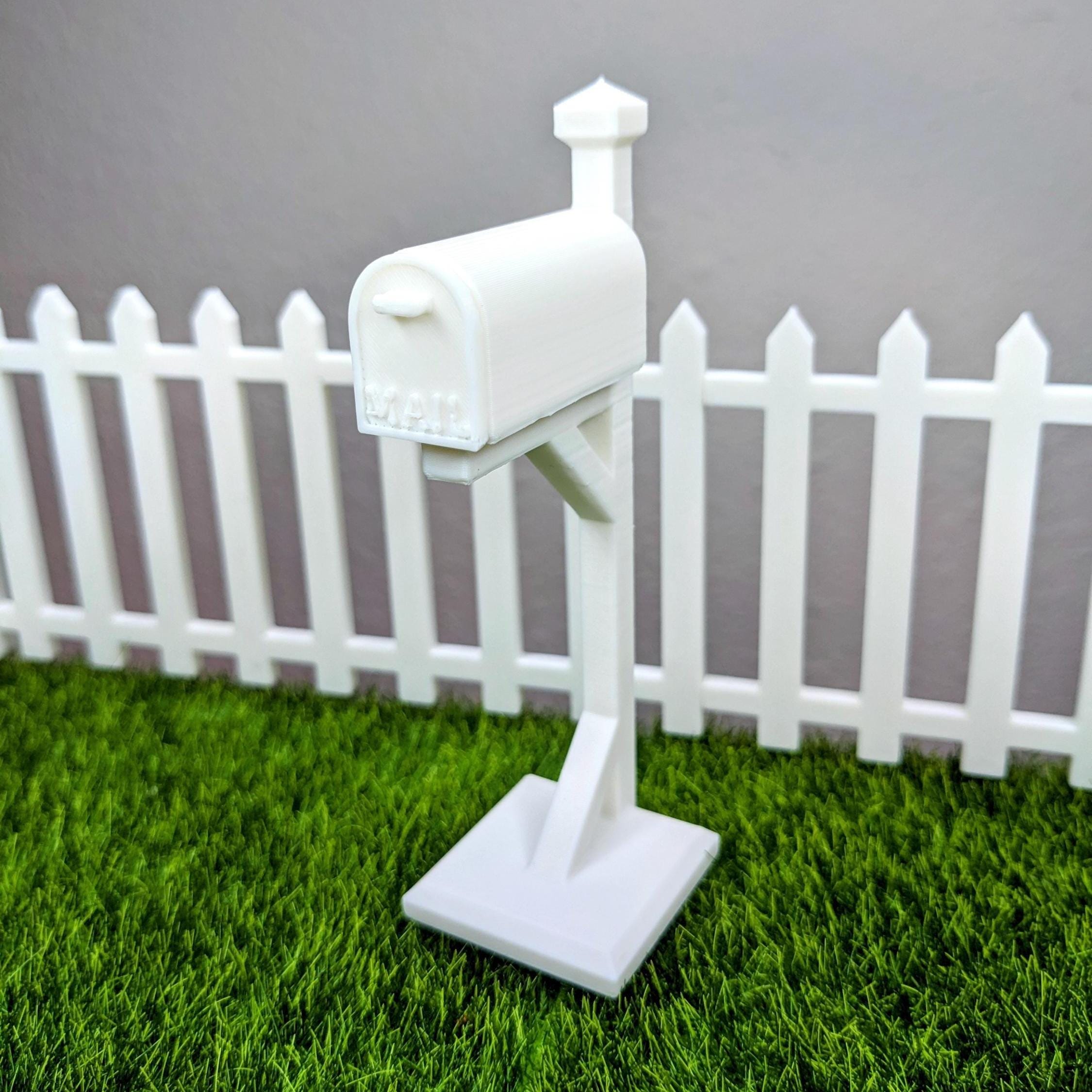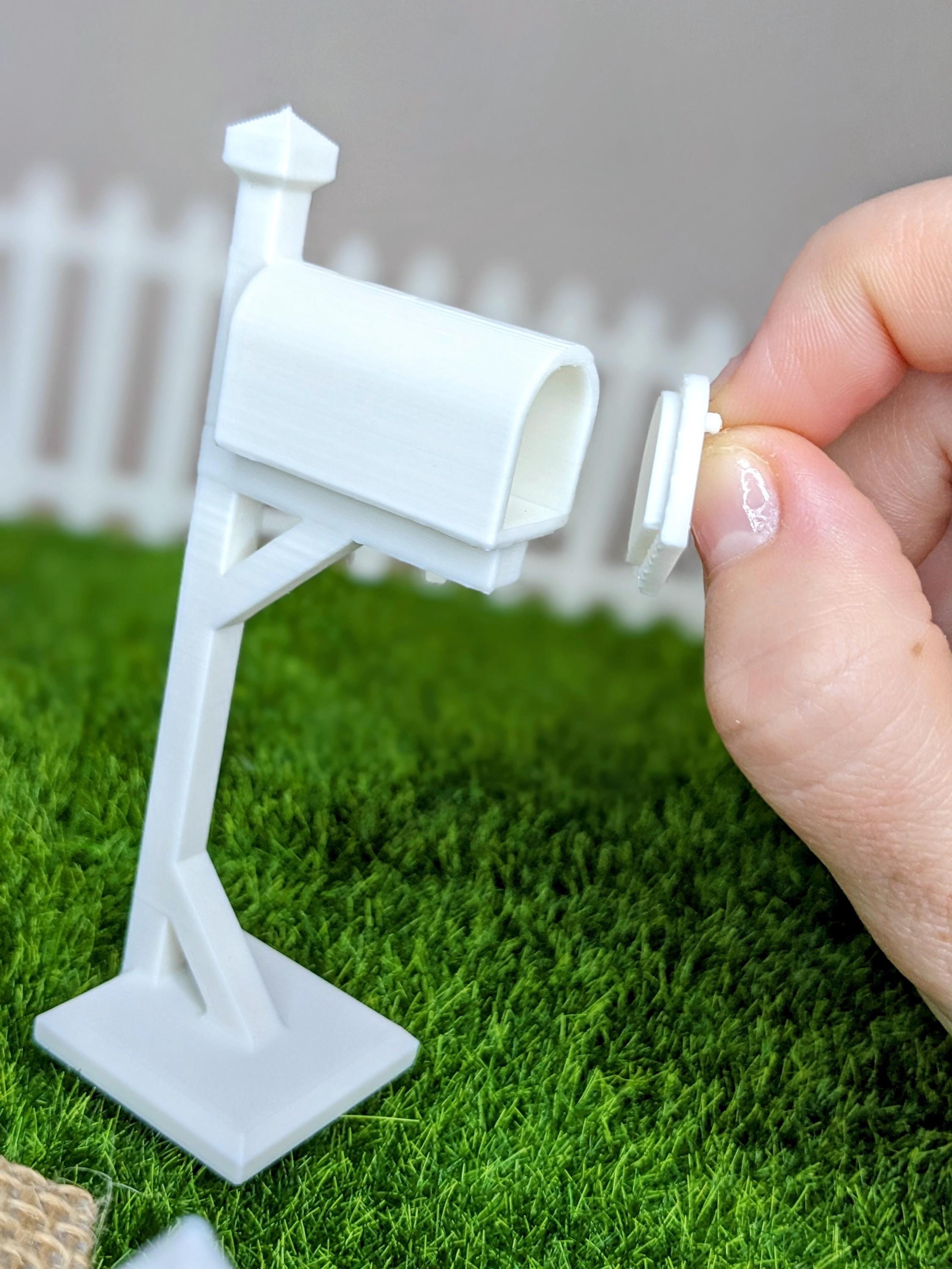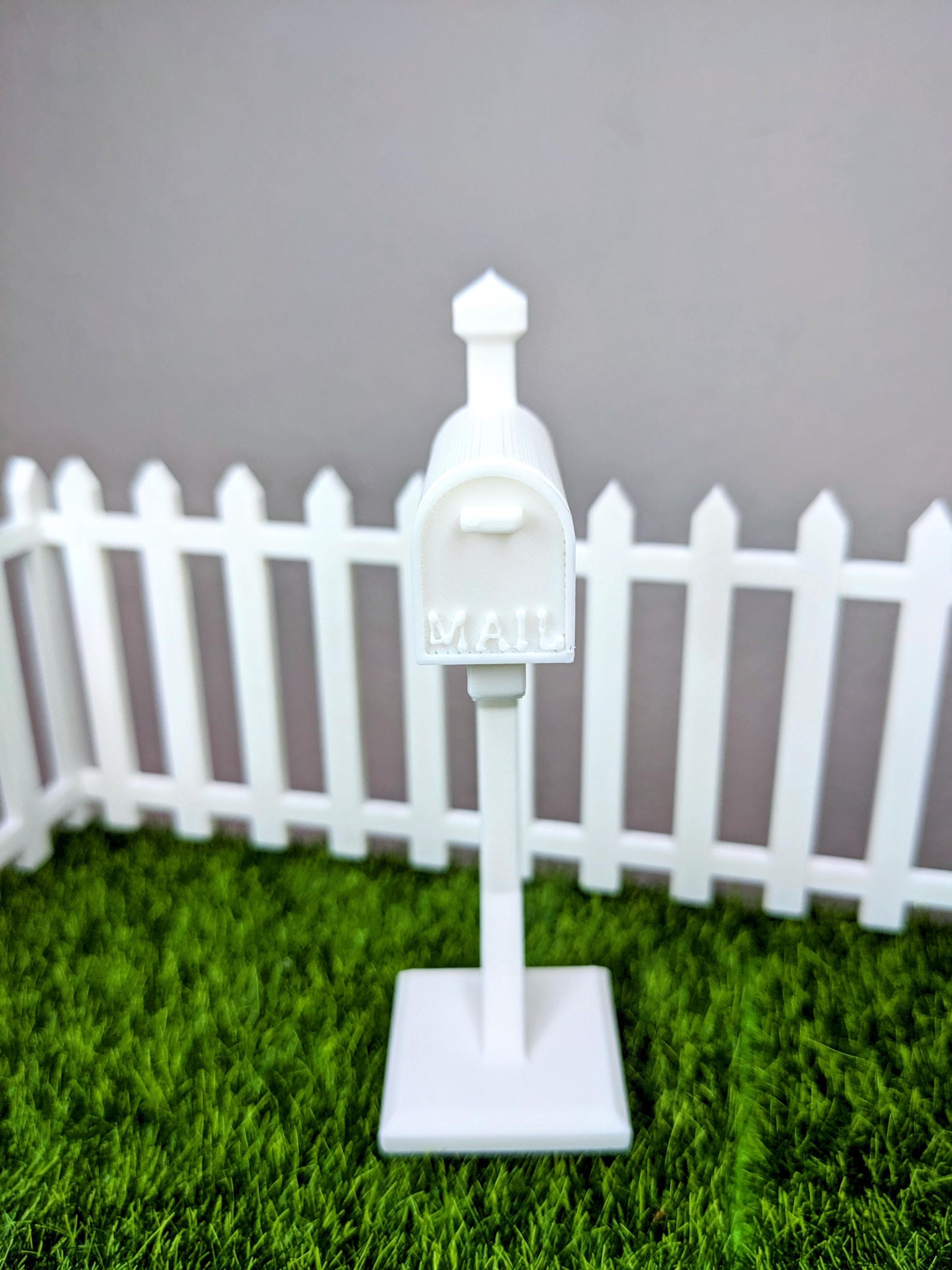 *Original Design!* A mailbox in 1:12 scale! This mailbox is 3D printed with high quality PLA plastic, with a functioning door that pulls off and a tiny piece of mini mail. Perfect for your dolls front yard, porch, or post office diorama. The mailbox door does not have a hinge, it just pops off and on.