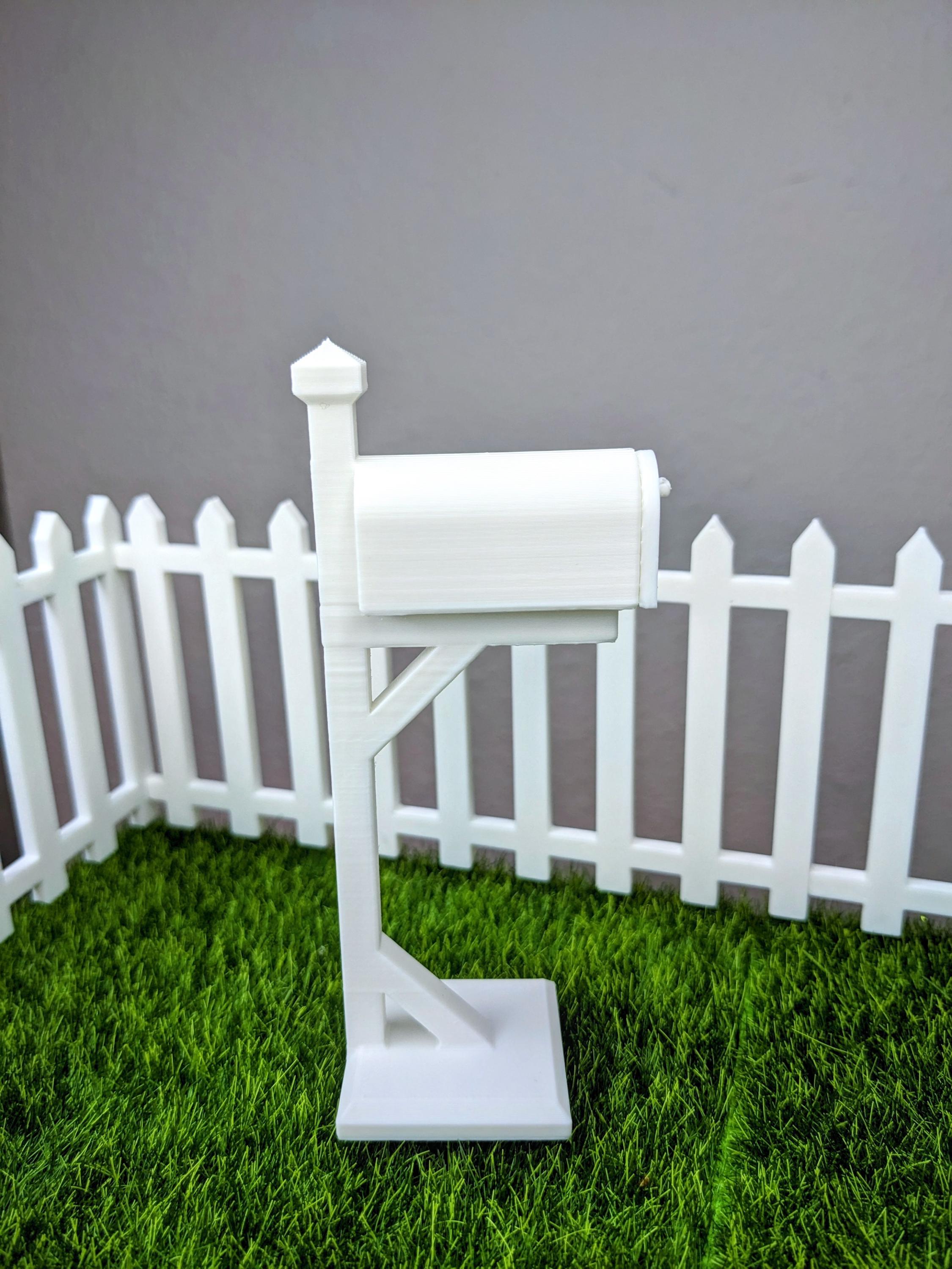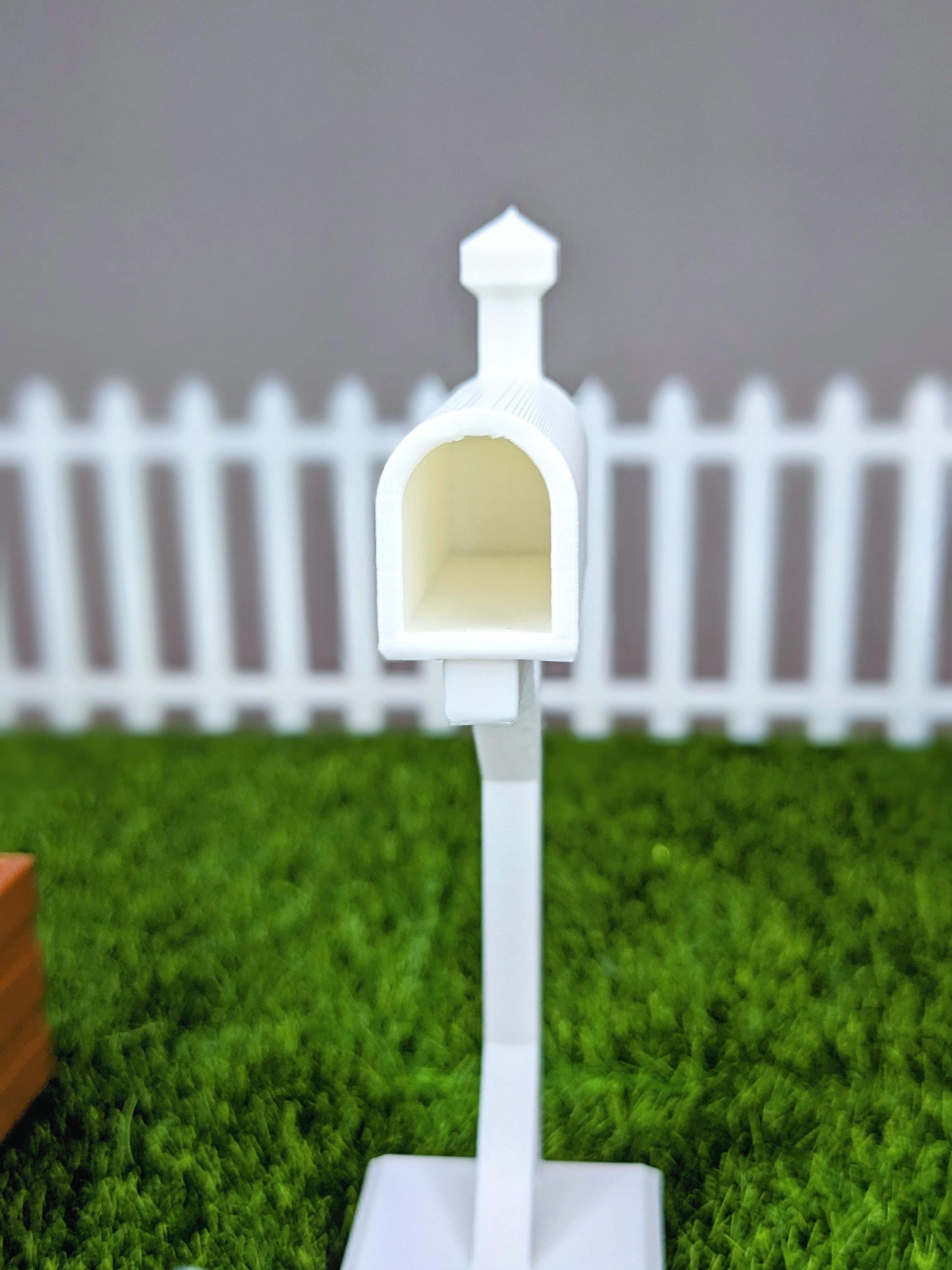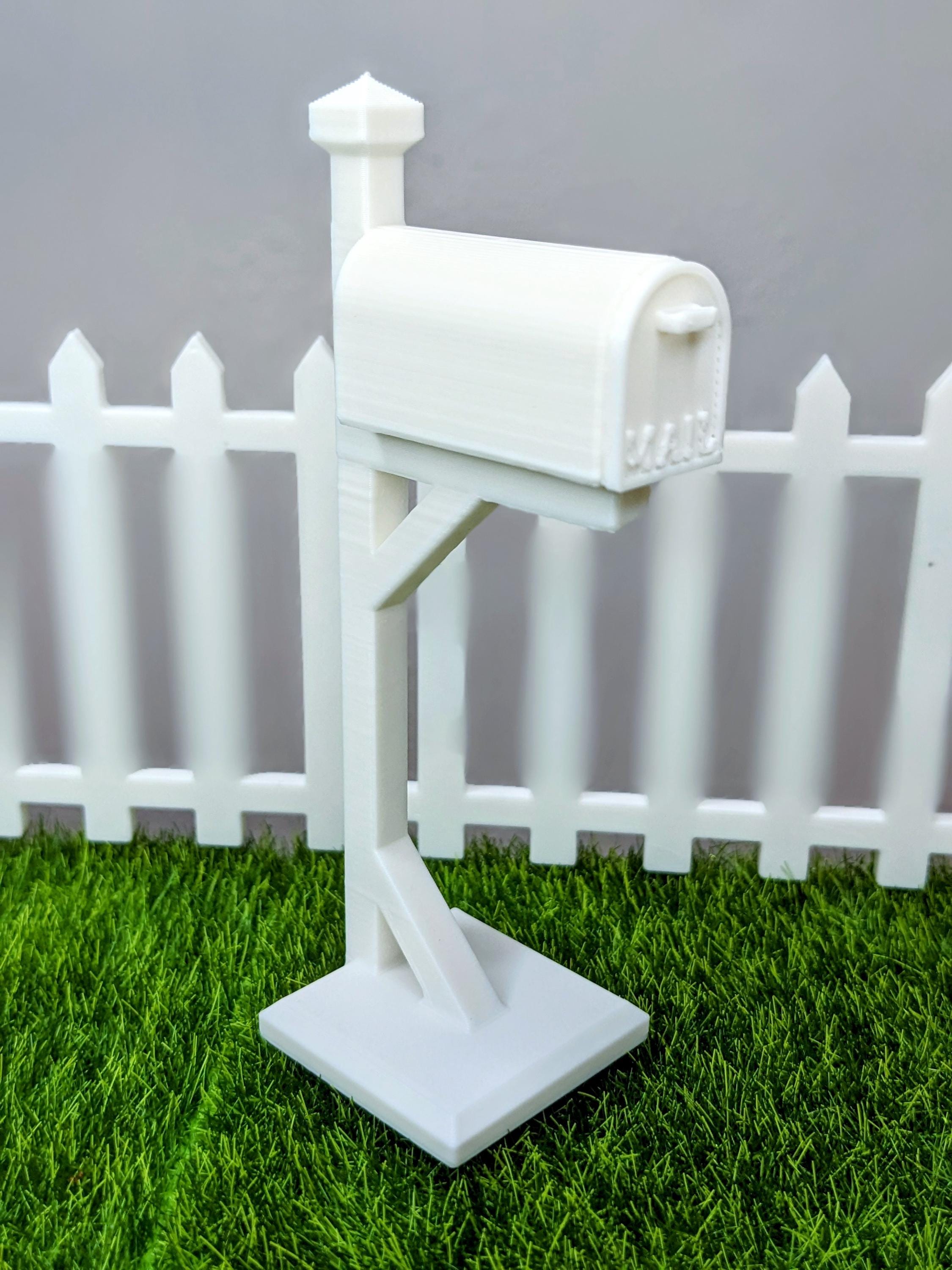 *Original Design!* A mailbox in 1:12 scale! This mailbox is 3D printed with high quality PLA plastic, with a functioning door that pulls off and a tiny piece of mini mail. Perfect for your dolls front yard, porch, or post office diorama. The mailbox door does not have a hinge, it just pops off and on.