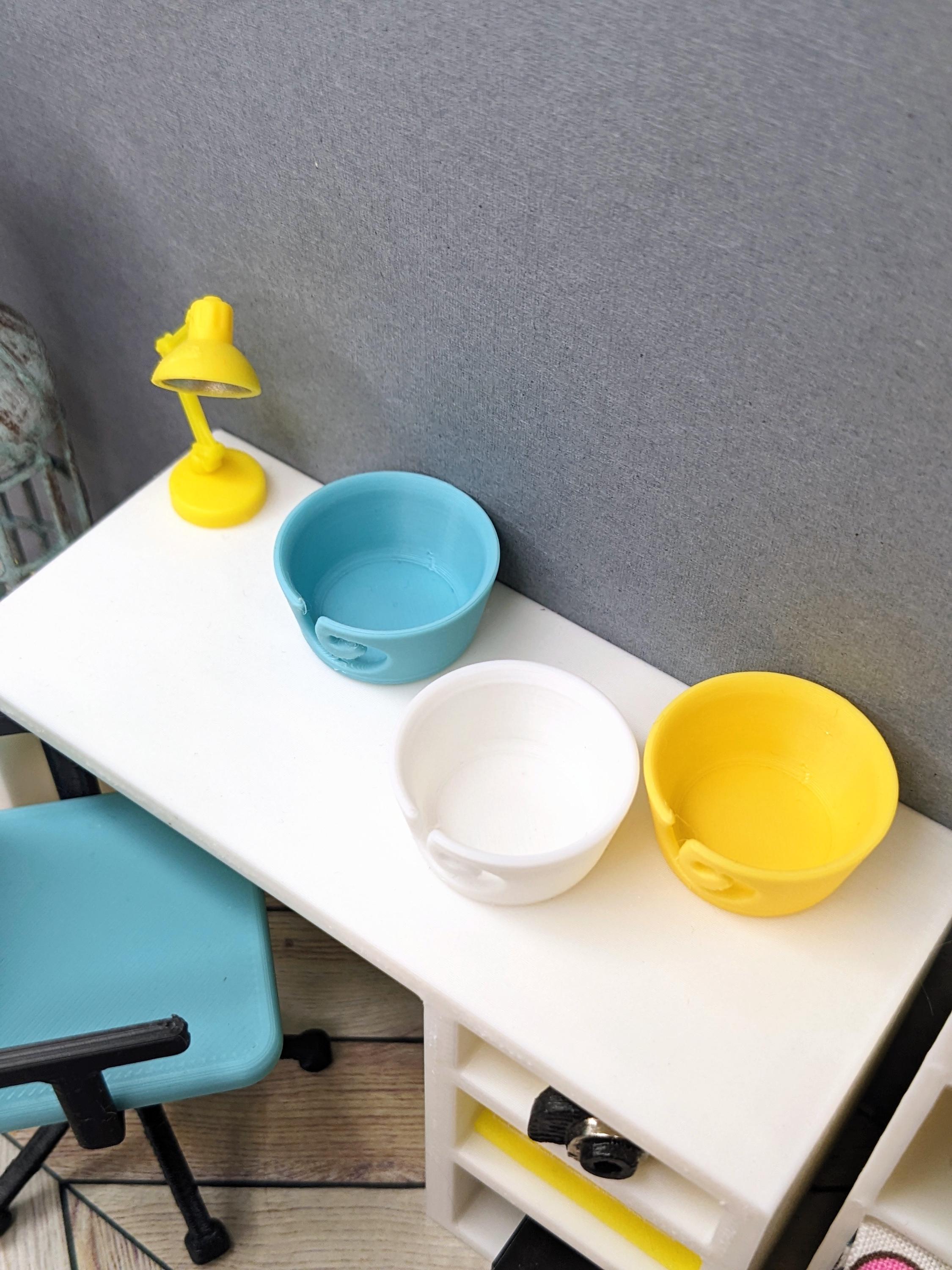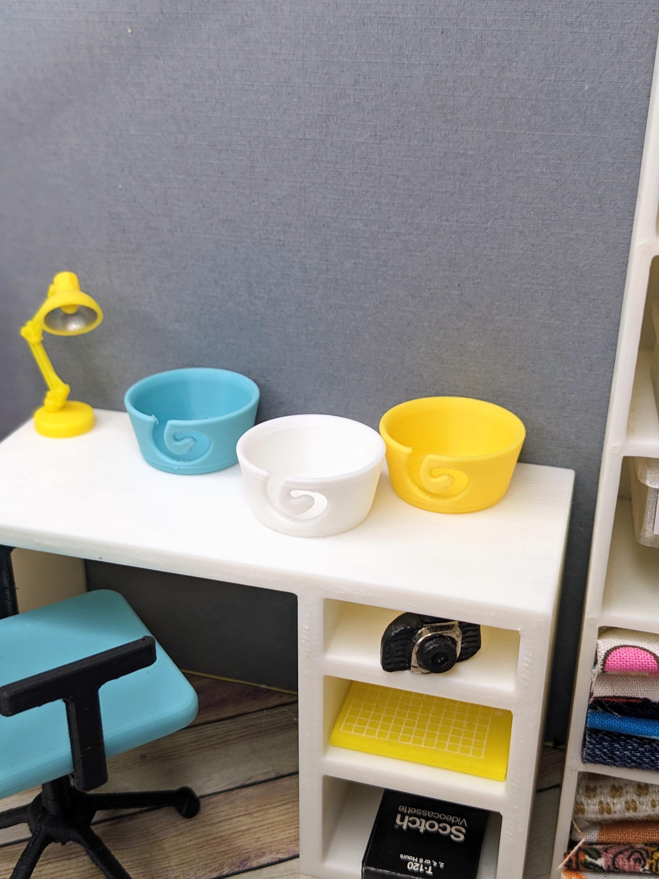 *Original Design!* A yarn bowl in 1:12 scale! Could also work as a smaller bowl in 1:6 scale. This yarn basket is 3D printed with high quality PLA plastic.