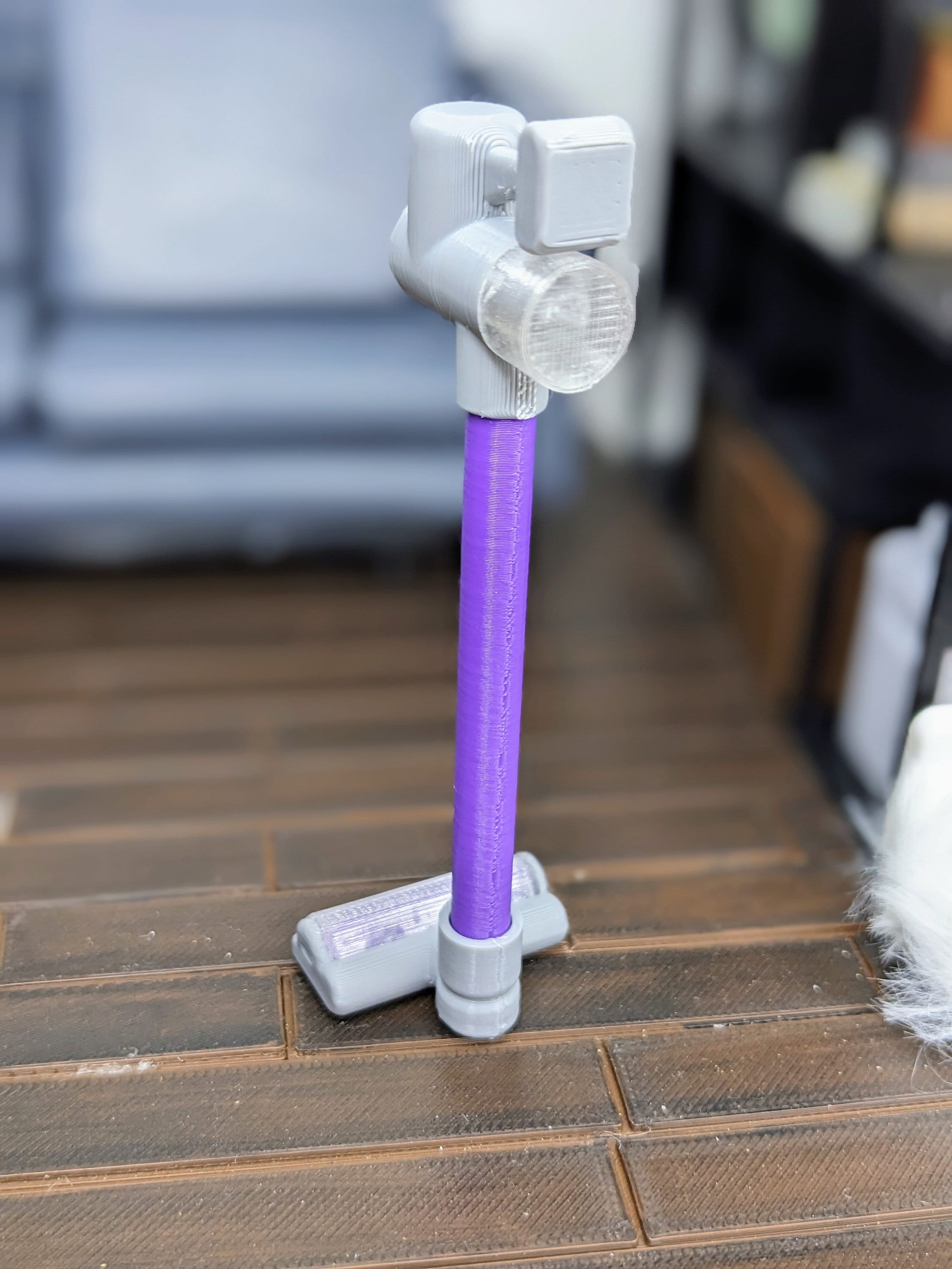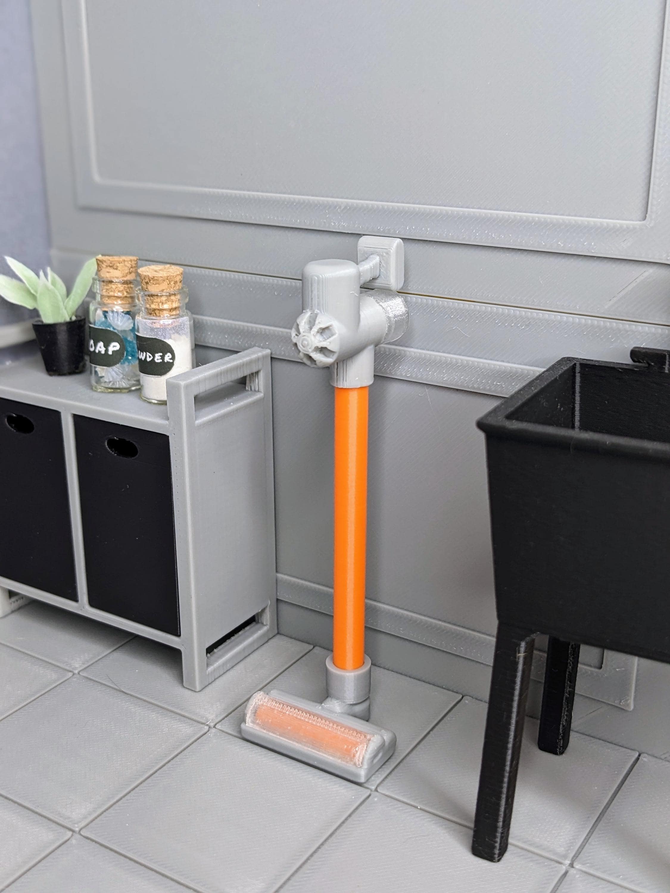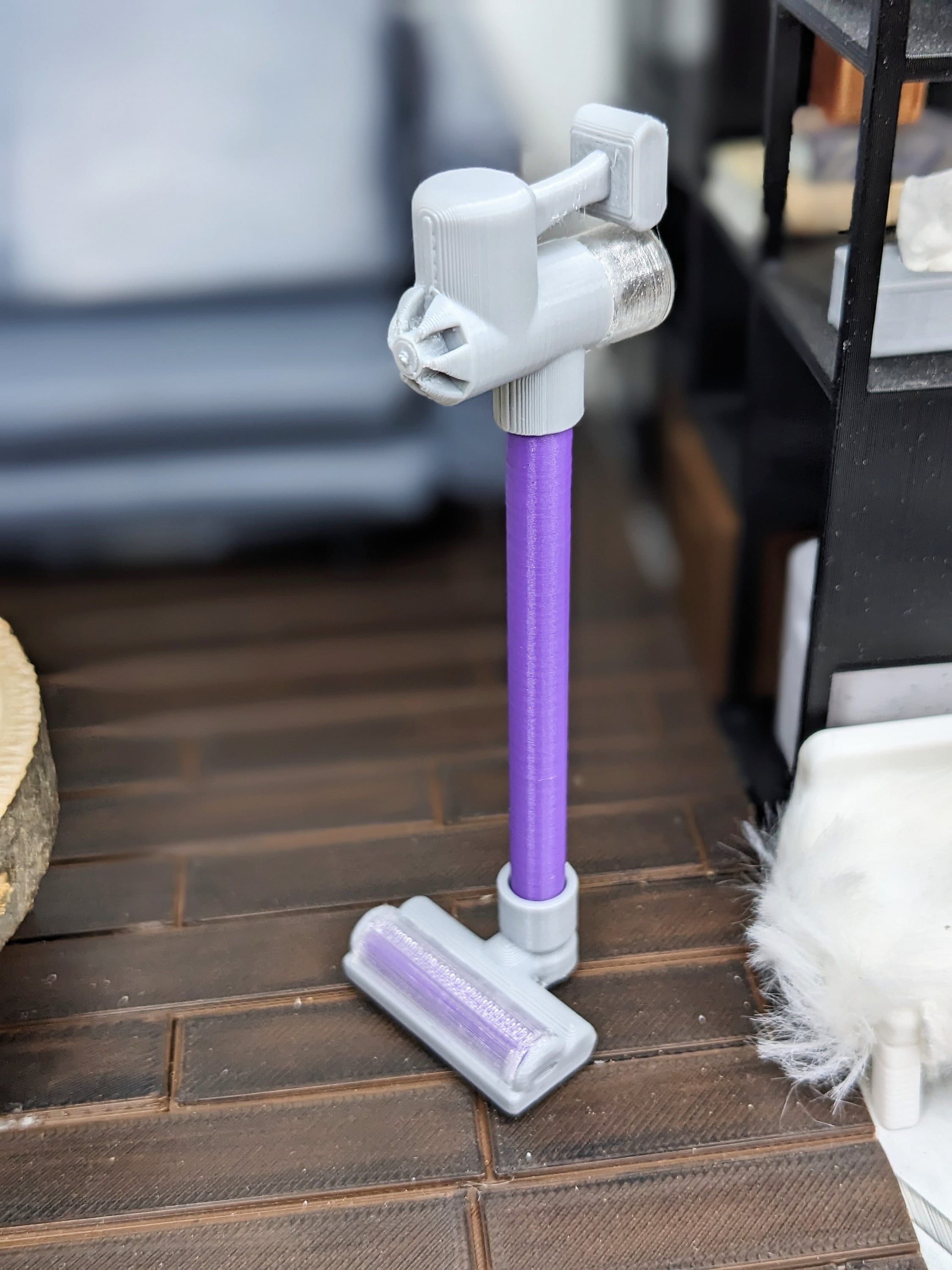 *Original Design!* An itty bitty vacuum cleaner in 1:12 scale! This vacuum is 3D printed with high quality PLA plastic and made of 6 different components, all carefully secured into one spectacular vacuum. Get ready to clean in style! This item is non-functional. It does not move, light up, or clean. Not intended for rough play. Other decor and accessories not included. Available with purple or orange accents.
