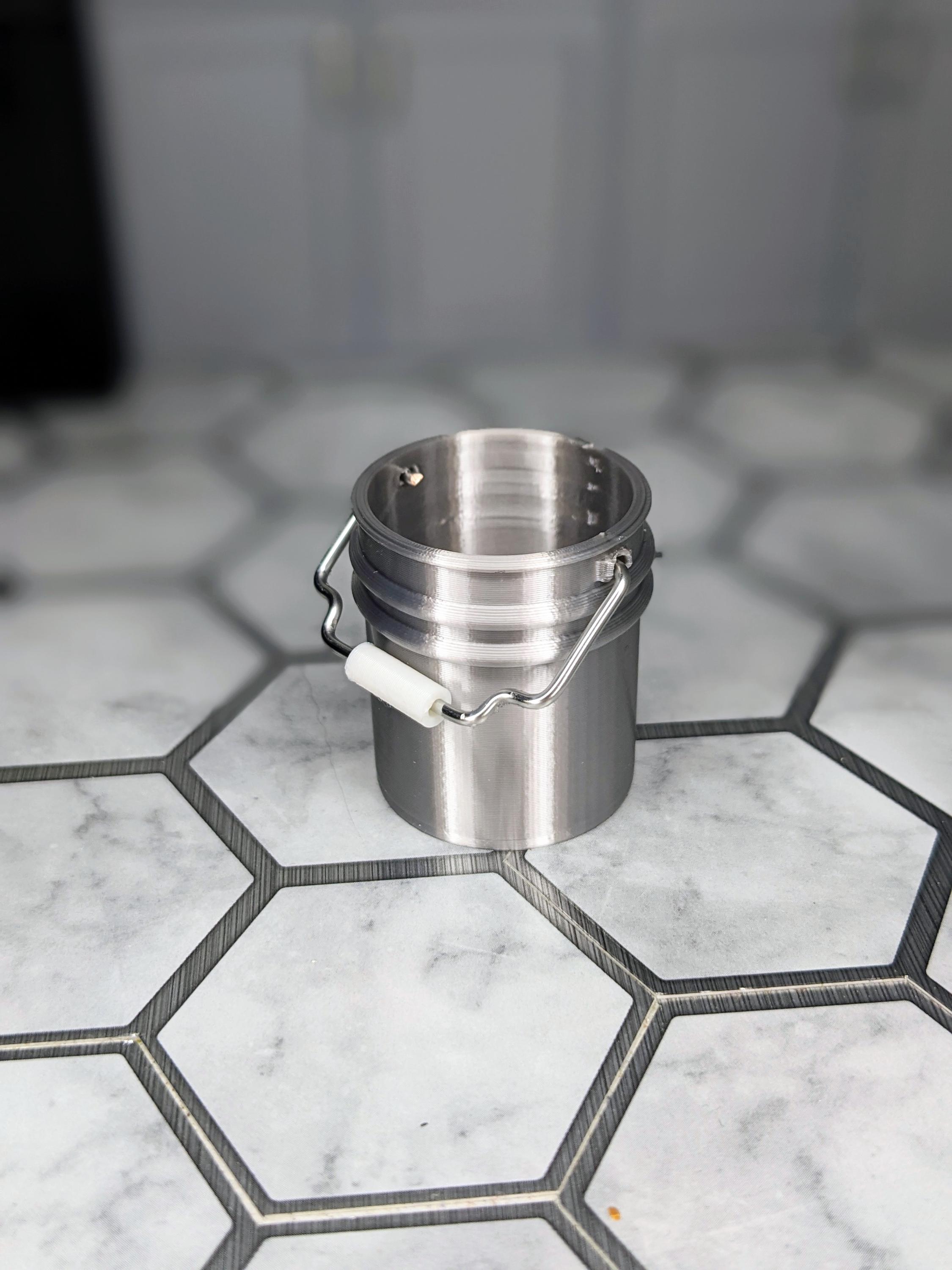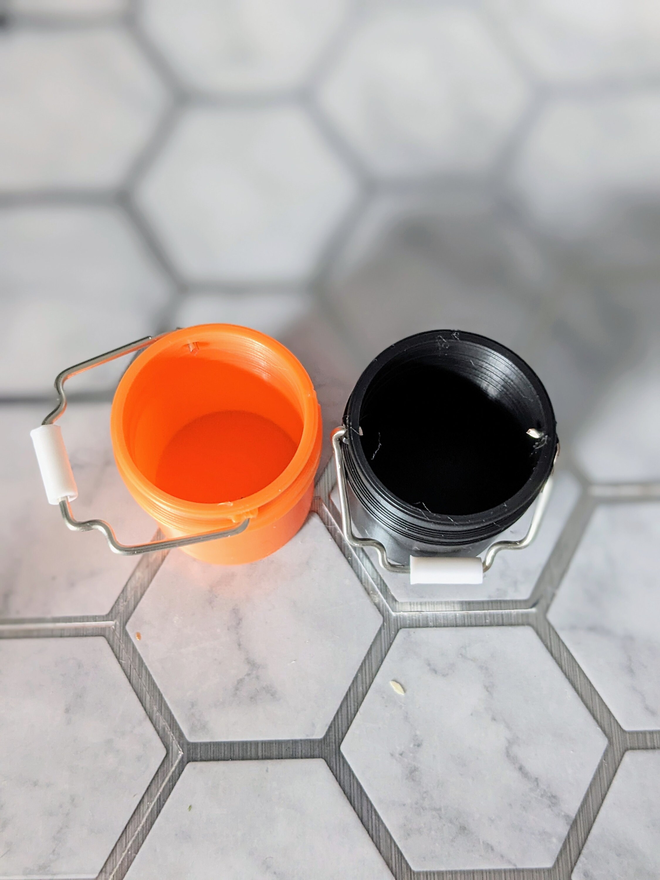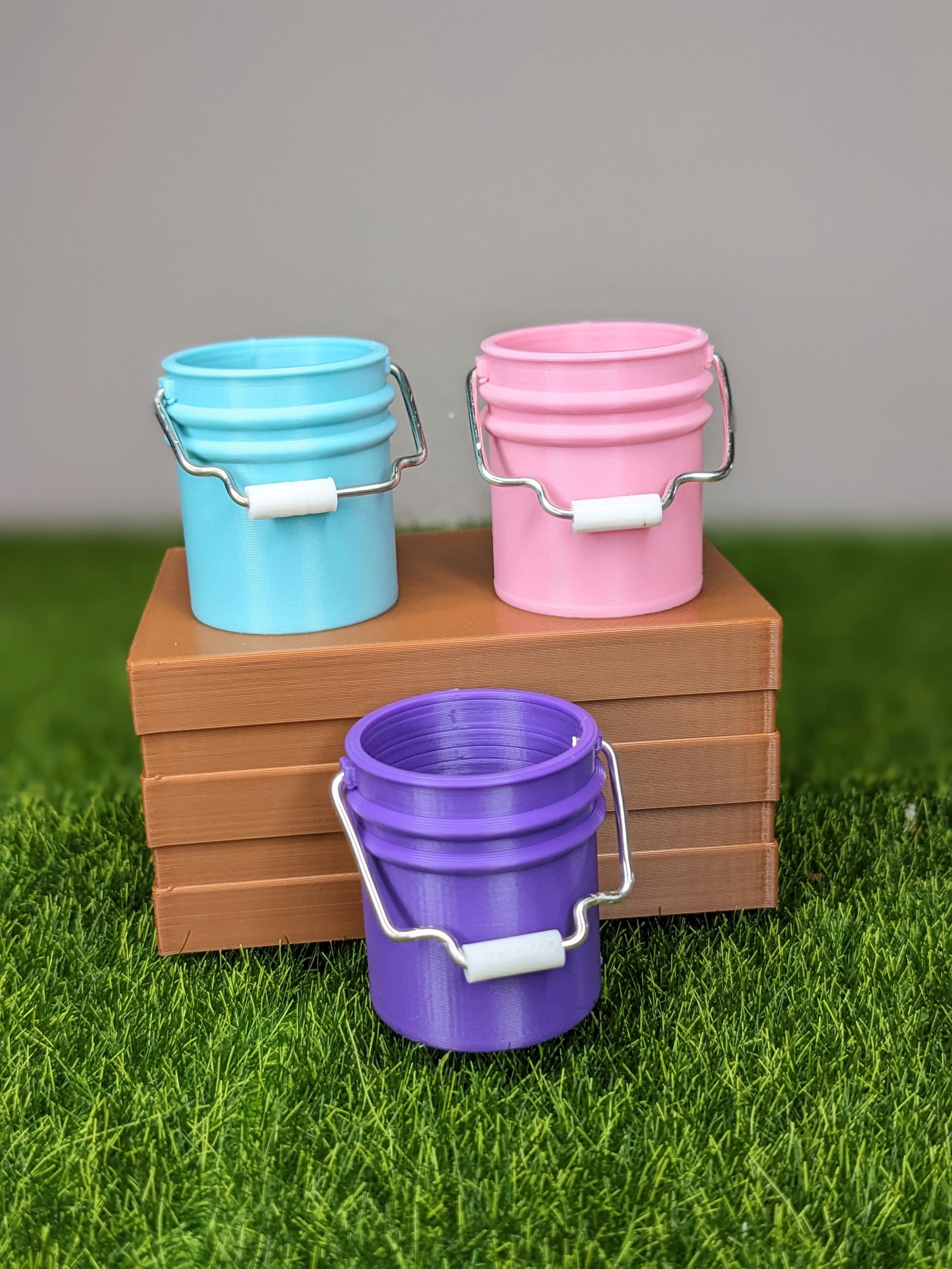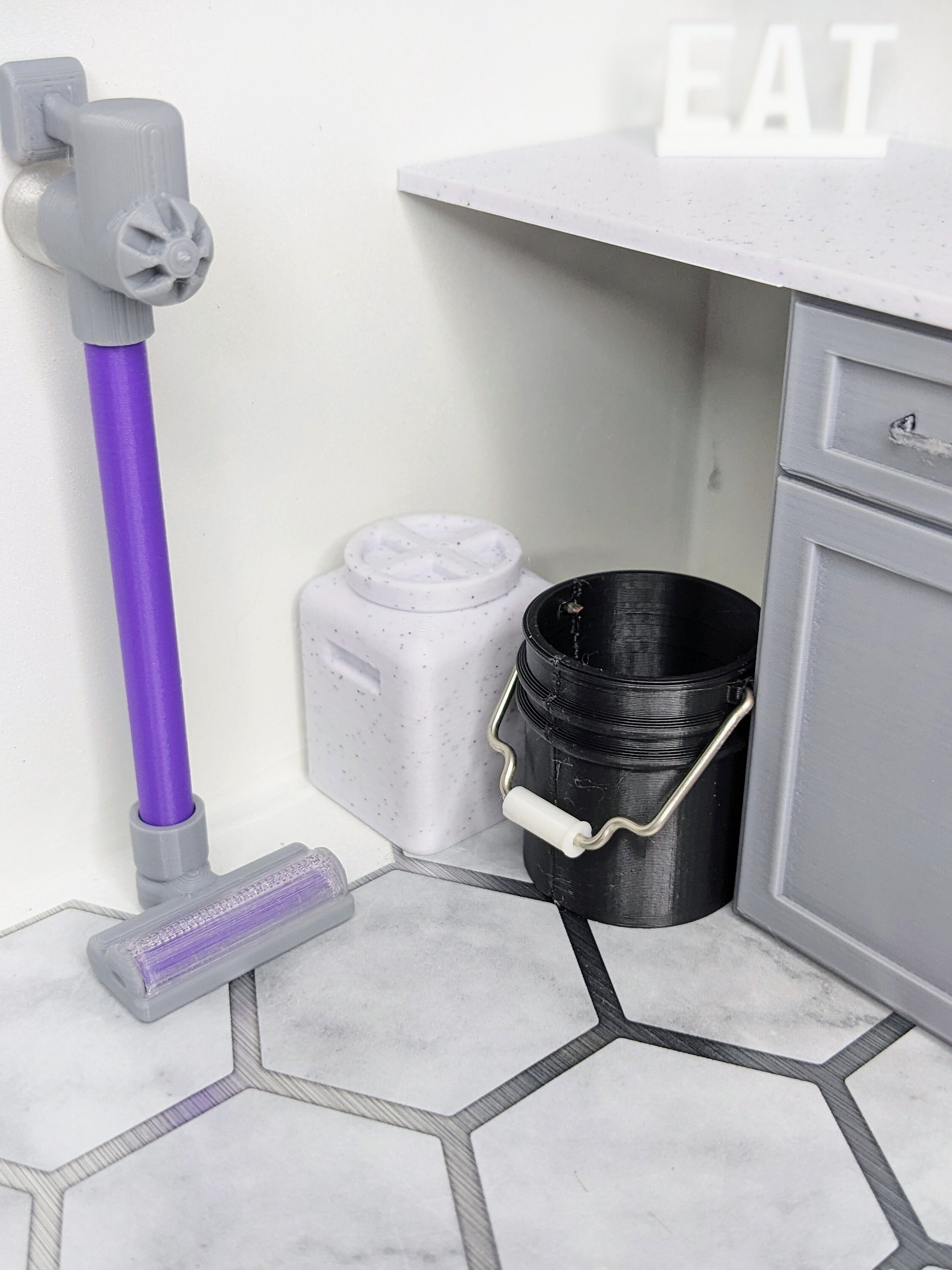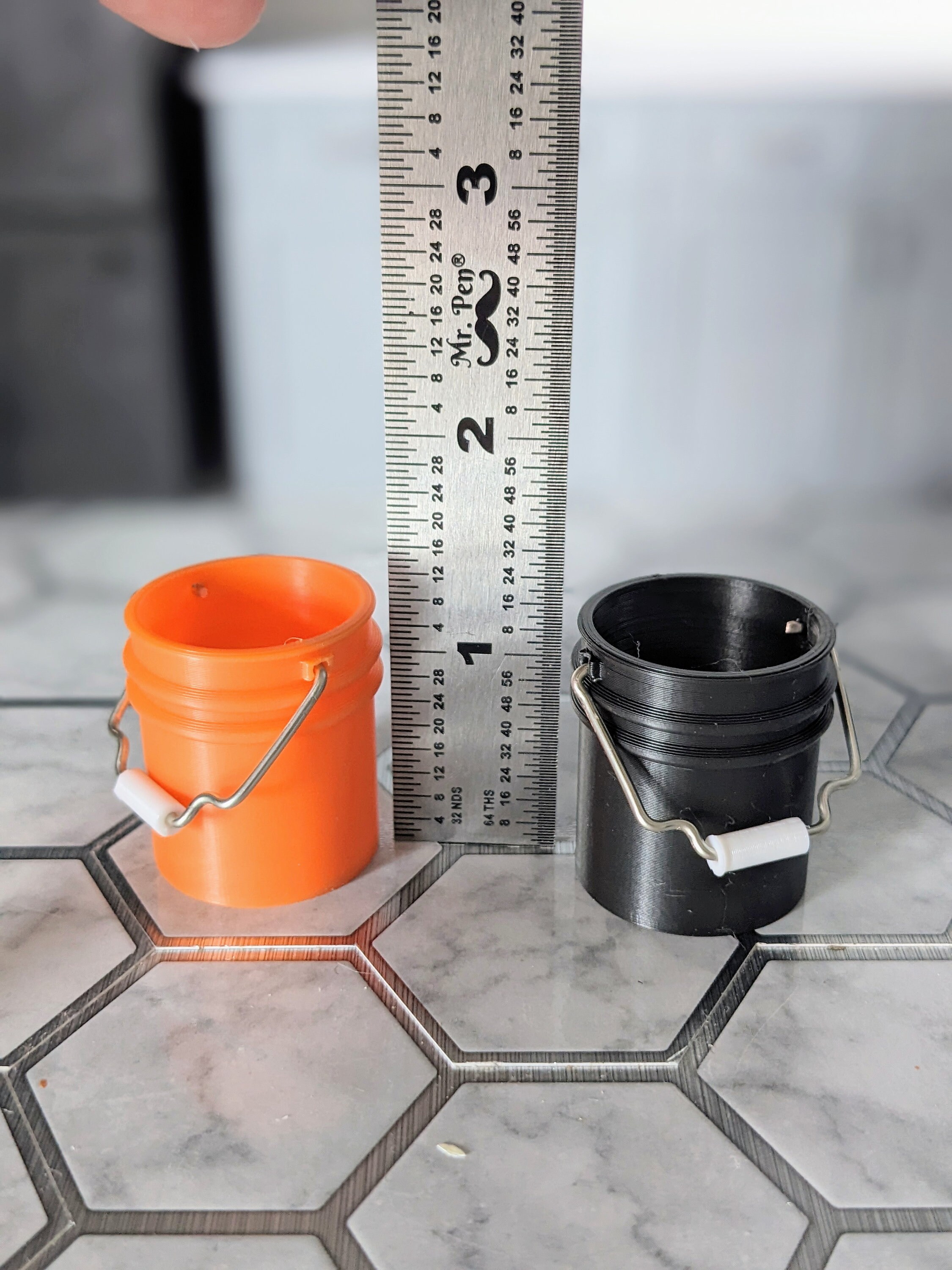 *Original Design!* An itty bitty bucket in 1:12 scale! This bucket is 3D printed with high quality PLA plastic, with a silver wire handle and white handle grip. The handle is functional, so you can position it how you want! Fill with garden tools, use it to collect weeds, fill with bubbles and cleaning supplies, or simply stage it in your utility room. So many uses for such a cute little bucket! Thanks for stopping by! Other decor and accessories not included. Looking for other buckets? Check out these flower buckets! https://lasercatprints.etsy.com/listing/1741864458/112-flower-bucket-set-miniature-flower