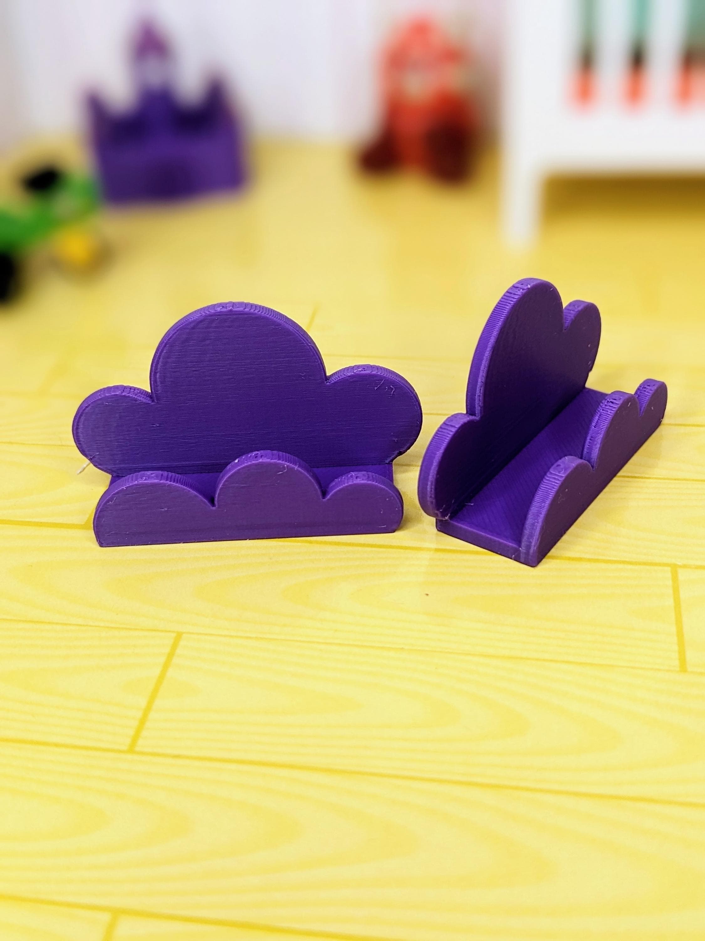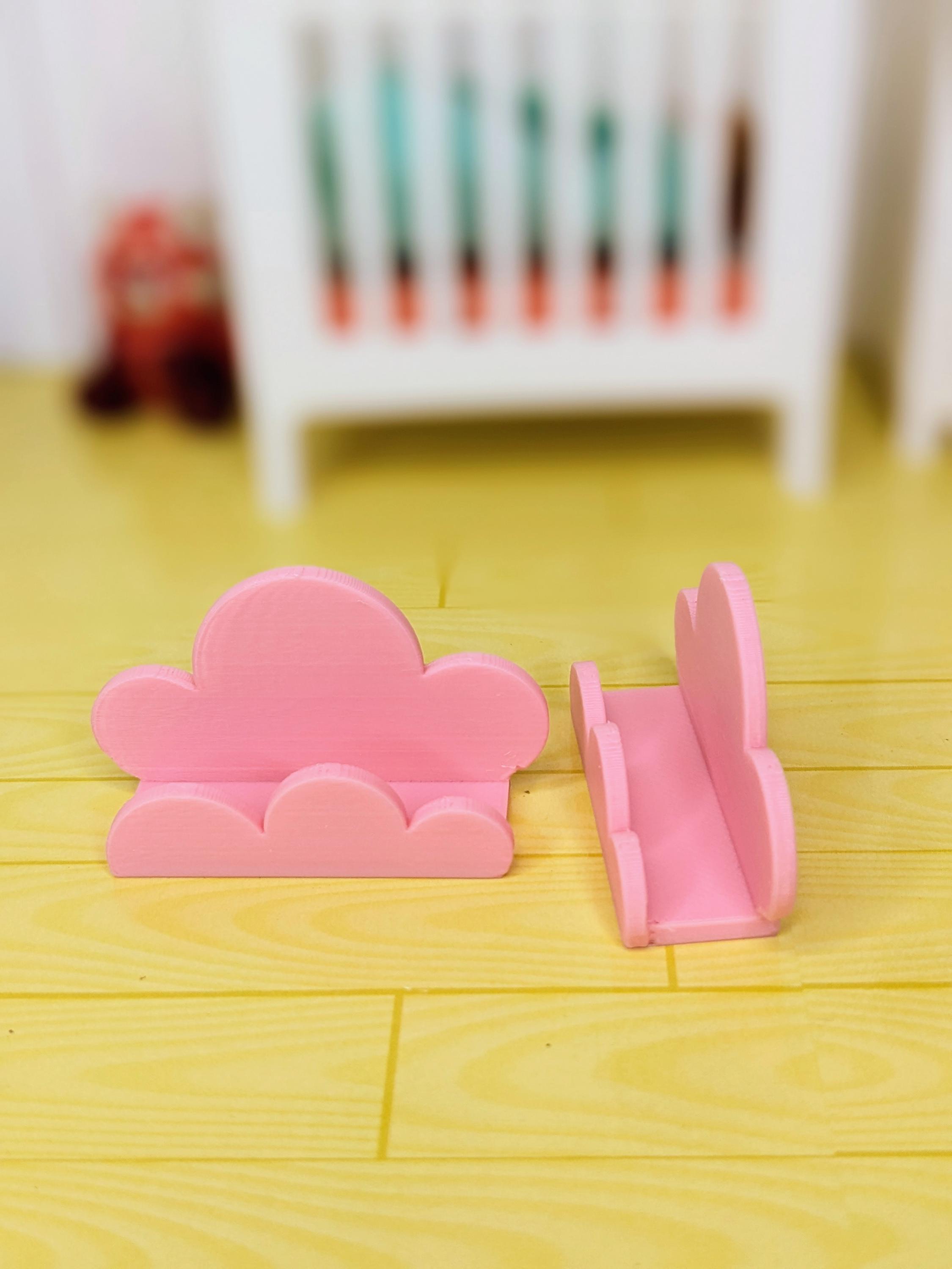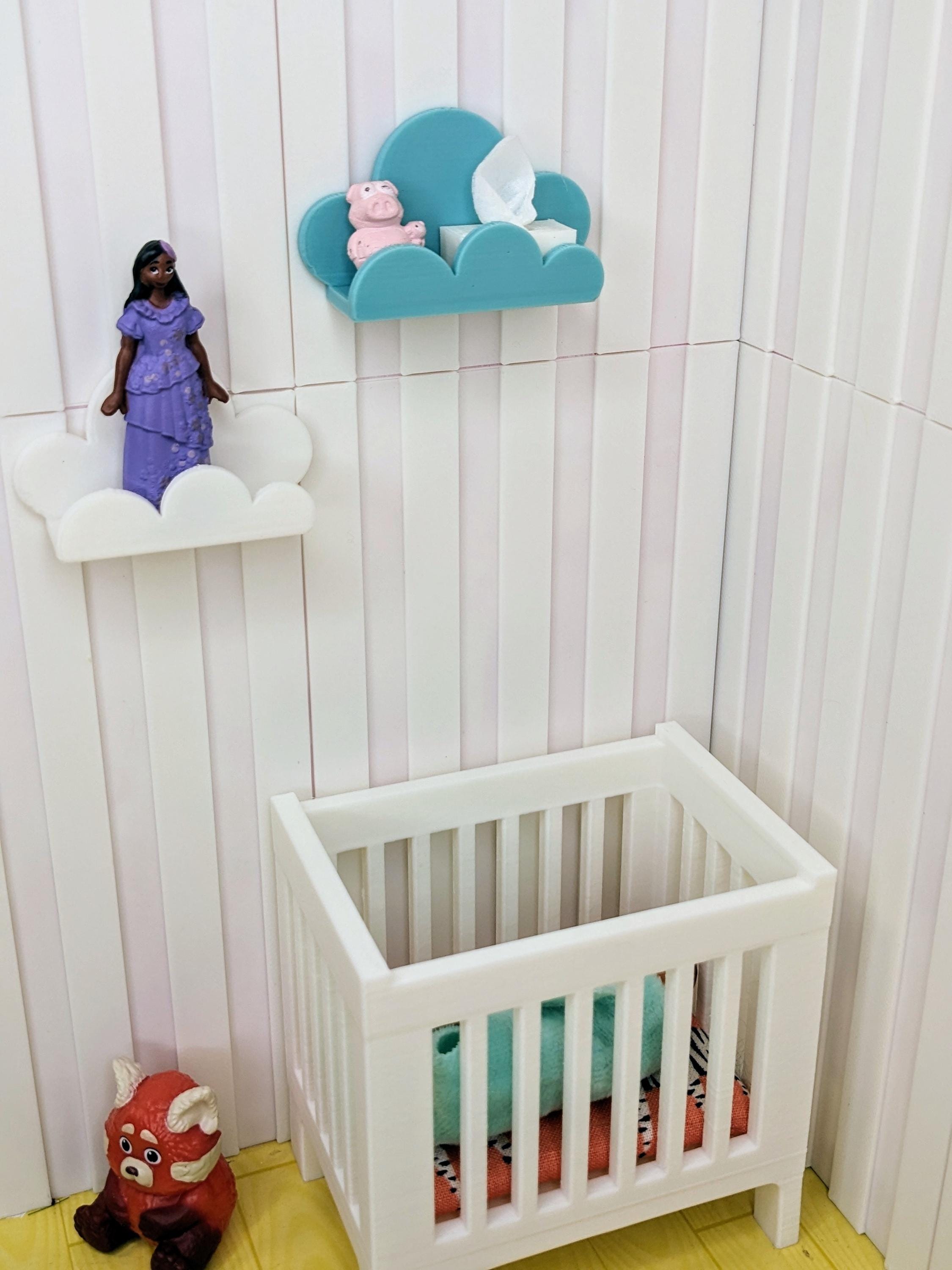 *Original Design!* A trio of cute cloud shelves in 1:12 scale! You will receive 3 shelves. These easily attach to walls via glue dots, museum wax, etc. Perfect for holding books, toys, and other small decor items. These shelves are 3D printed with high quality PLA plastic. Choose your desired set color, or choose "custom" for multiple colors.
