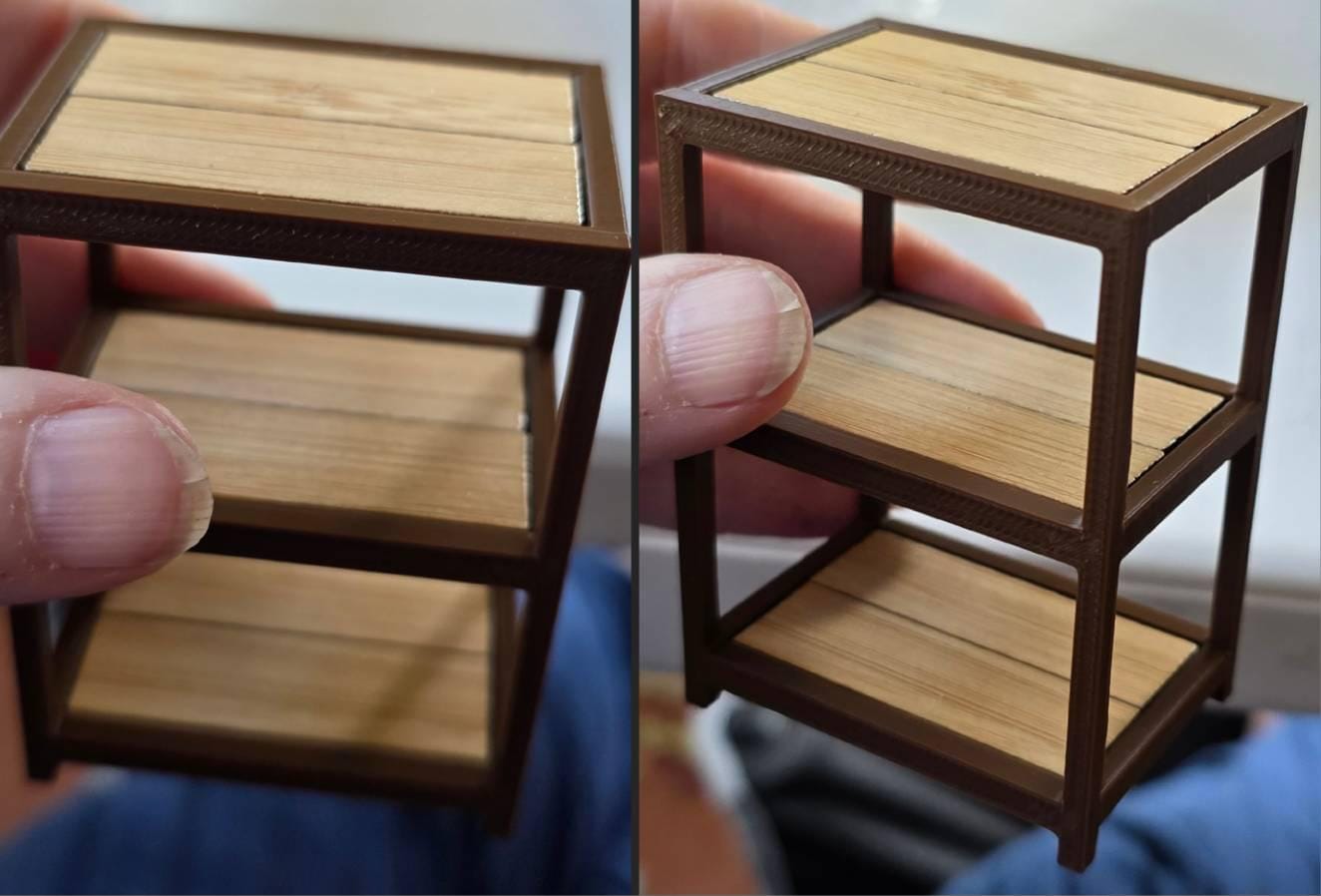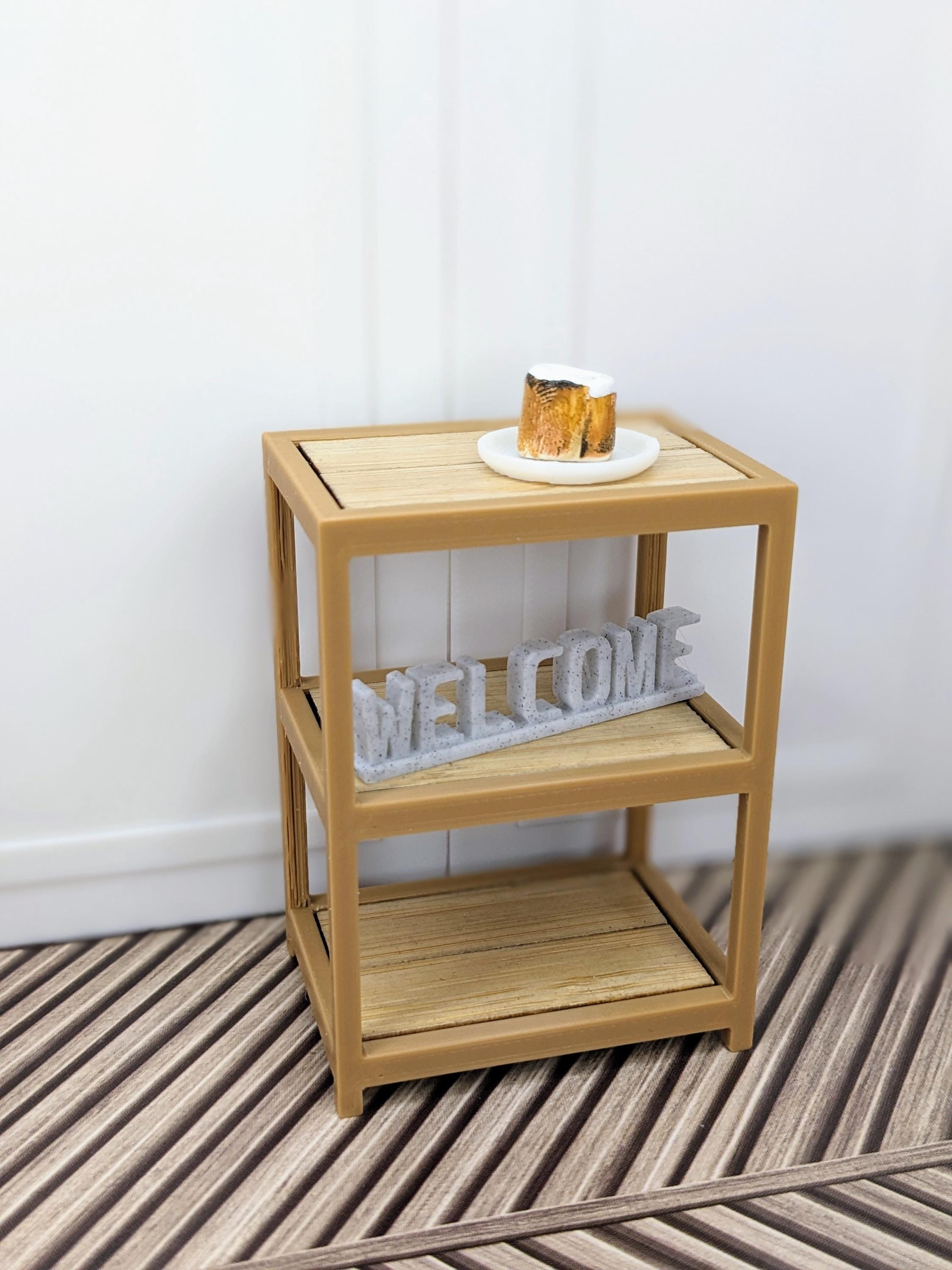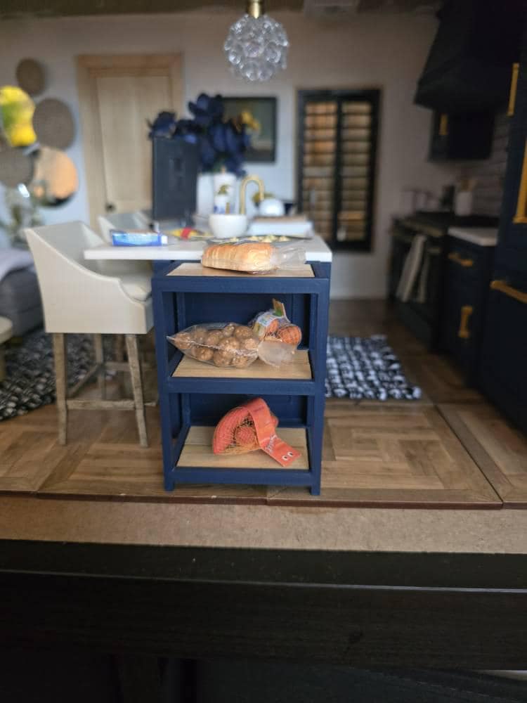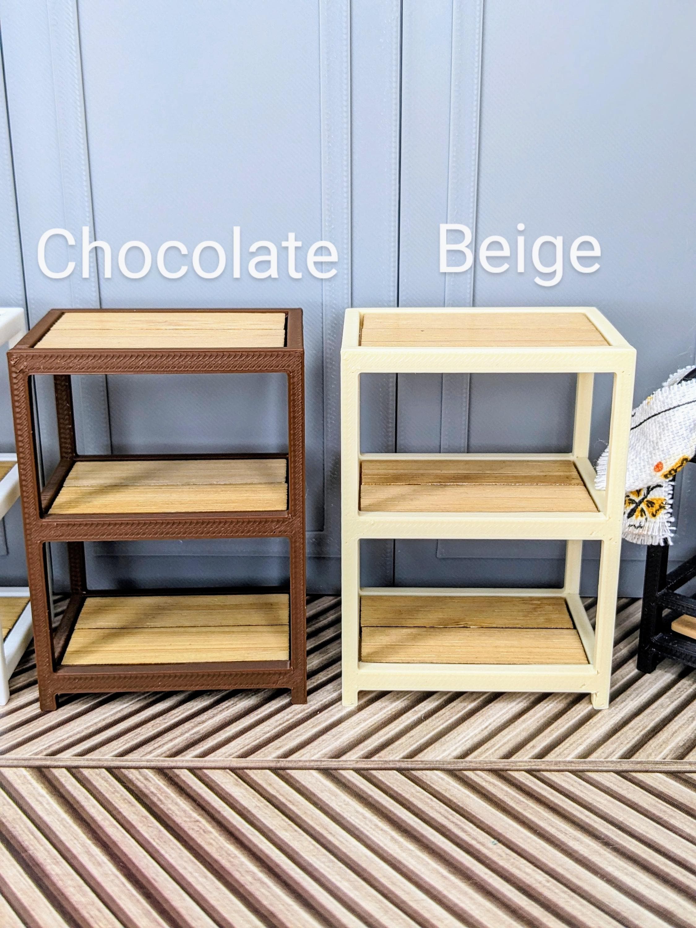 *Original Design! A multipurpose shelf in 1:12 scale! Ideal for organizing your kitchen, craft supplies, plant pots, laundry supplies, etc! This item is 3D printed with high quality PLA plastic with wood tiles inserts. It is countertop height, so it would make a perfect kitchen island.