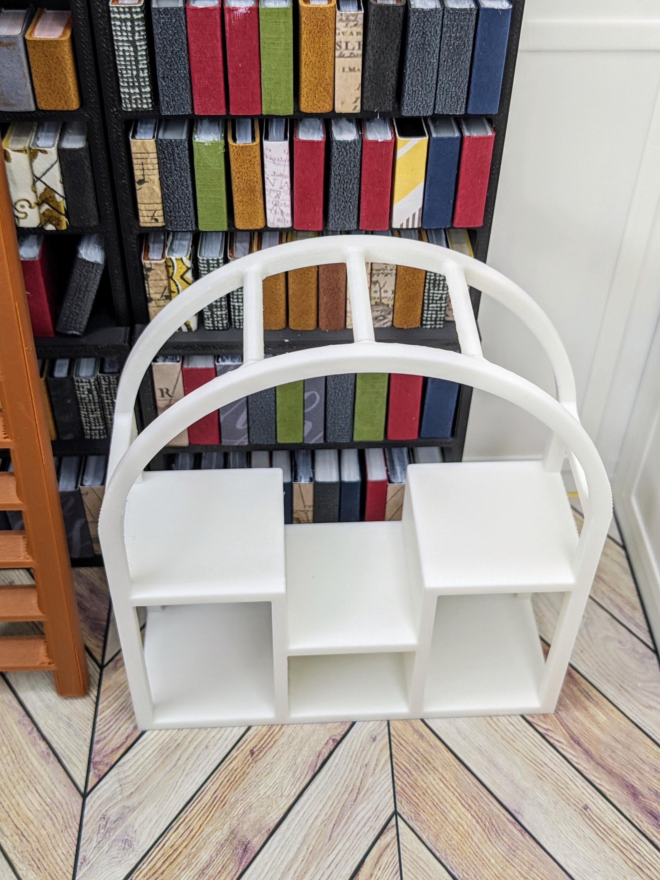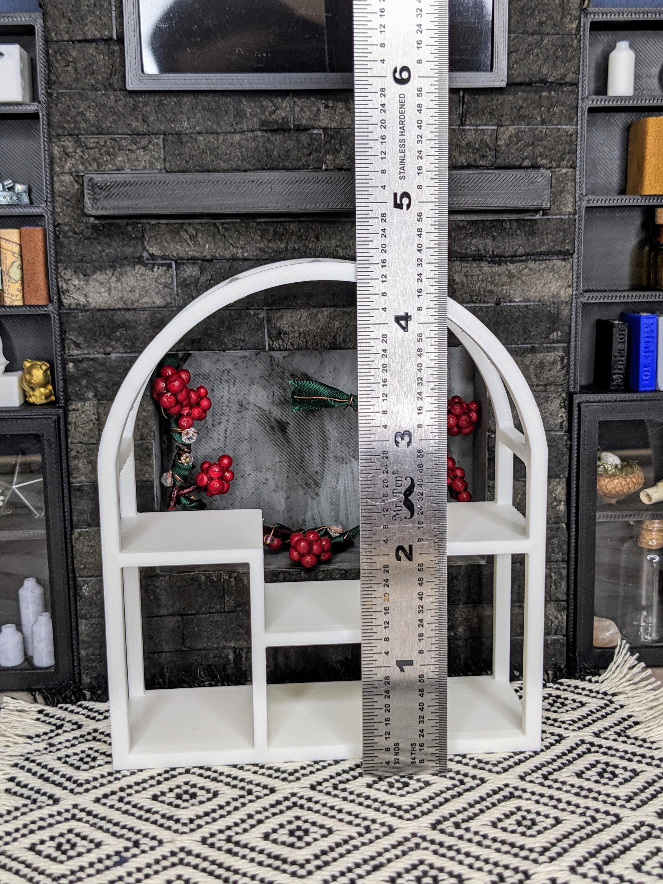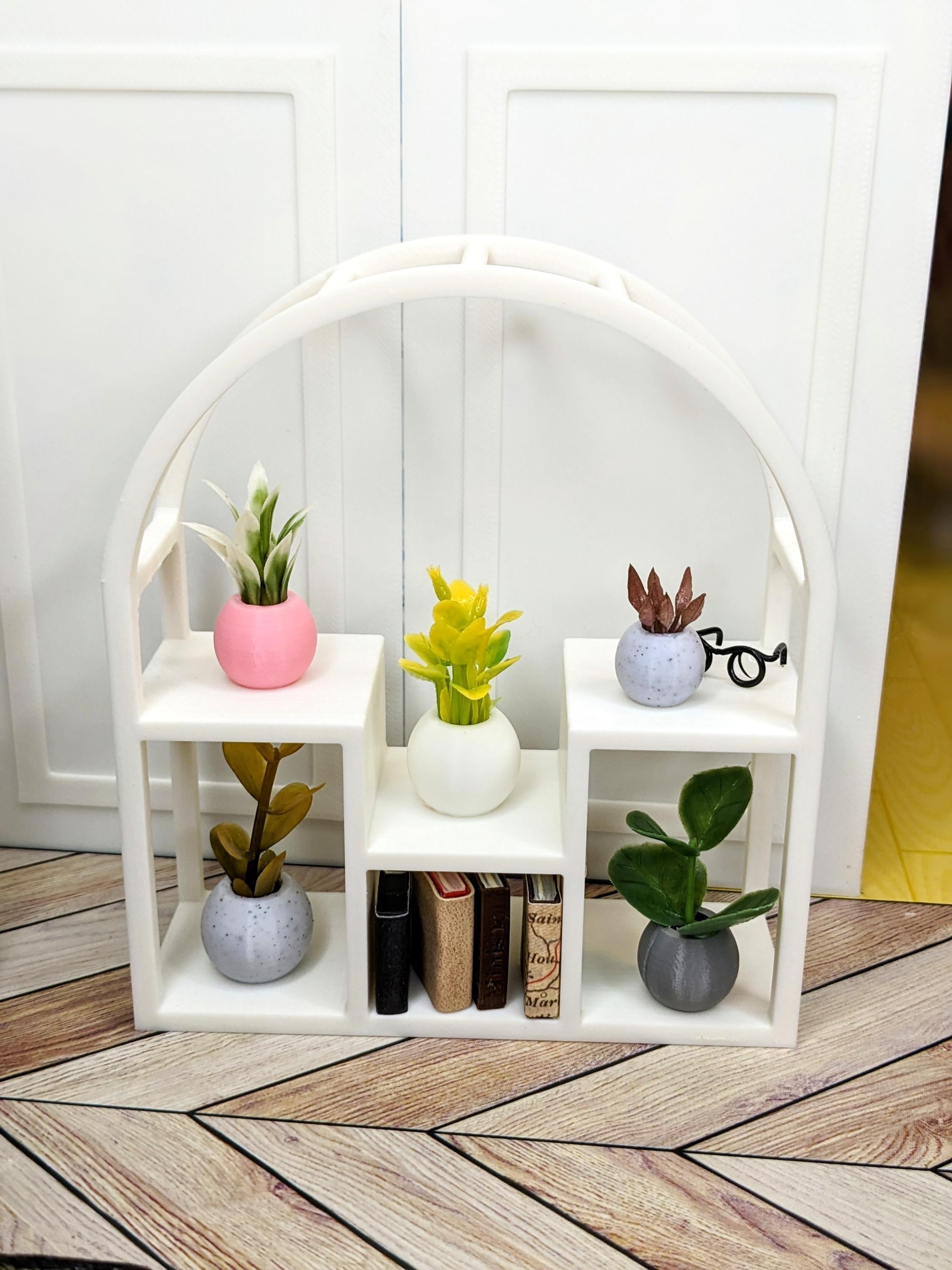 *Original Design!* An arch-shaped plant shelf in 1:12 scale! This plant shelf is 3D printed with high quality PLA plastic, and equipped with all the space you need to display your plants. With 6 different shelves for your potted plants and 3 rods for your hanging plants, all that's left to do is fill it up with plants! One shelf only, no plants or other decor included. Want some plants? Check out what's in stock here: