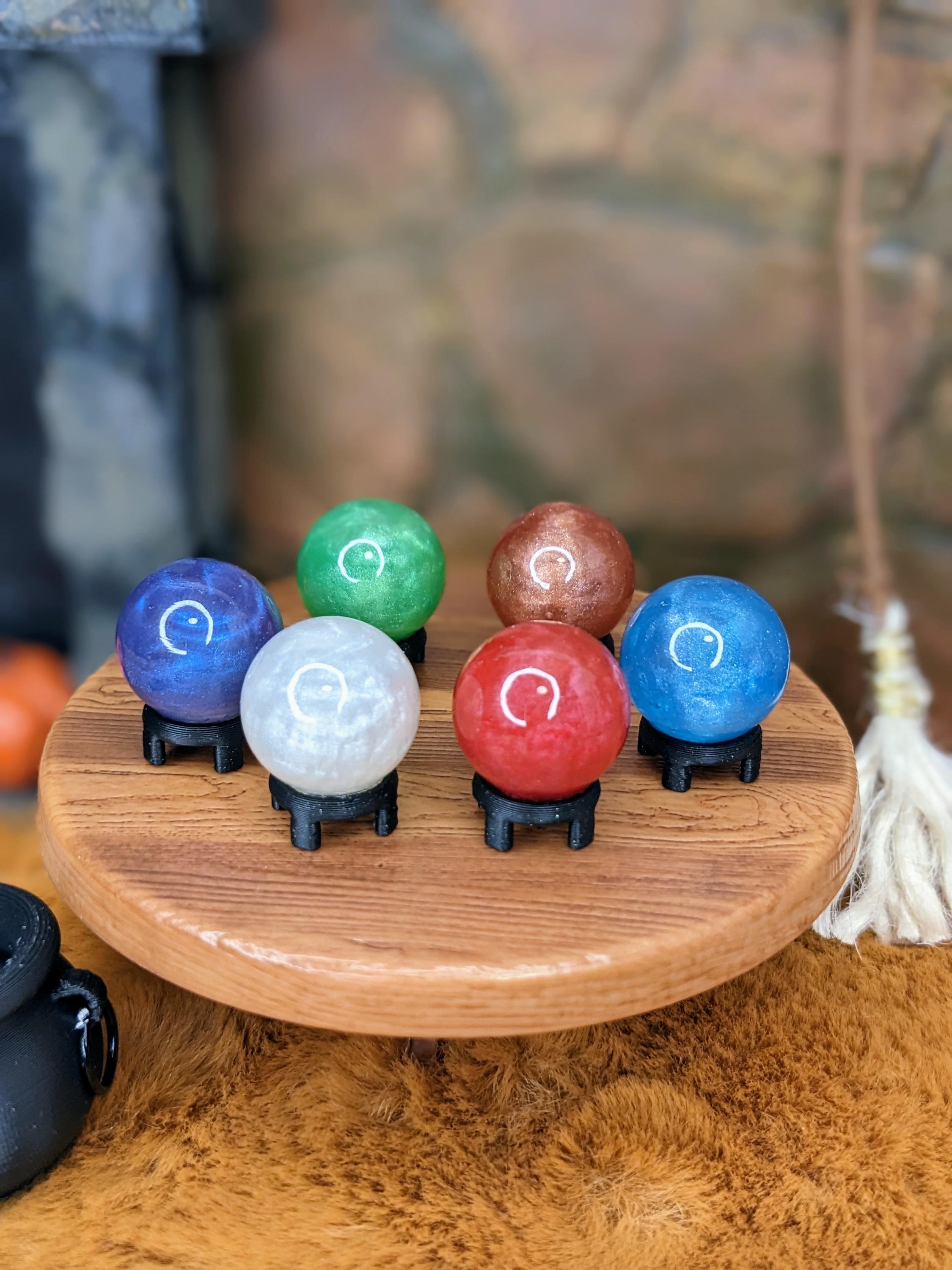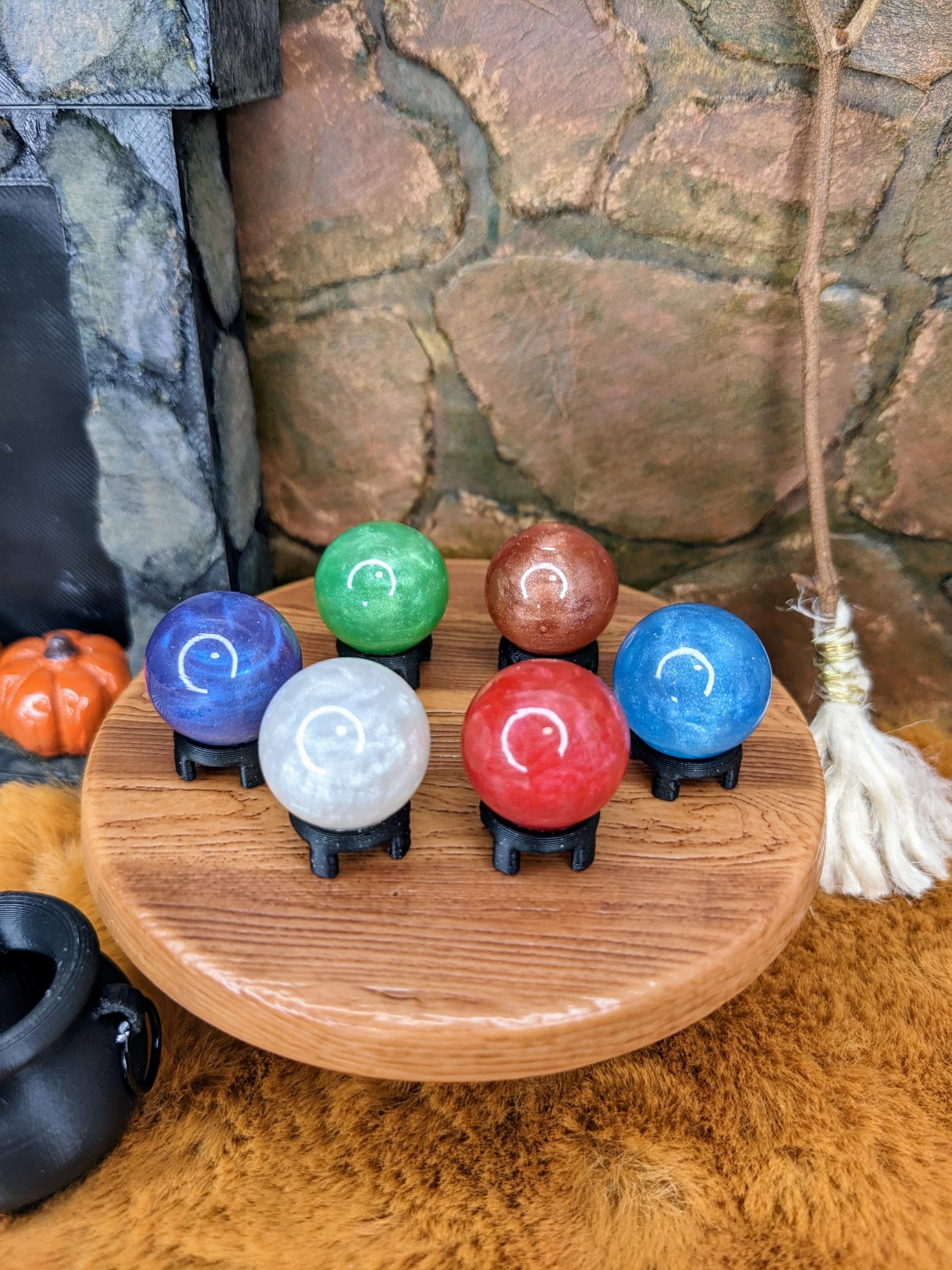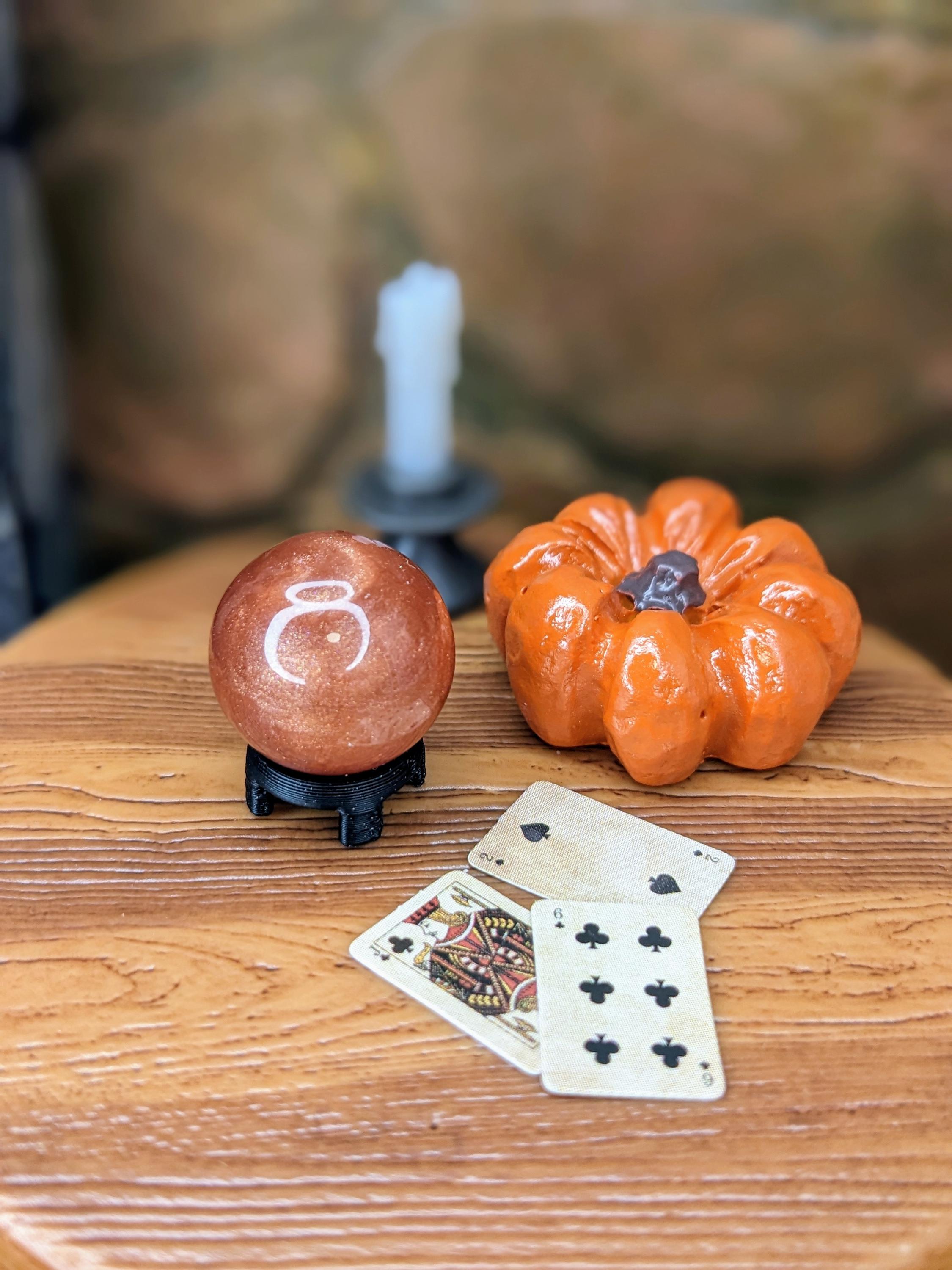 *Handmade item!* A crystal ball in 1:12 scale! Can be used for 1:6 as well. This is made using a glass globe filled with shimmery cured resin, and a 3D printed base in glitter black. Each one is made by hand and therefore unique! Contents inside the ball do not move, it is filled with cured shimmery resin.