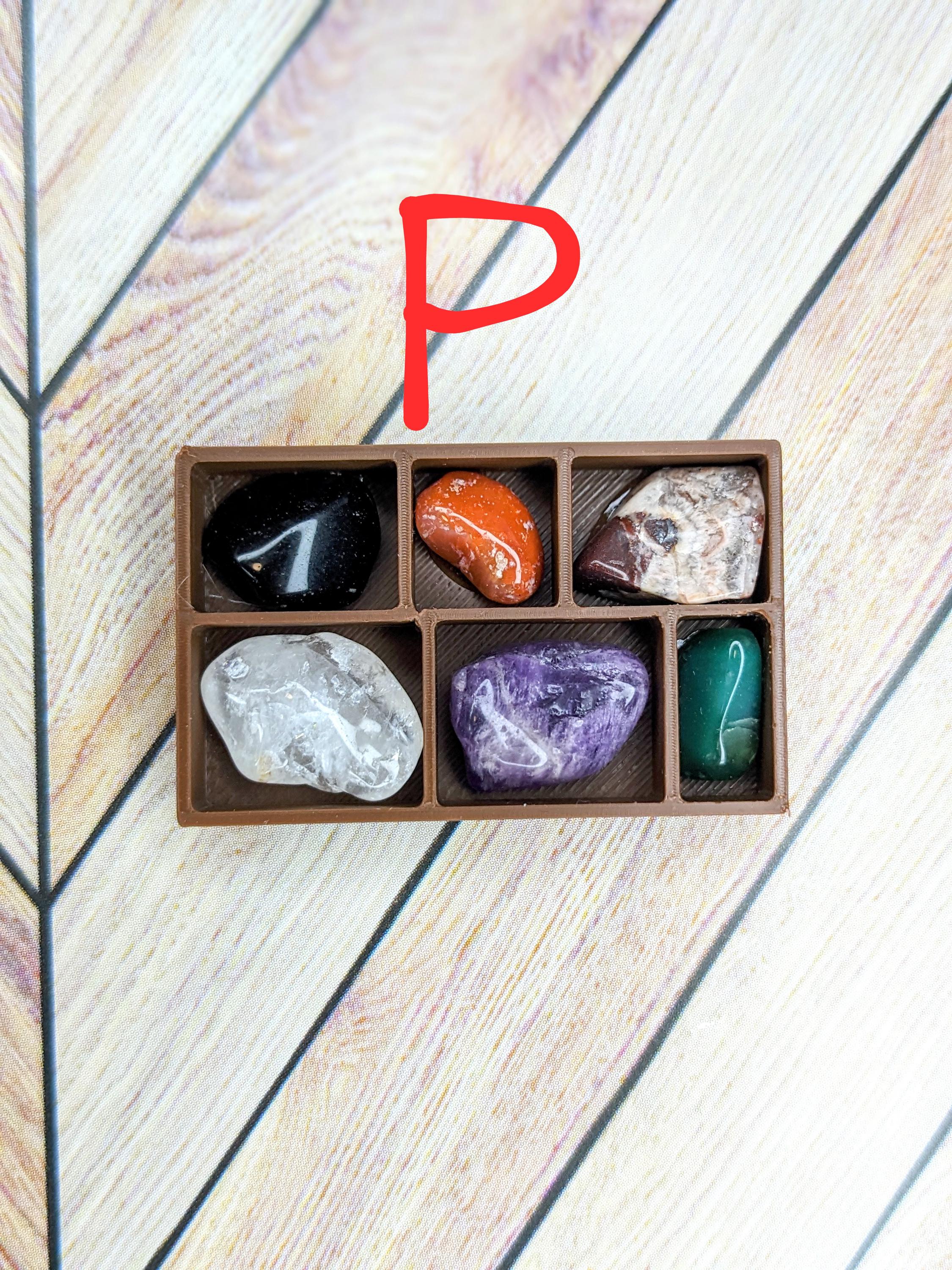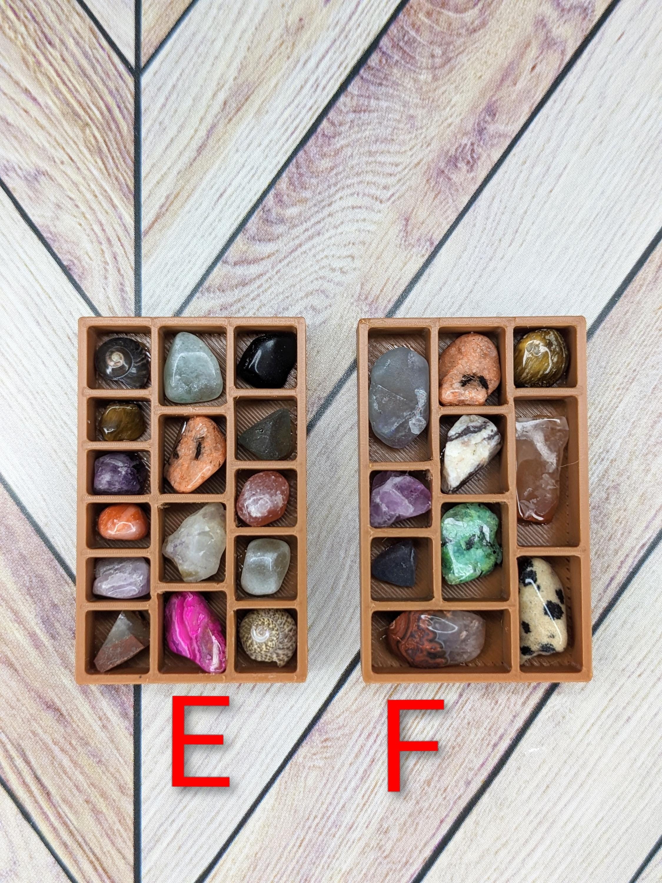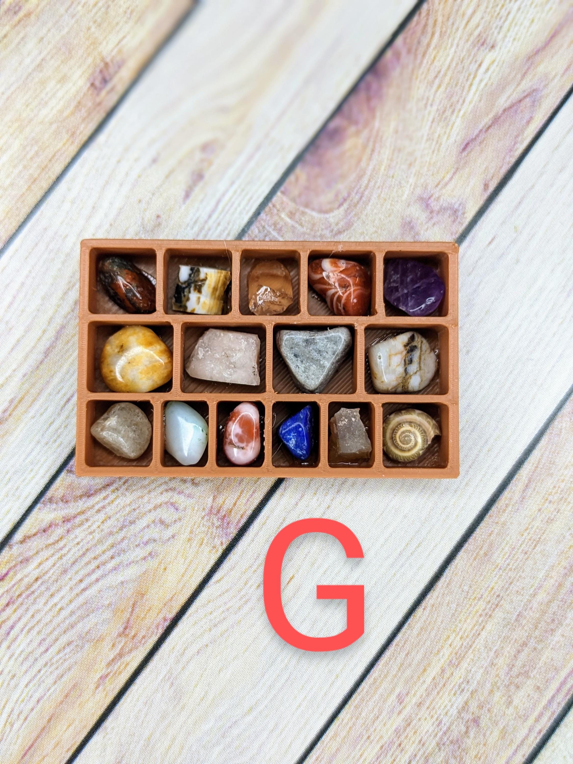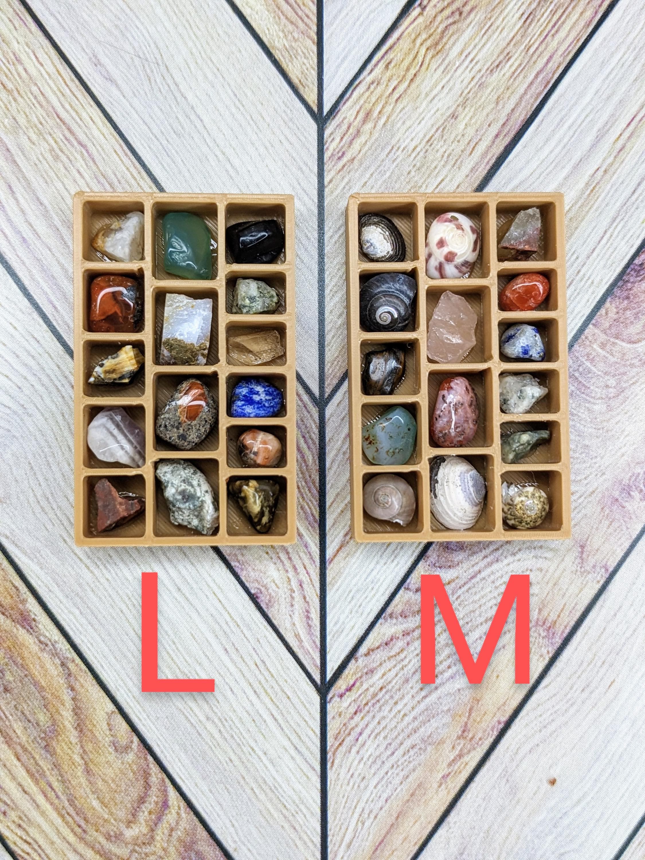 *Handmade Item!* A rock display in 1:12 scale! Could also work for 1:6. These are the perfect addition to your dollhouse study, geology classroom, or apothecary store. With several different styles available, each display case is 3D printed with high quality PLA plastic in red brown, chocolate brown, or tan brown, featuring different rocks/gems/fossils. The rocks vary from polished to rough, and are sourced from both online retailers and from a local rock shop. Each display case is assembled and curated with attention to detail and variety. All rocks are glued in place, they are not removable. Please refer to pictures for styles.