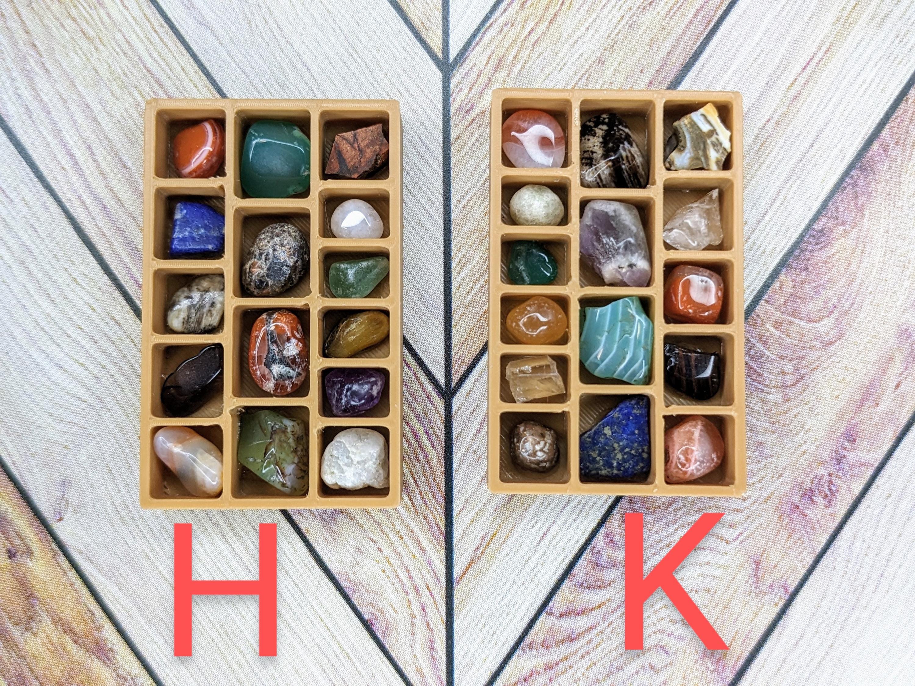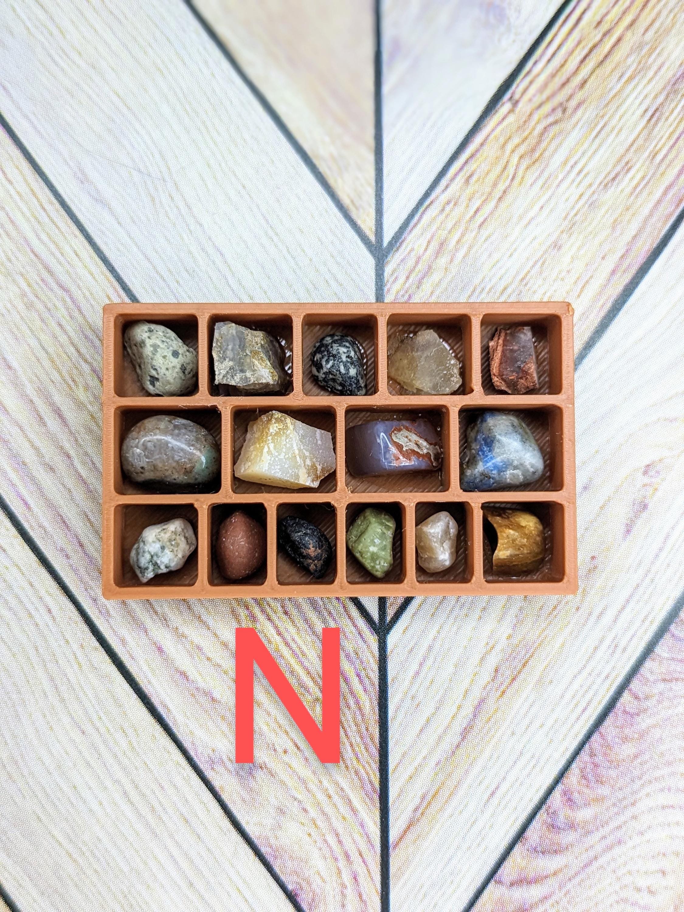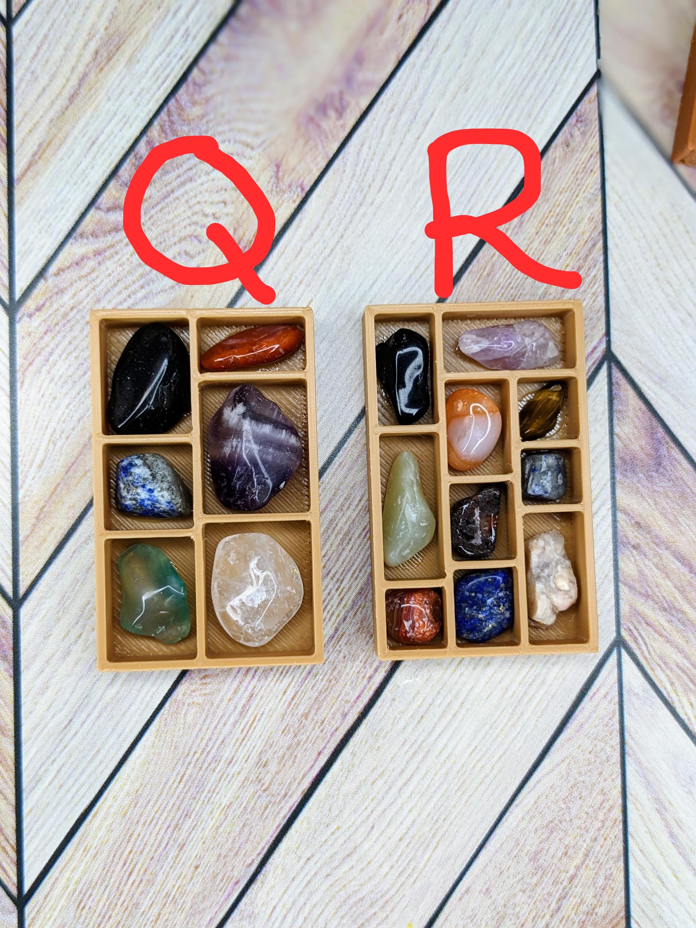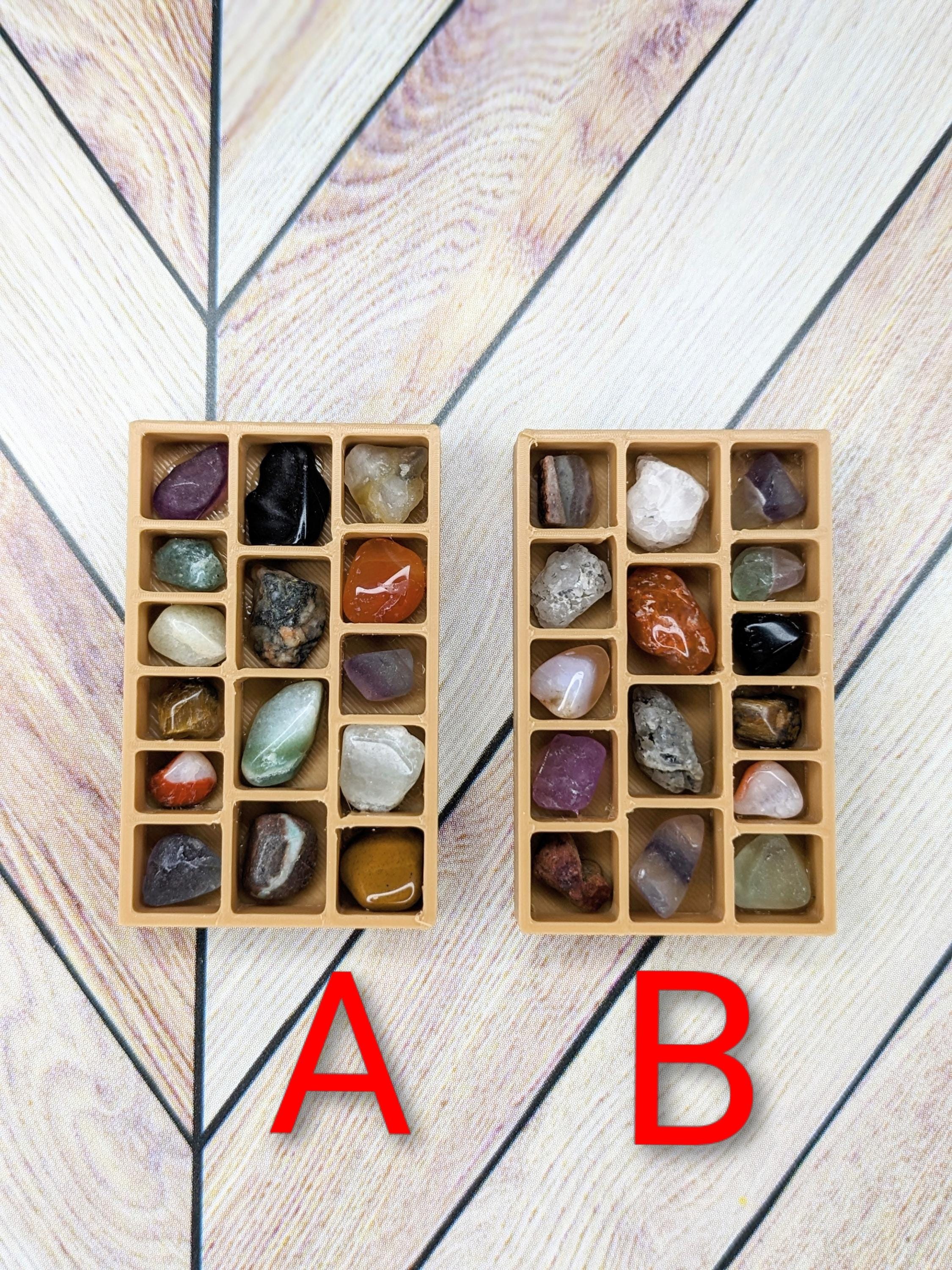 *Handmade Item!* A rock display in 1:12 scale! Could also work for 1:6. These are the perfect addition to your dollhouse study, geology classroom, or apothecary store. With several different styles available, each display case is 3D printed with high quality PLA plastic in red brown, chocolate brown, or tan brown, featuring different rocks/gems/fossils. The rocks vary from polished to rough, and are sourced from both online retailers and from a local rock shop. Each display case is assembled and curated with attention to detail and variety. All rocks are glued in place, they are not removable. Please refer to pictures for styles.