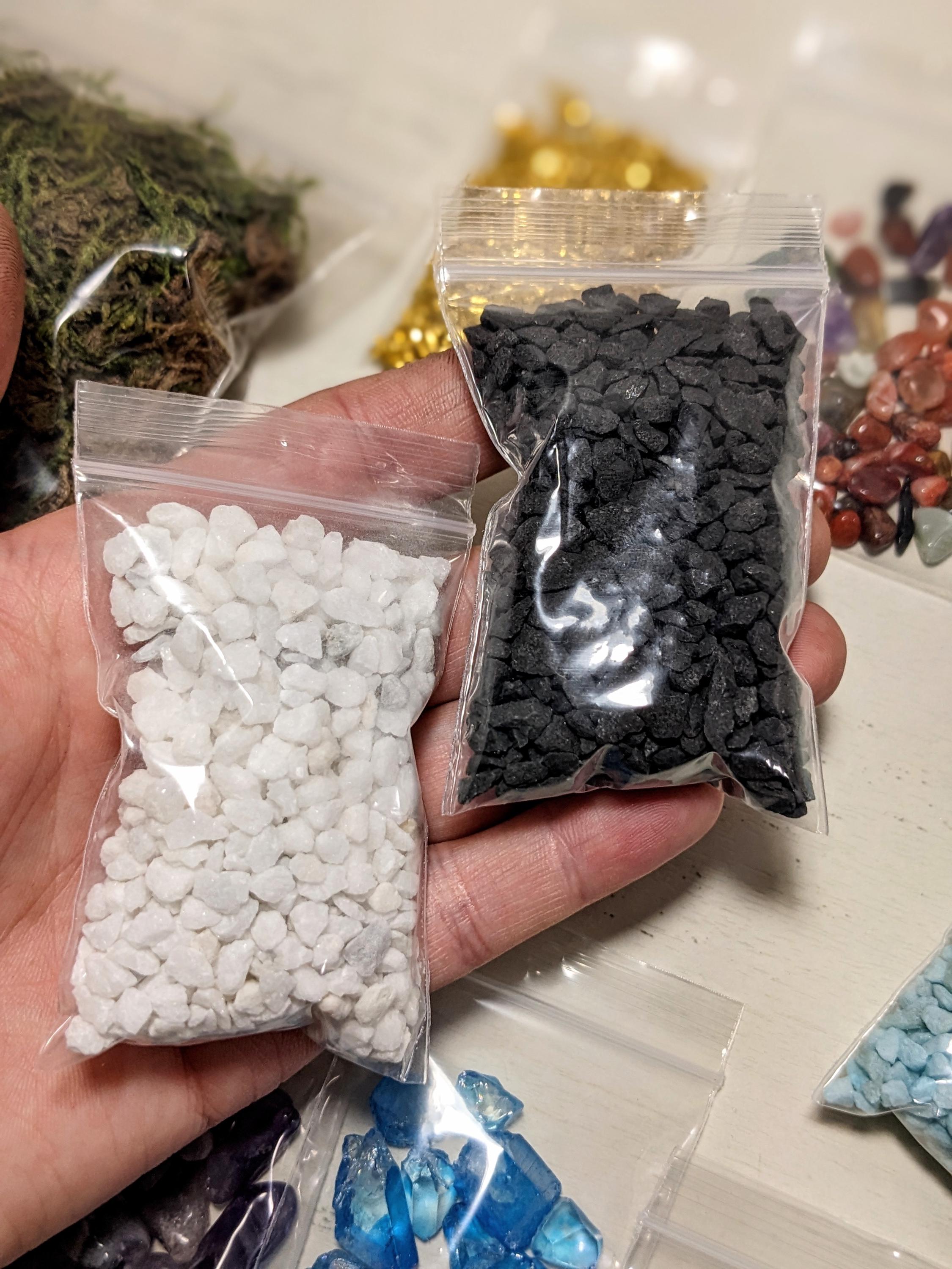 Individual portions of diorama supplies to help bring your vision to life! These little bags are intended to help complete your scene; all materials are sourced locally and assembled by me. Limited to stock on hand, variations may occur in style/size/colors. Please read below for more information!