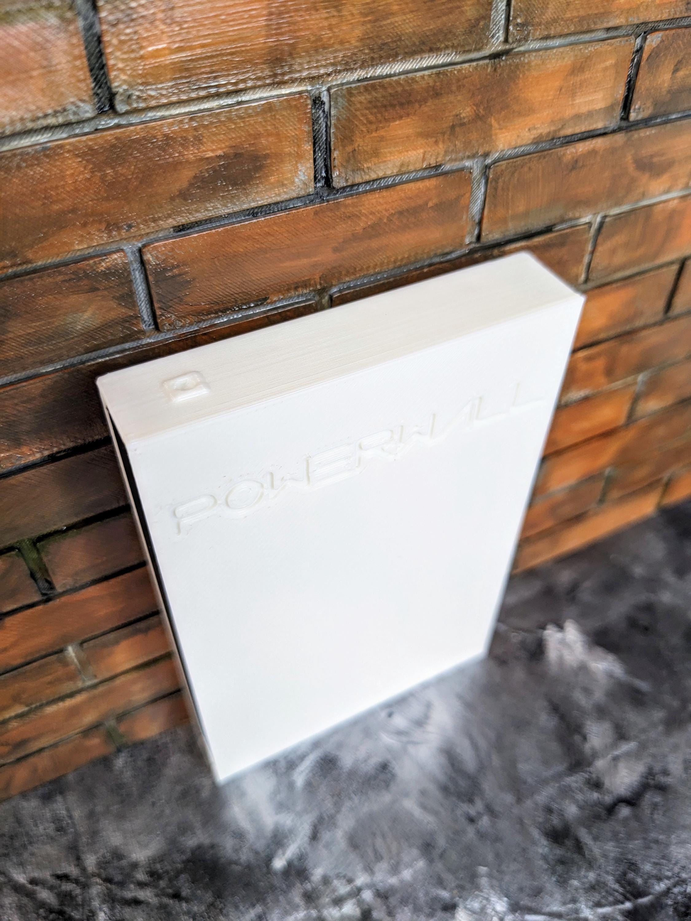 *Original Design!* A Powerwall in 1:12 scale! This item is 3D printed with high quality PLA plastic in white with black accents on the sides. Ideal for your garage or on the exterior of your house, this powerwall can be installed on the ground or attached to the wall with glue dots or tacky wax. Adhesive is NOT included.