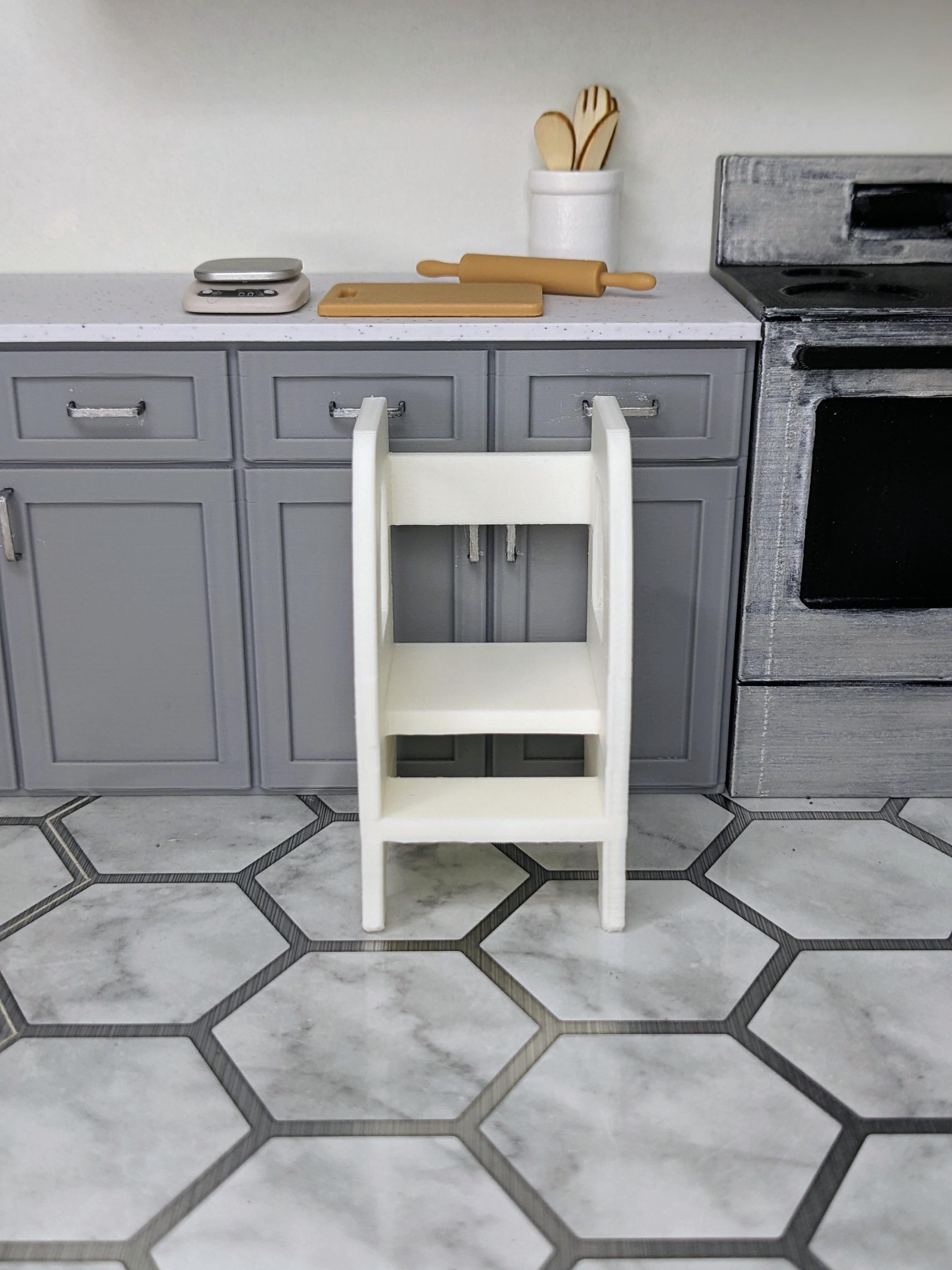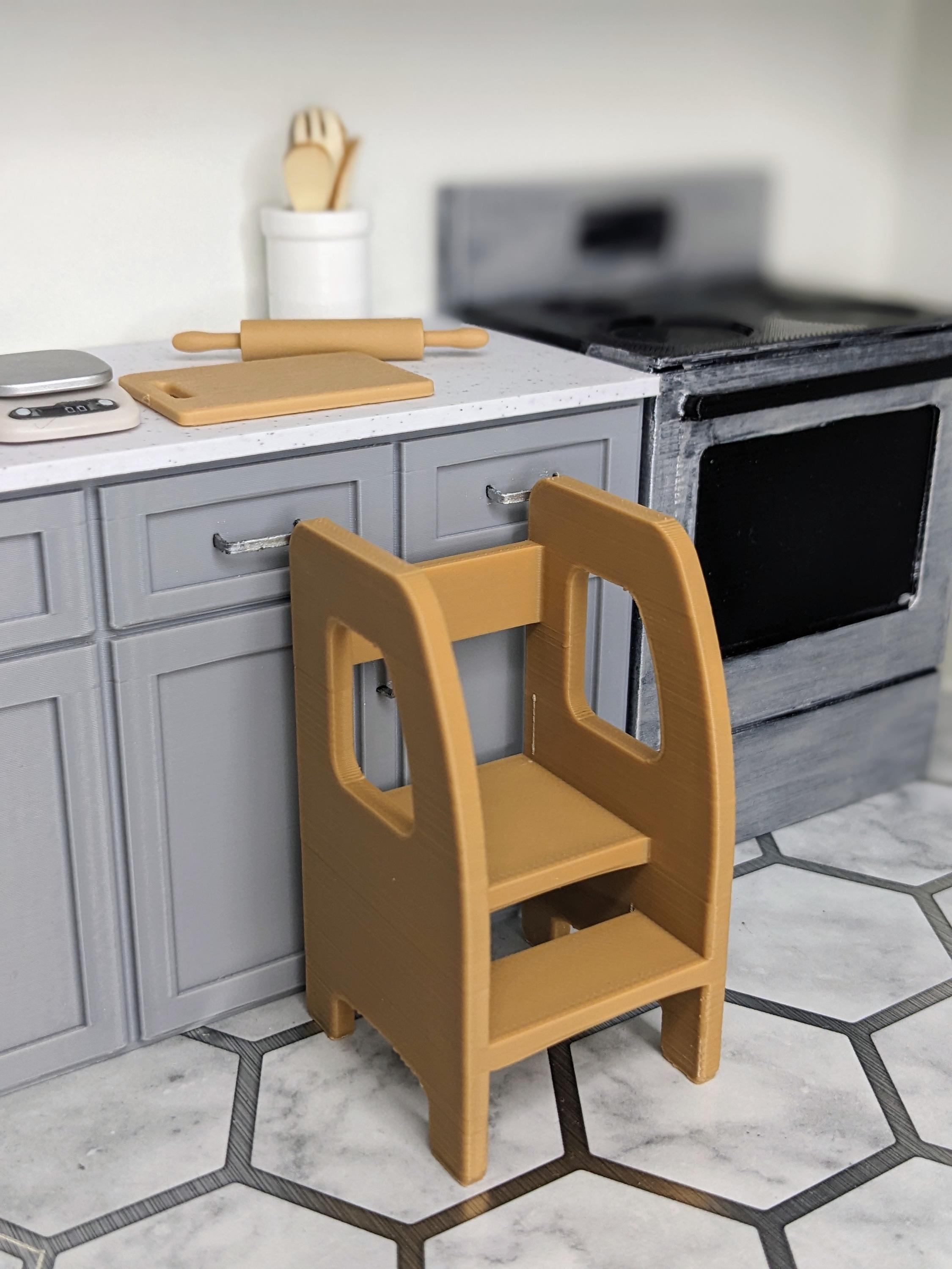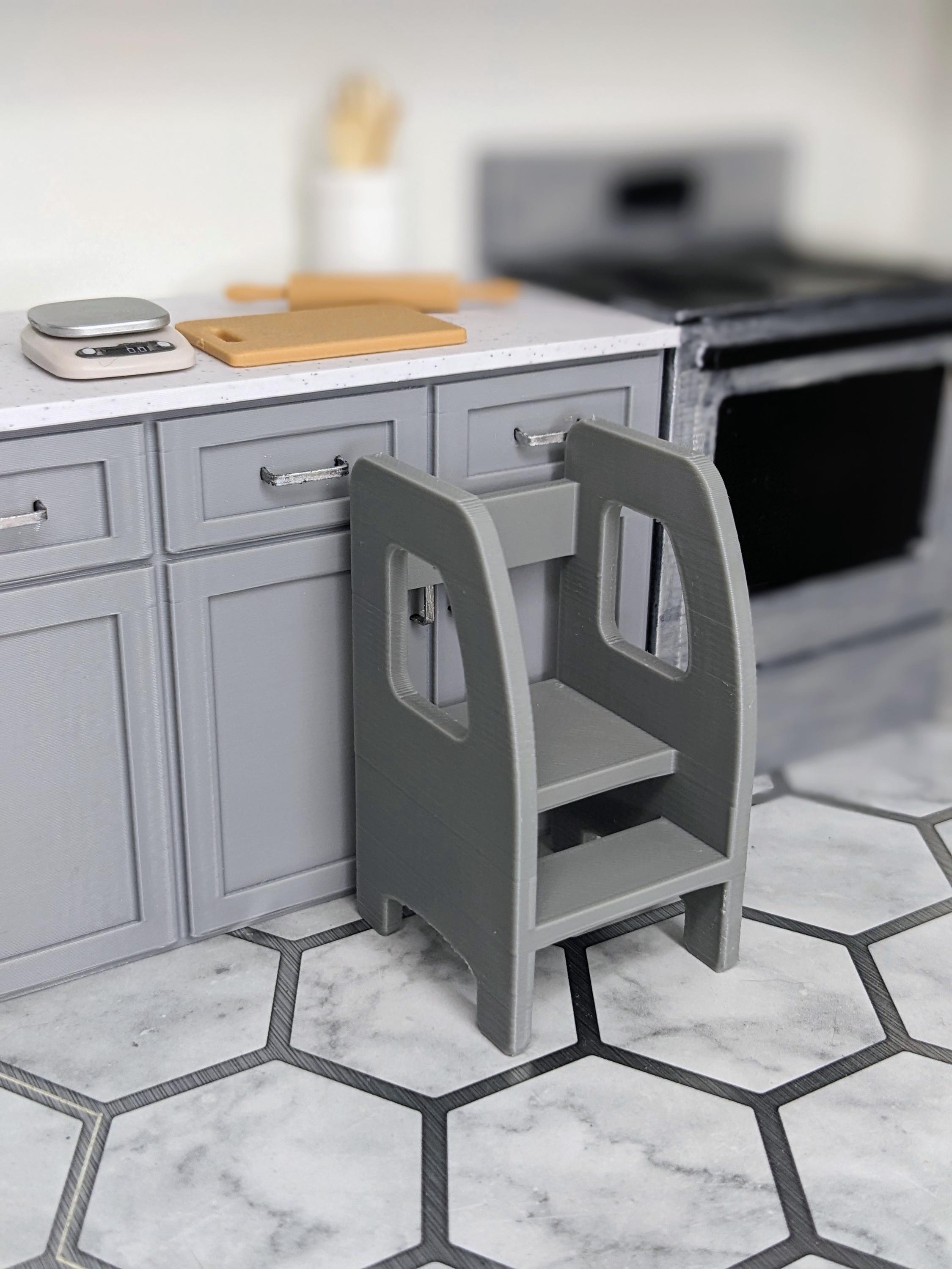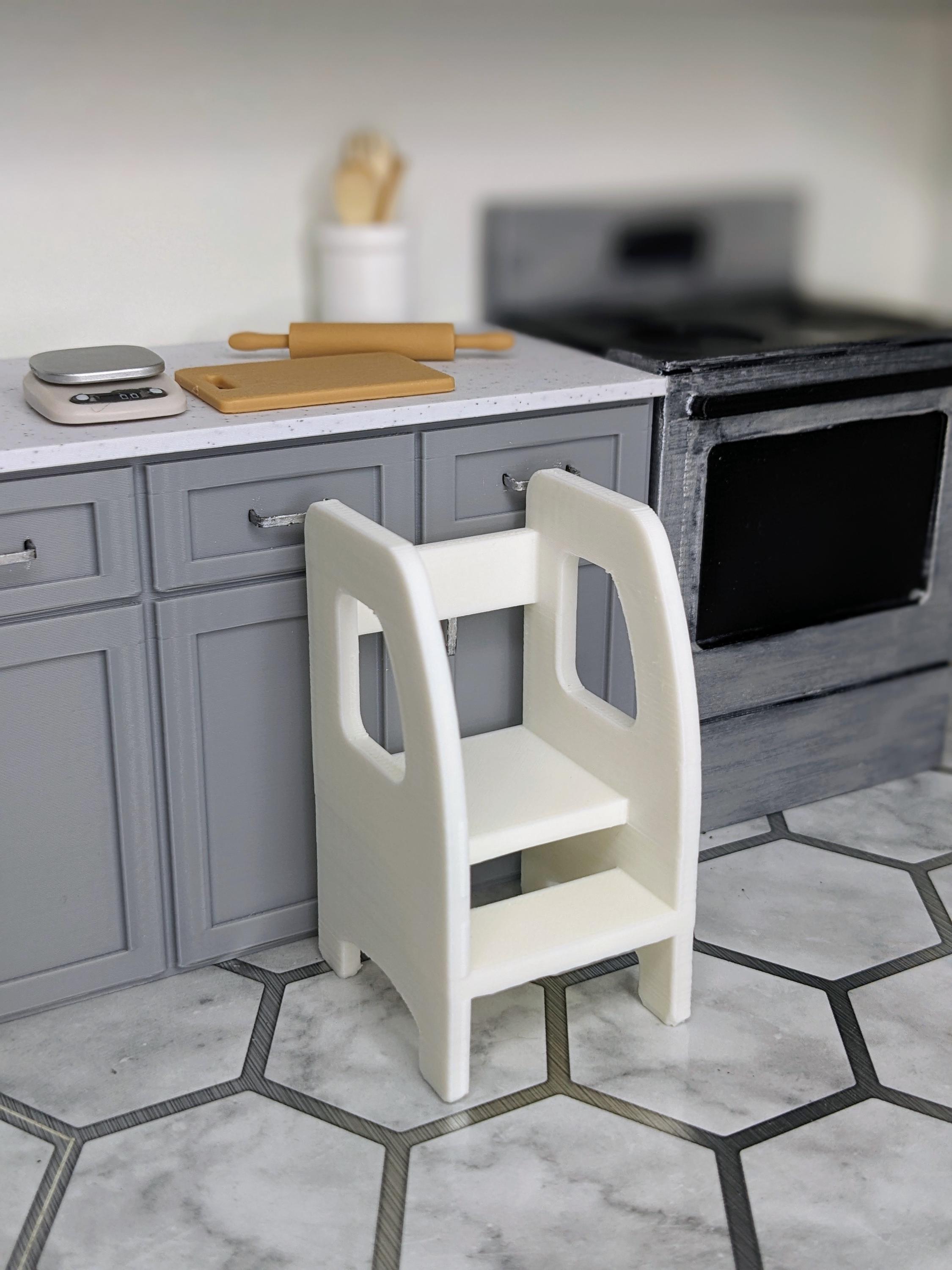 *Original Design!* A toddler tower in 1:12 scale! This item is 3D printed with high quality PLA plastic in your color choice. Perfect for your miniature kitchen, café, or in your daycare scene! Other decor and accessories not included.