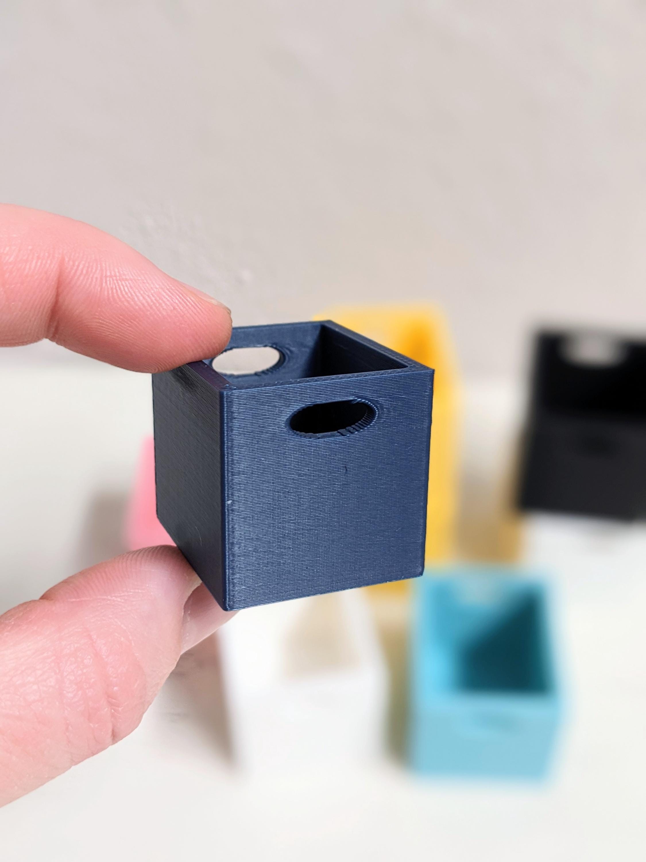 Bin Dimensions: Approx. 1" tall by 1" wide by 1.25" deep.