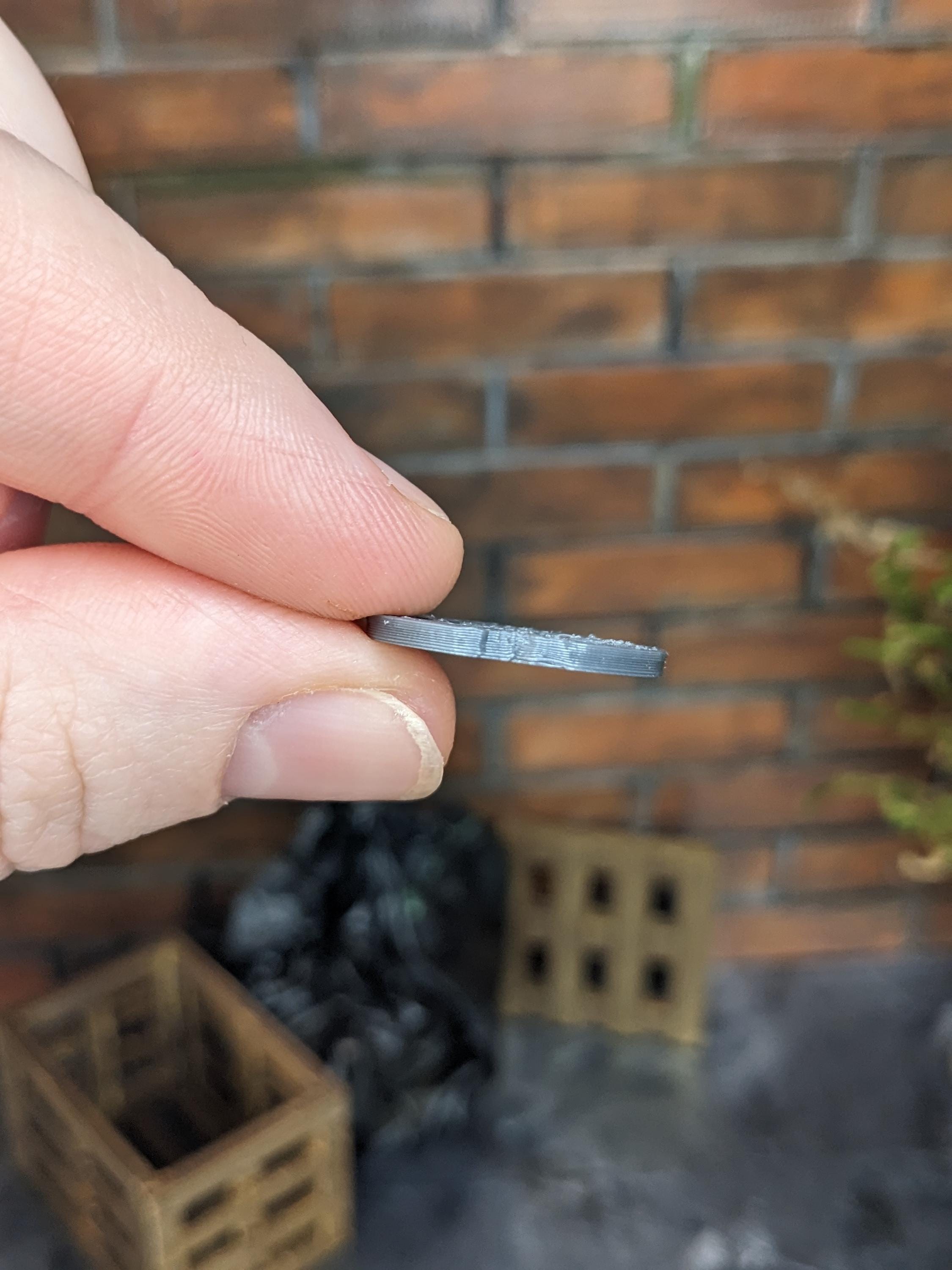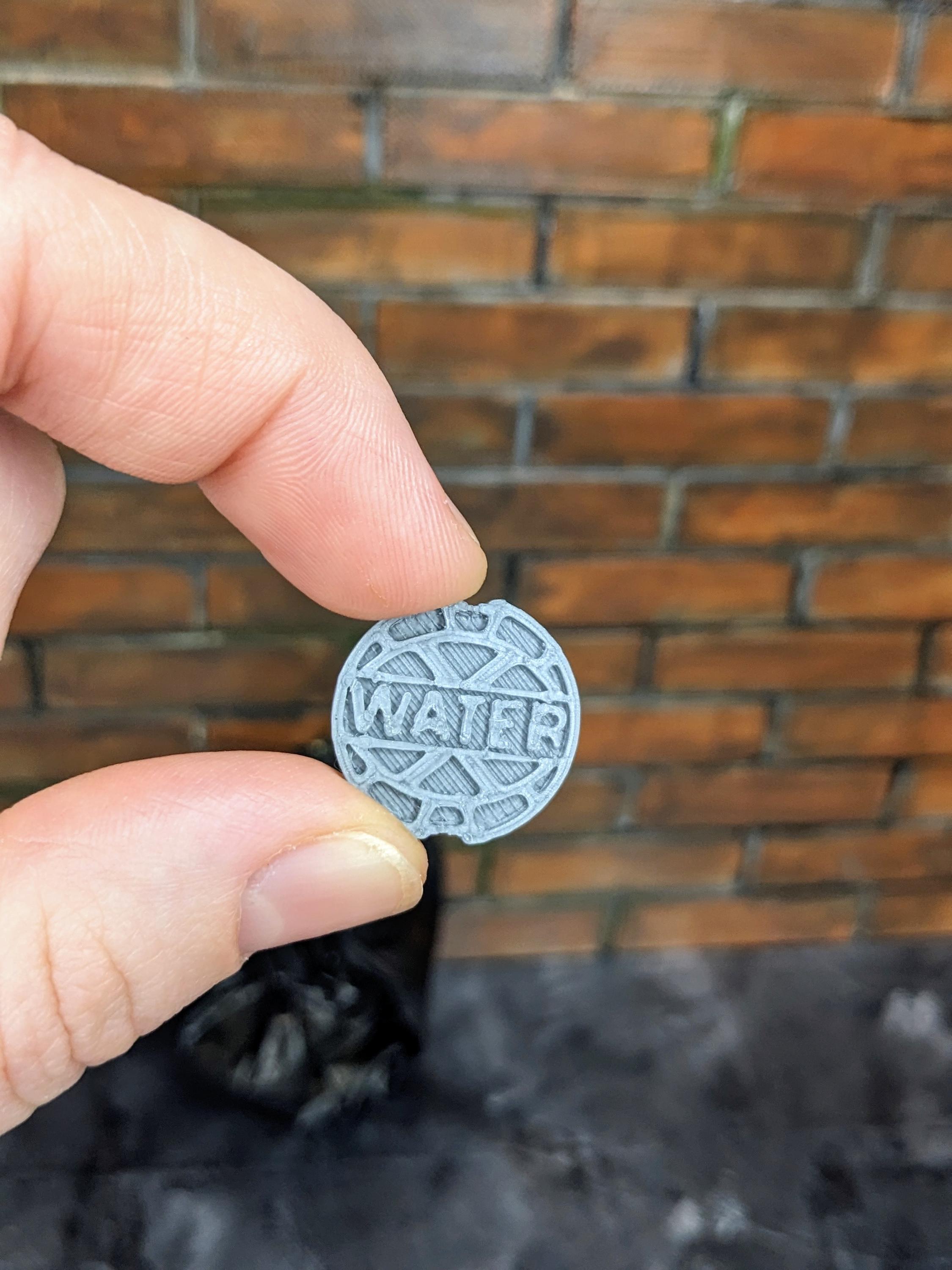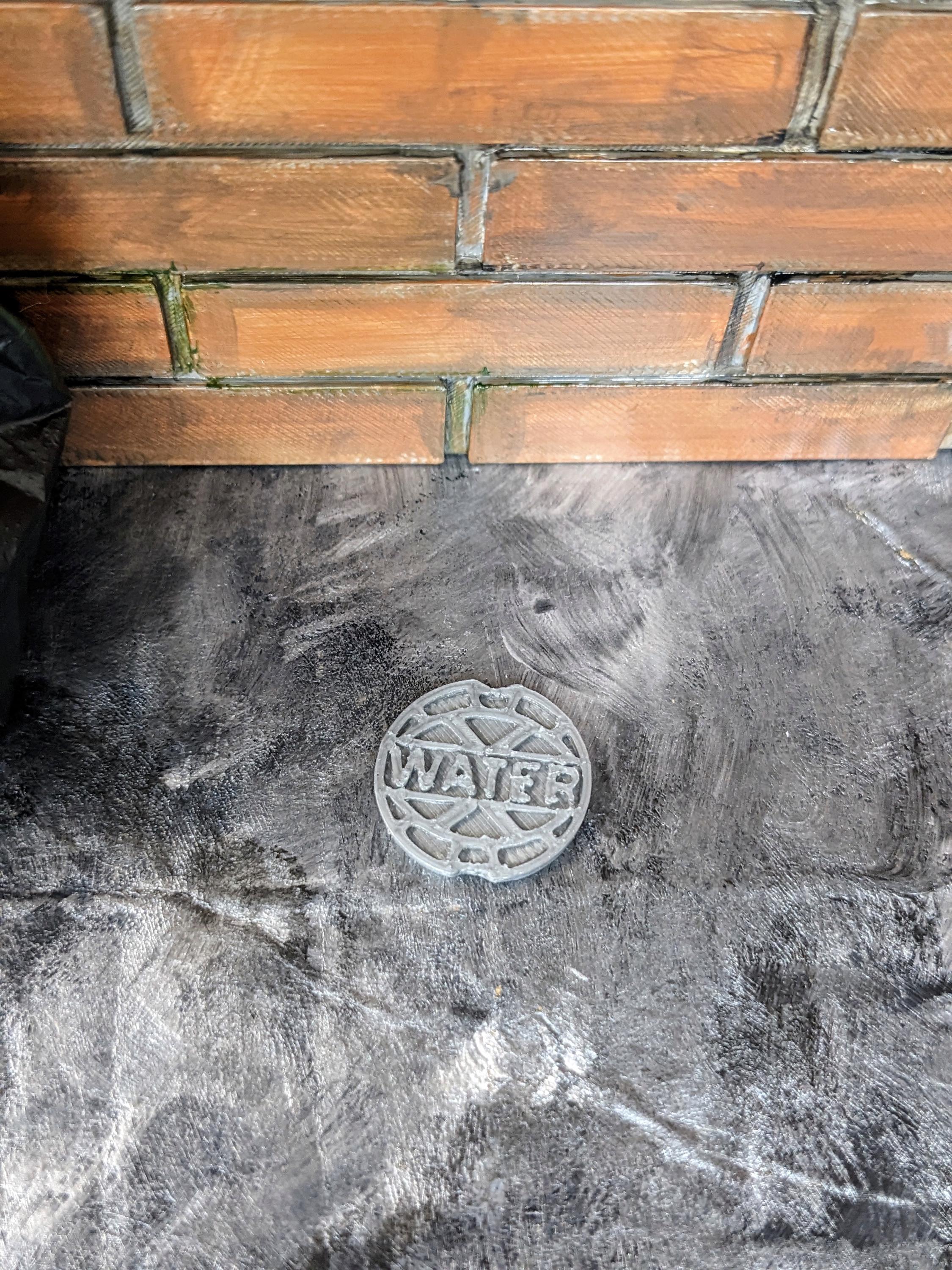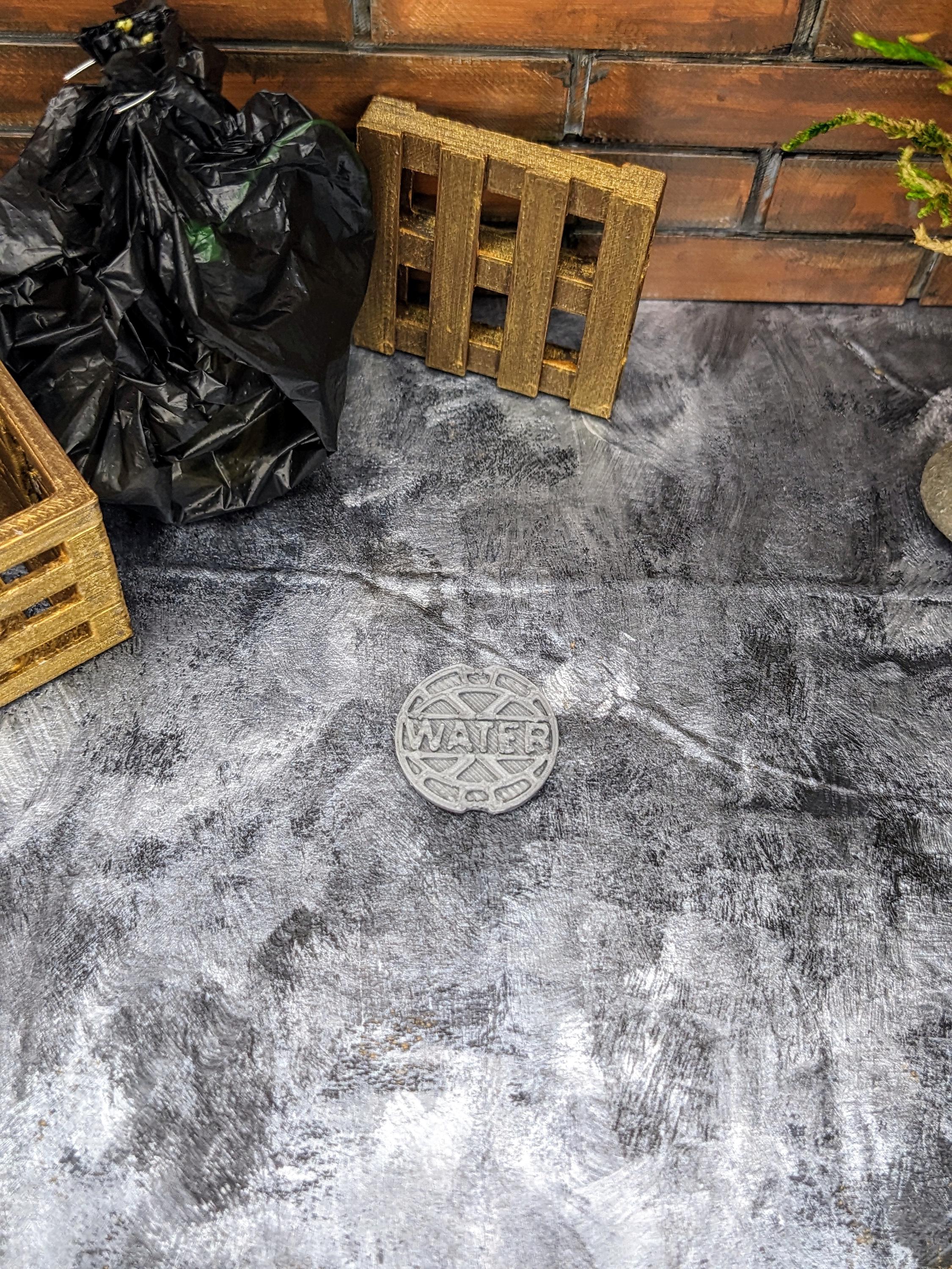 *Original Design!* A water valve cover for your diorama in 1:12 scale. This item is 3D printed with high quality PLA plastic in a metallic grey. Ideal for your parking lot, sidewalk, or alley. Other accessories not included. As this is plastic, it can easily be painted or dry brushed with copper or brown to create a weathered look.