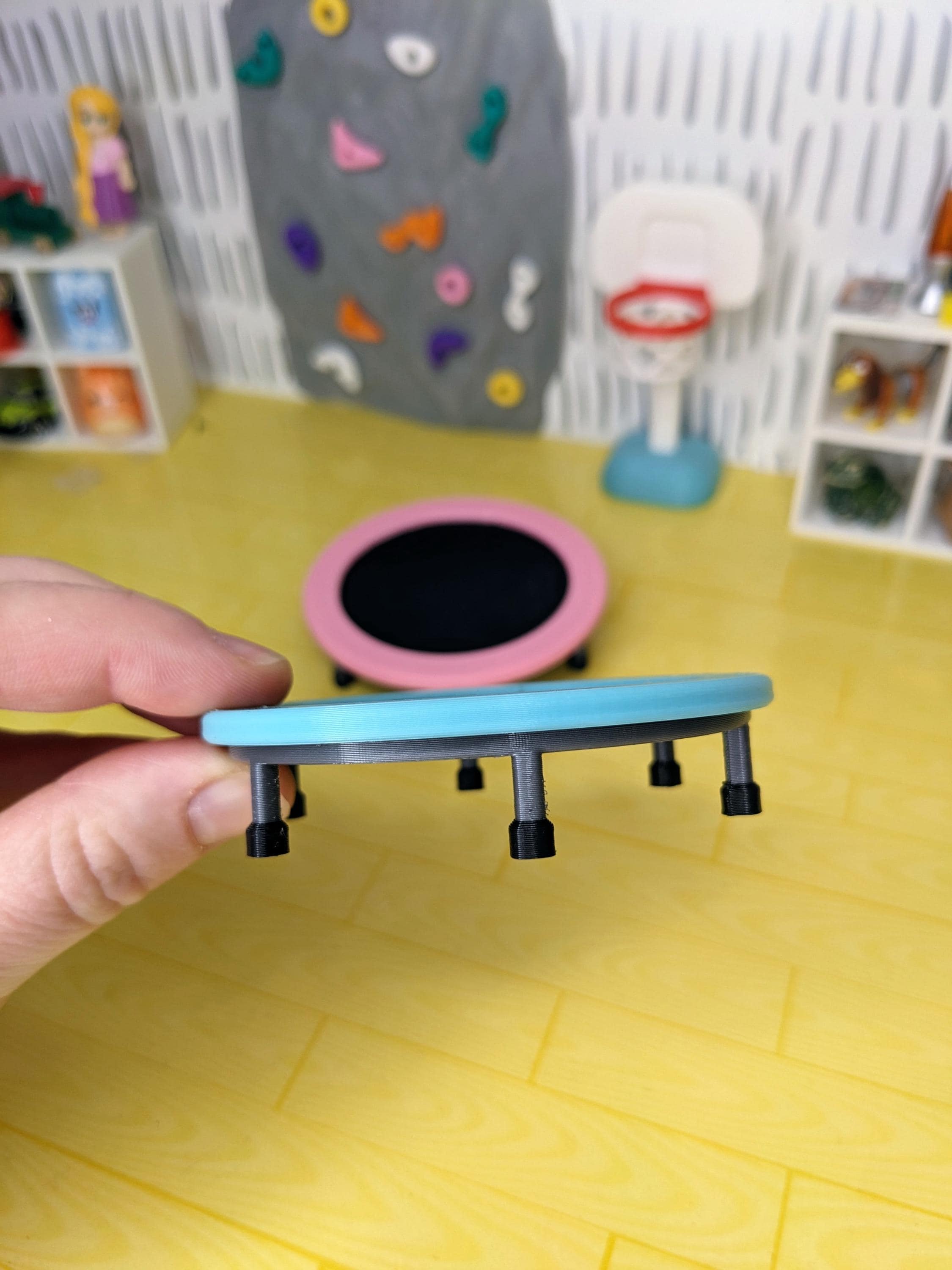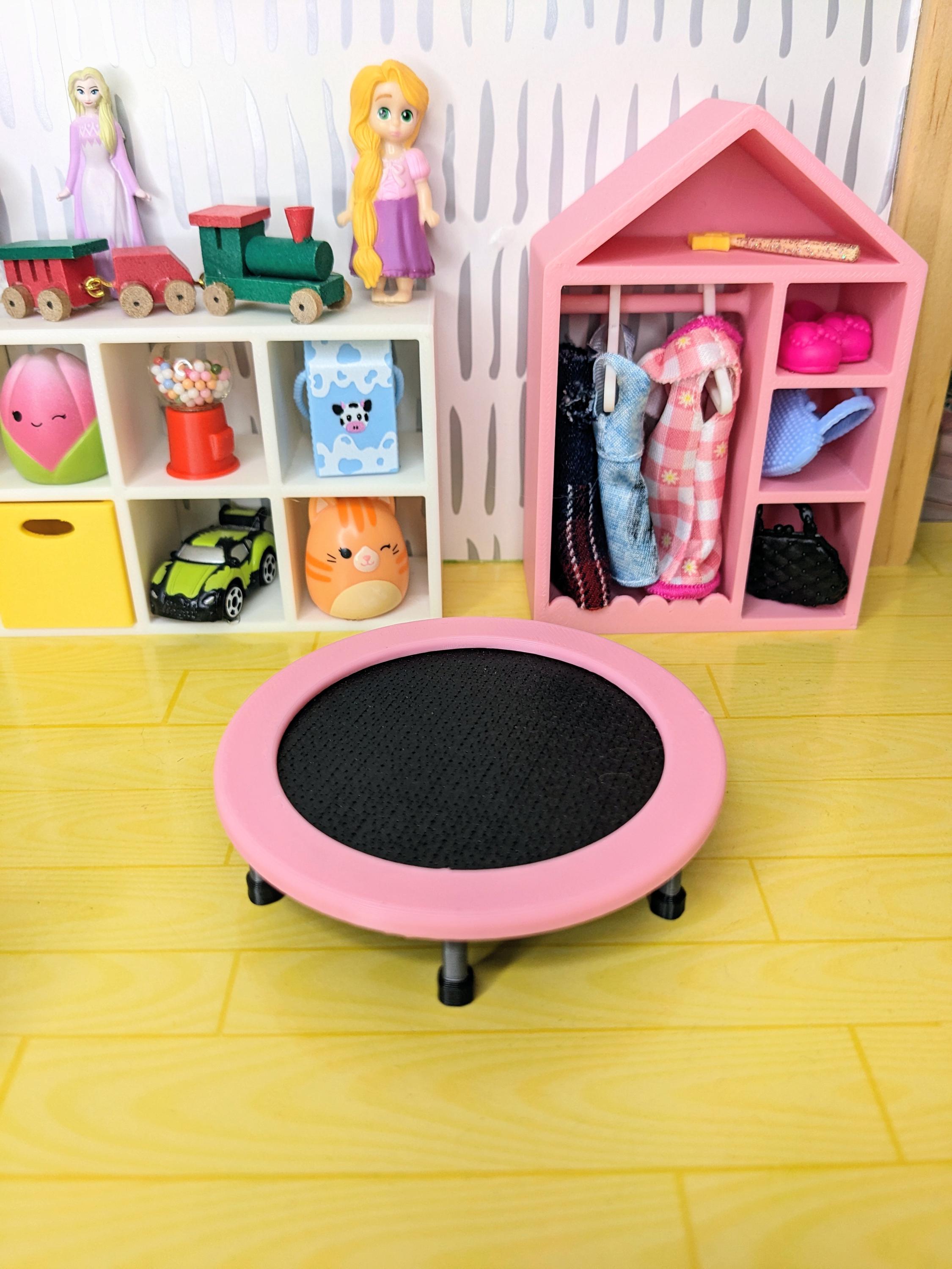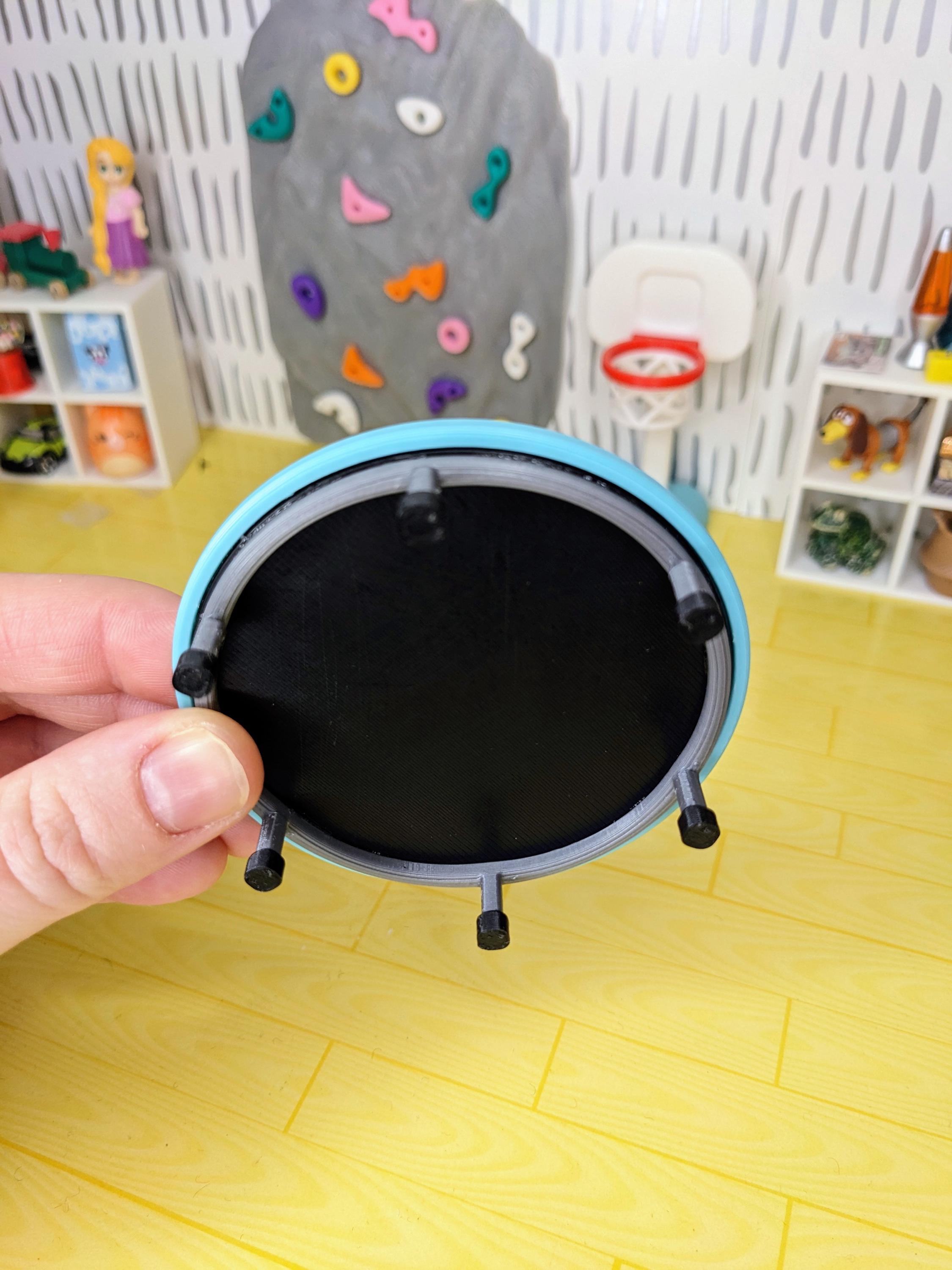 *Original Design!* A kids trampoline in 1:12 scale! This trampoline is 3D printed with high quality PLA plastic, featuring multiple parts all attached together. There is no fabric on this, it is all 3D printed parts. This item is NOT intended for rough play! It is non-functional. Ideal for your backyard, kids room, or fun center!