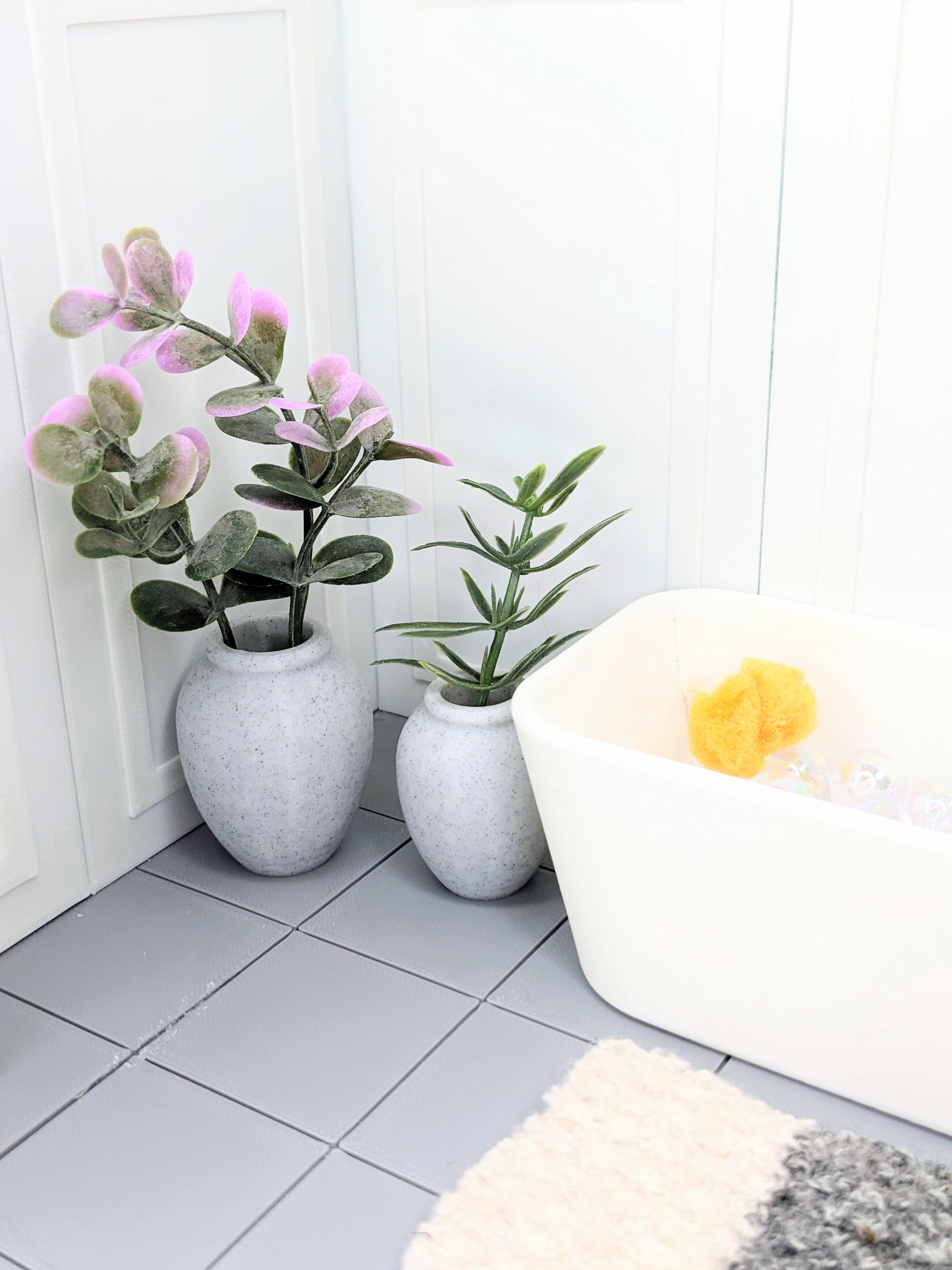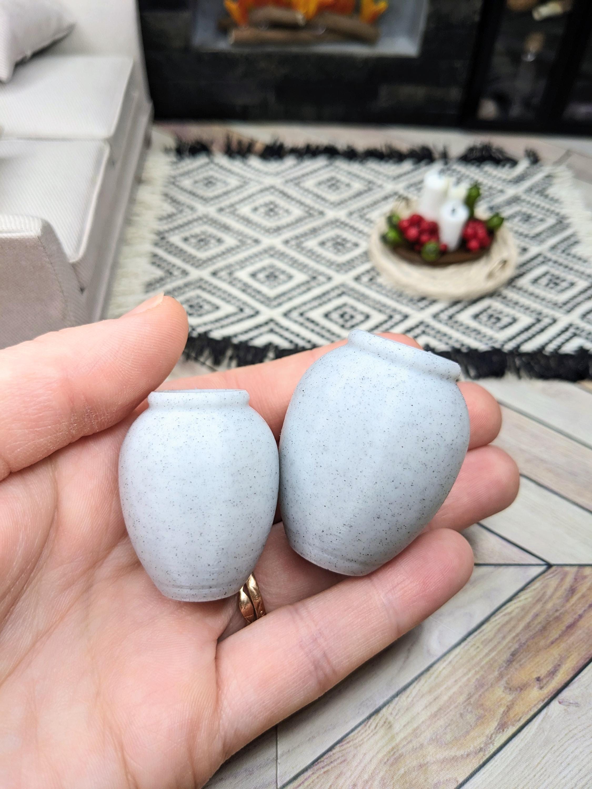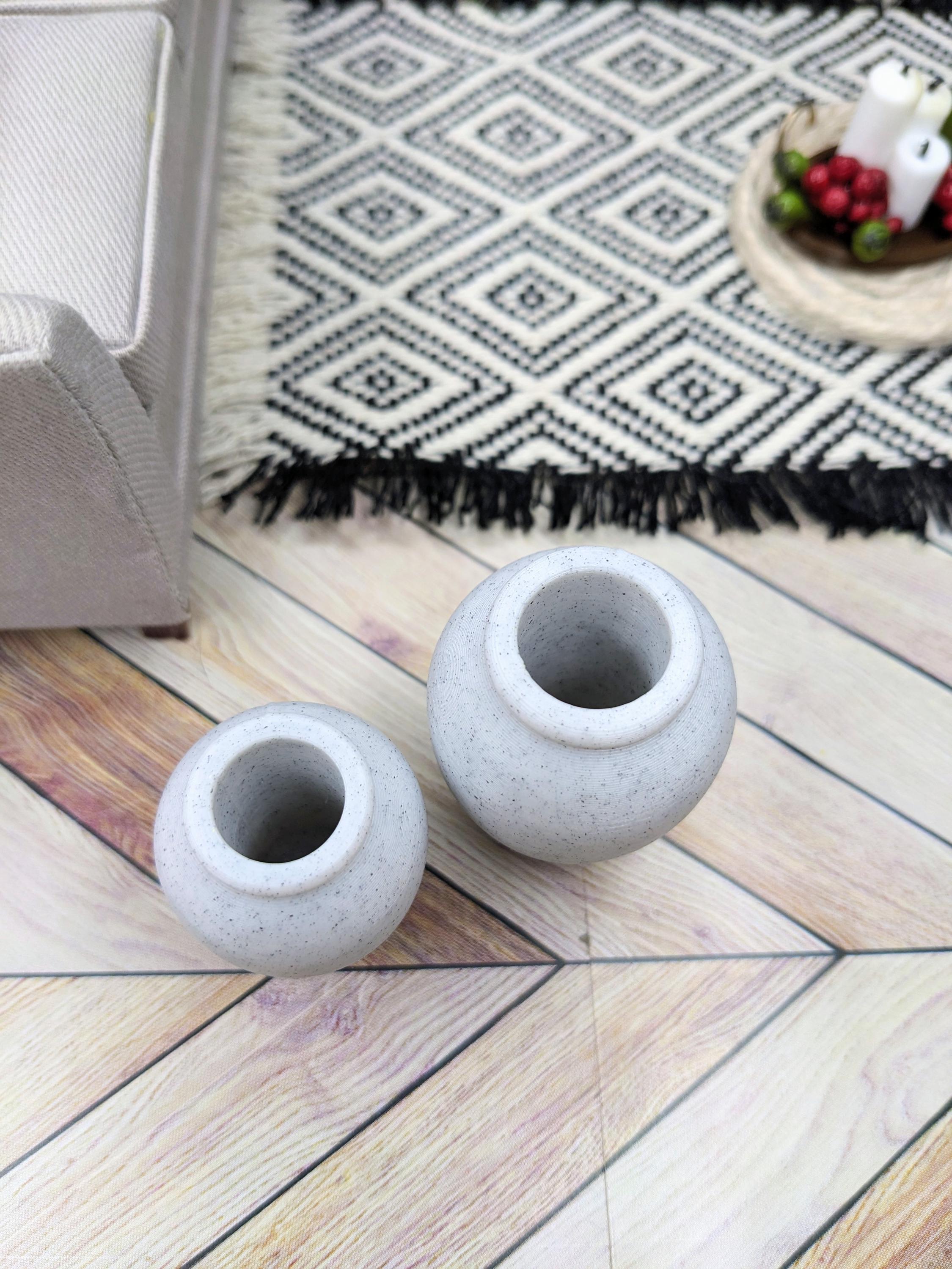 *Original Design!* A 2-piece set of curvy floor vases in 1:12 scale, but could absolutely work for 1:6 as well! This set includes 2 marble colored floor vases with a hollow interior for filling with twigs or flowers. Perfect for decorating around your fireplace, entryway, or in your bathroom. These vases are 3D printed with high quality PLA plastic in marble white color. Greenery and other accessories NOT included.
