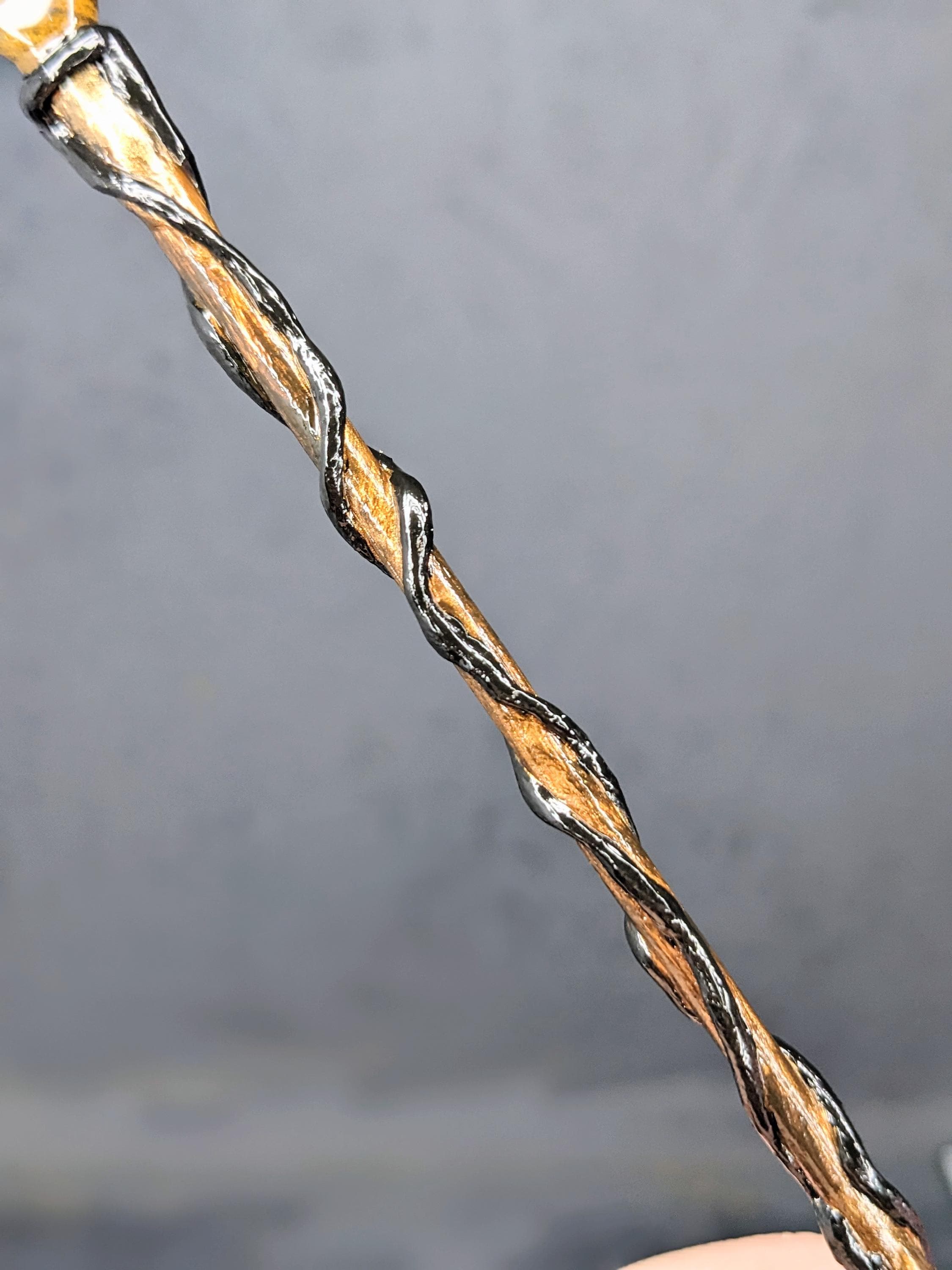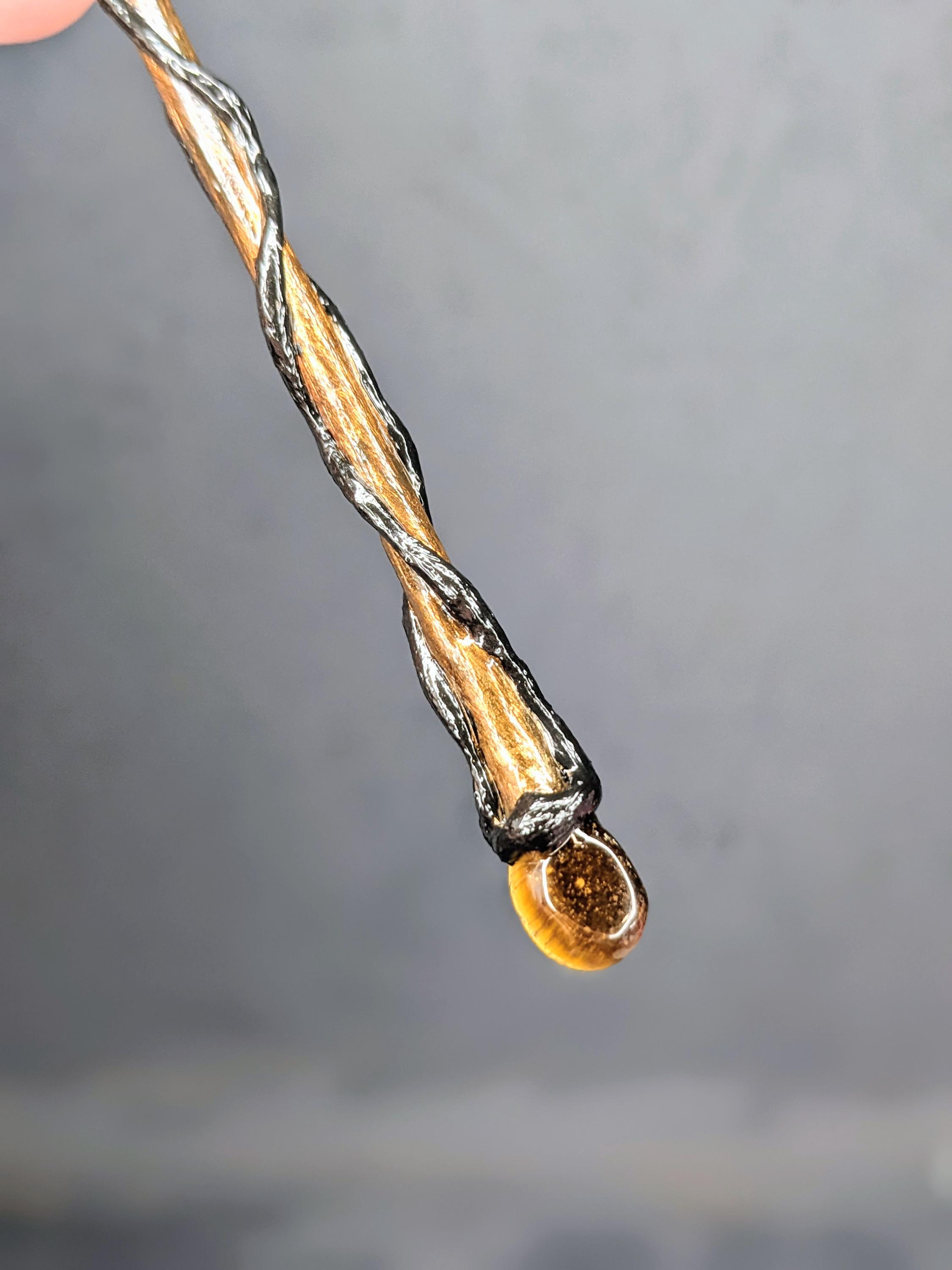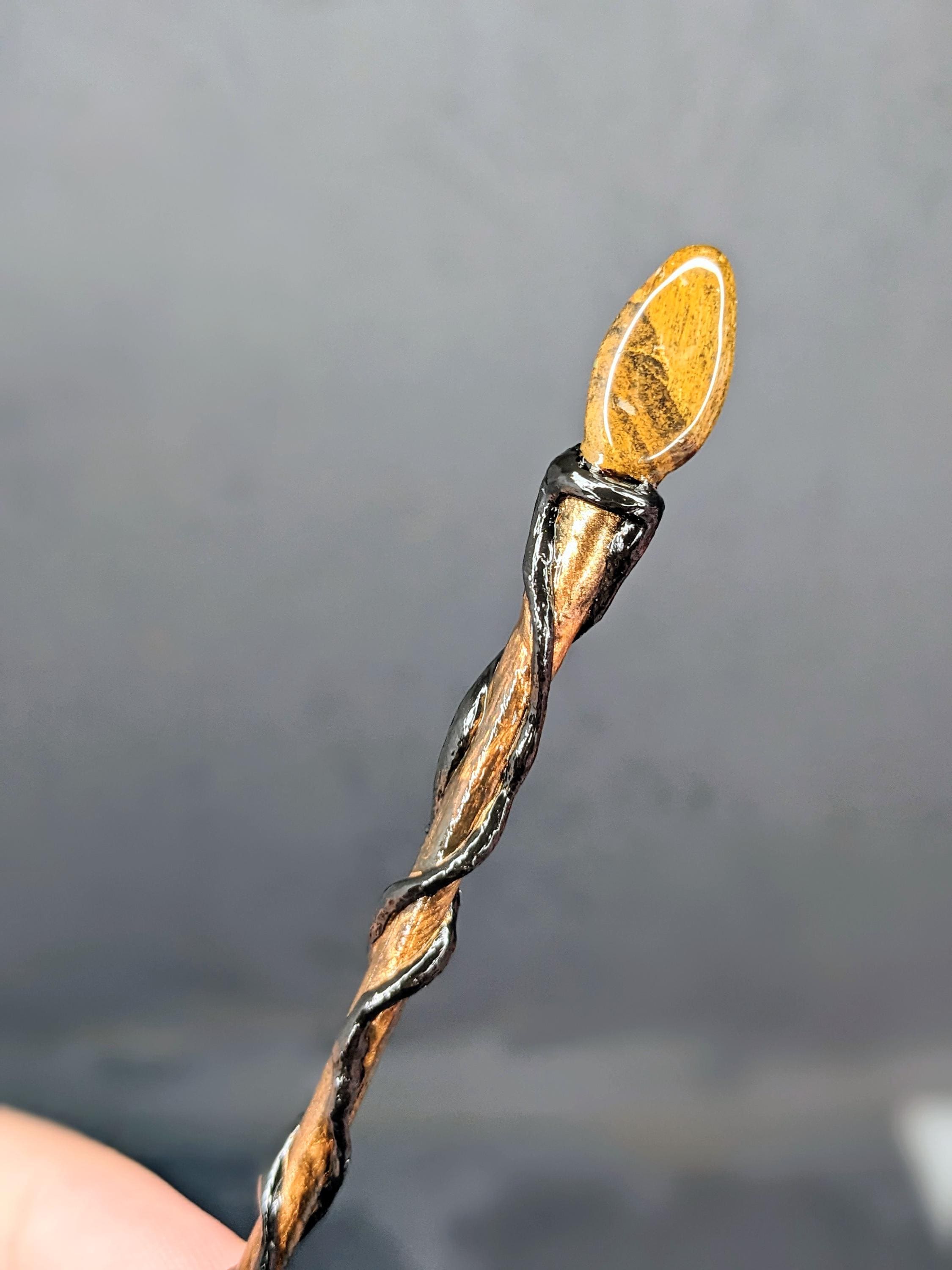 *Handmade Item!* A fantasy tigers eye staff for your diorama or miniature display. This would work for both 1:12 or 1:6, please verify size for your desired scene. When making this, I wanted to use a color scheme that matched the tigers eye stones.