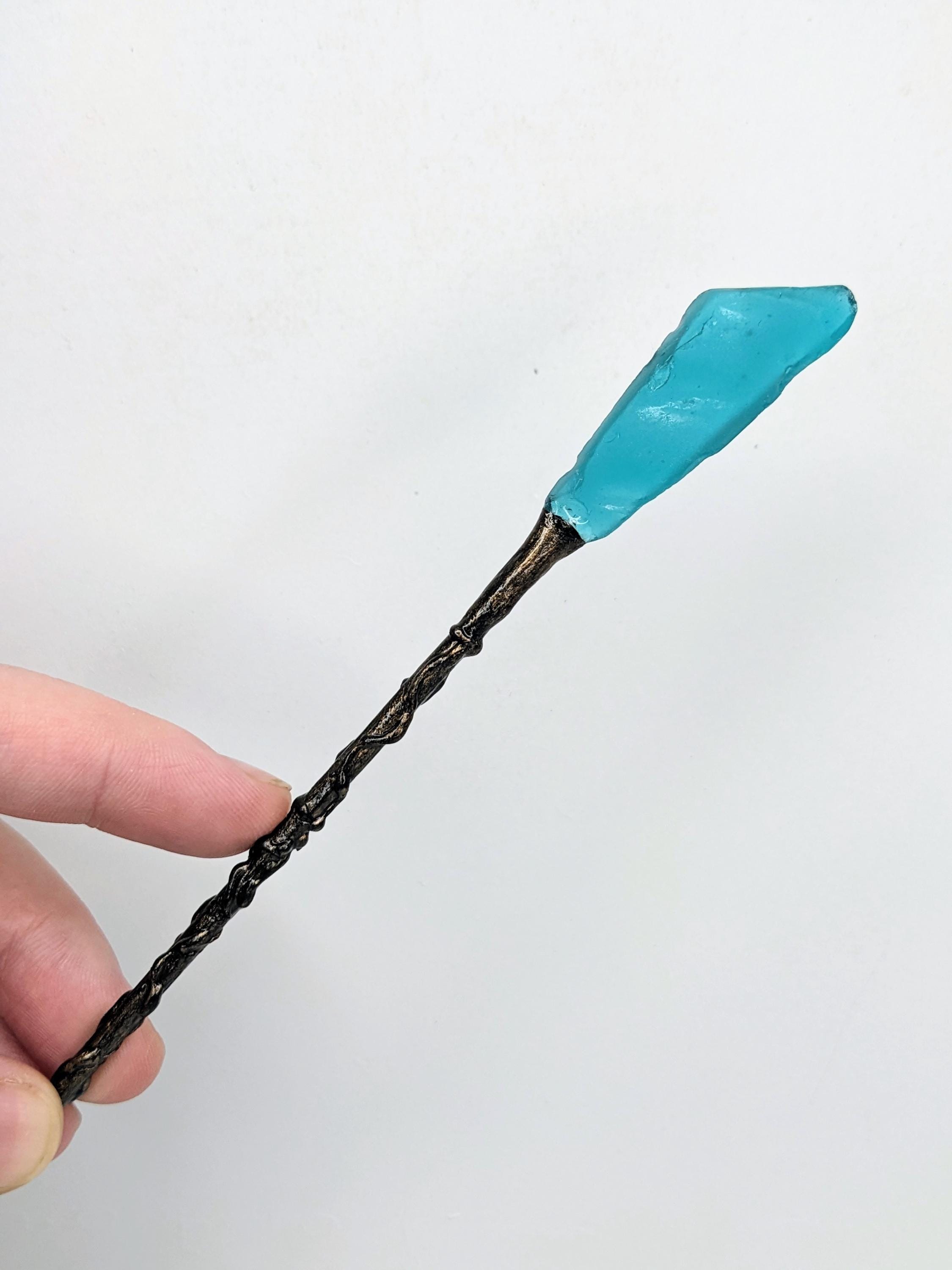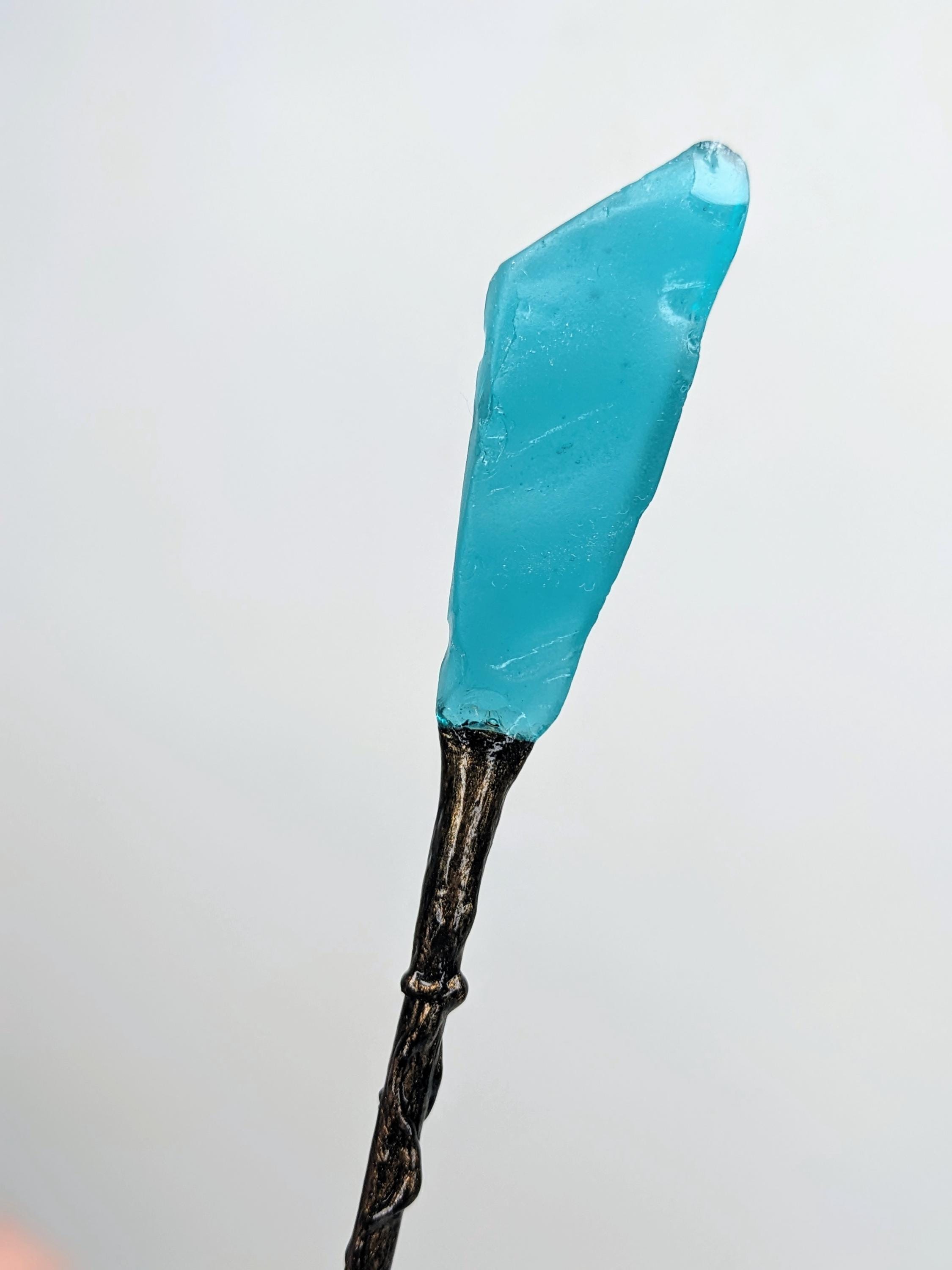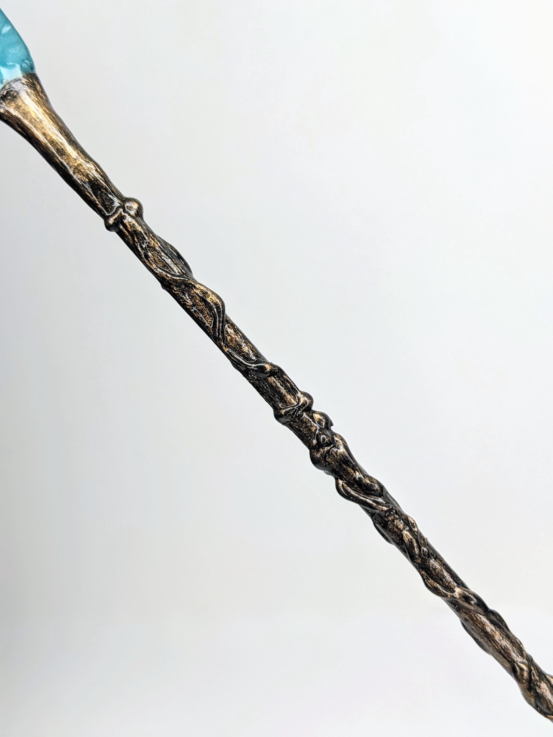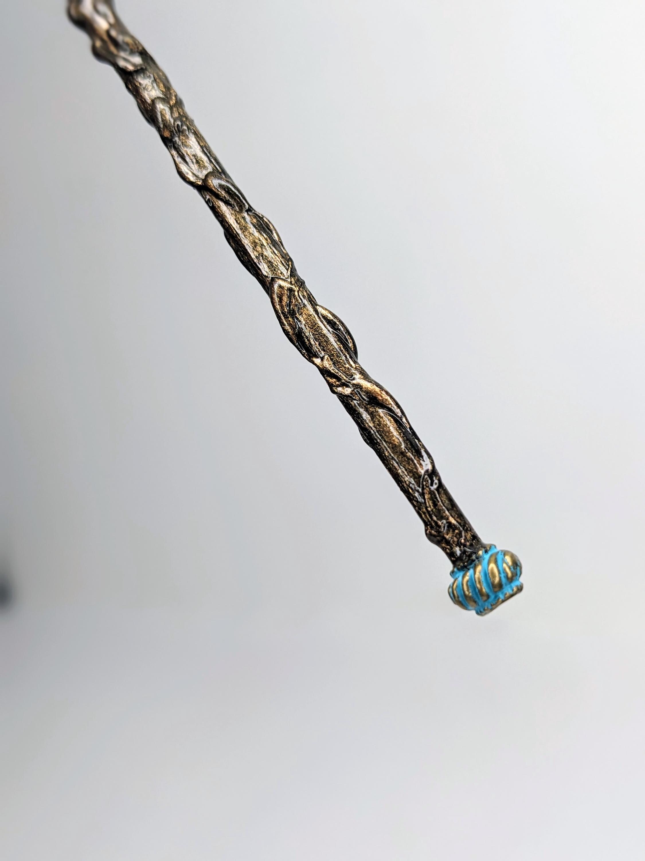*Handmade Item!* A fantasy staff for your diorama or miniature display. This would work for both 1:12 or 1:6, please verify size for your desired scene. When making this, I wanted to keep the color palate simple, and I love the combination of blue and bronze.