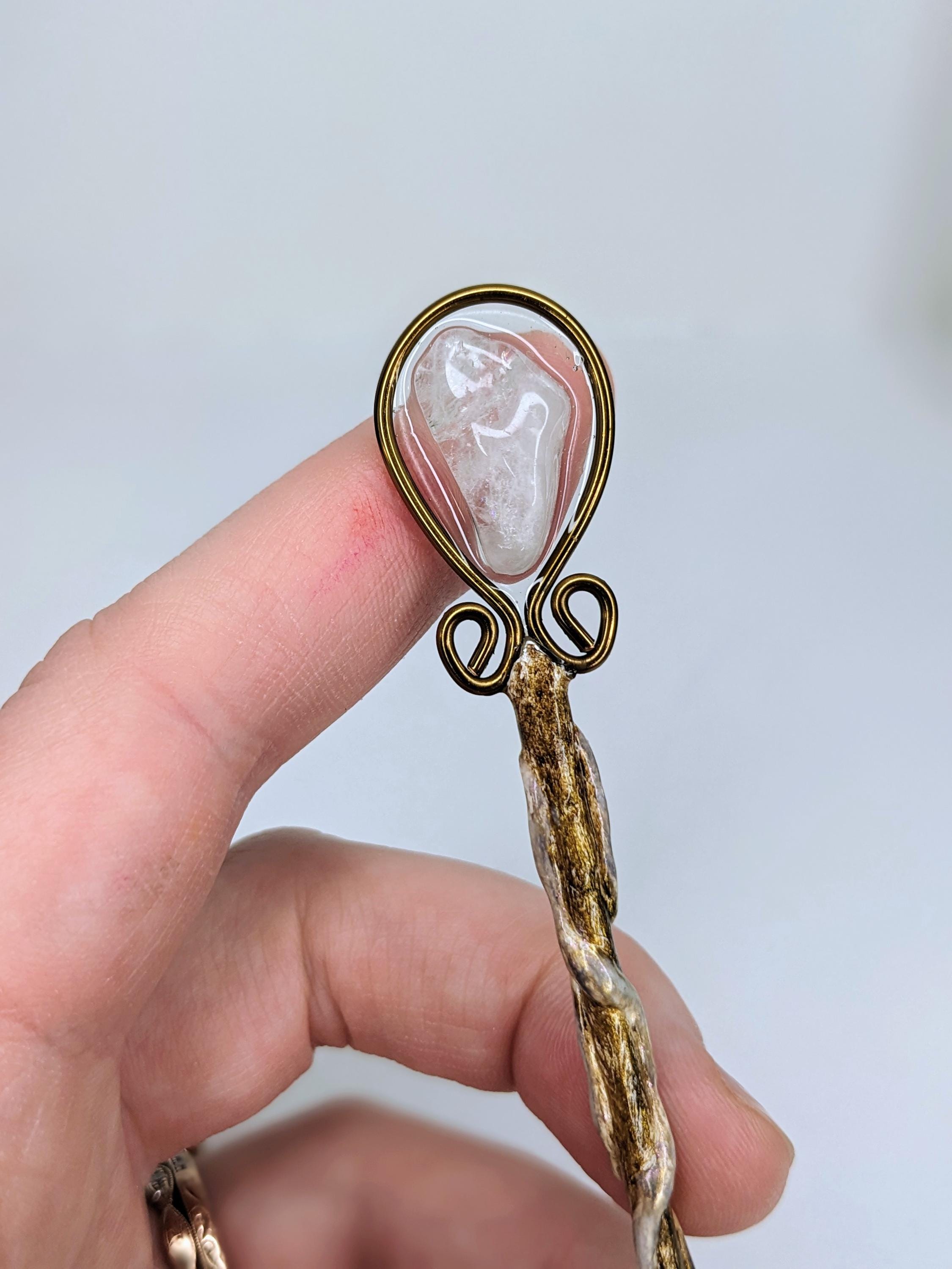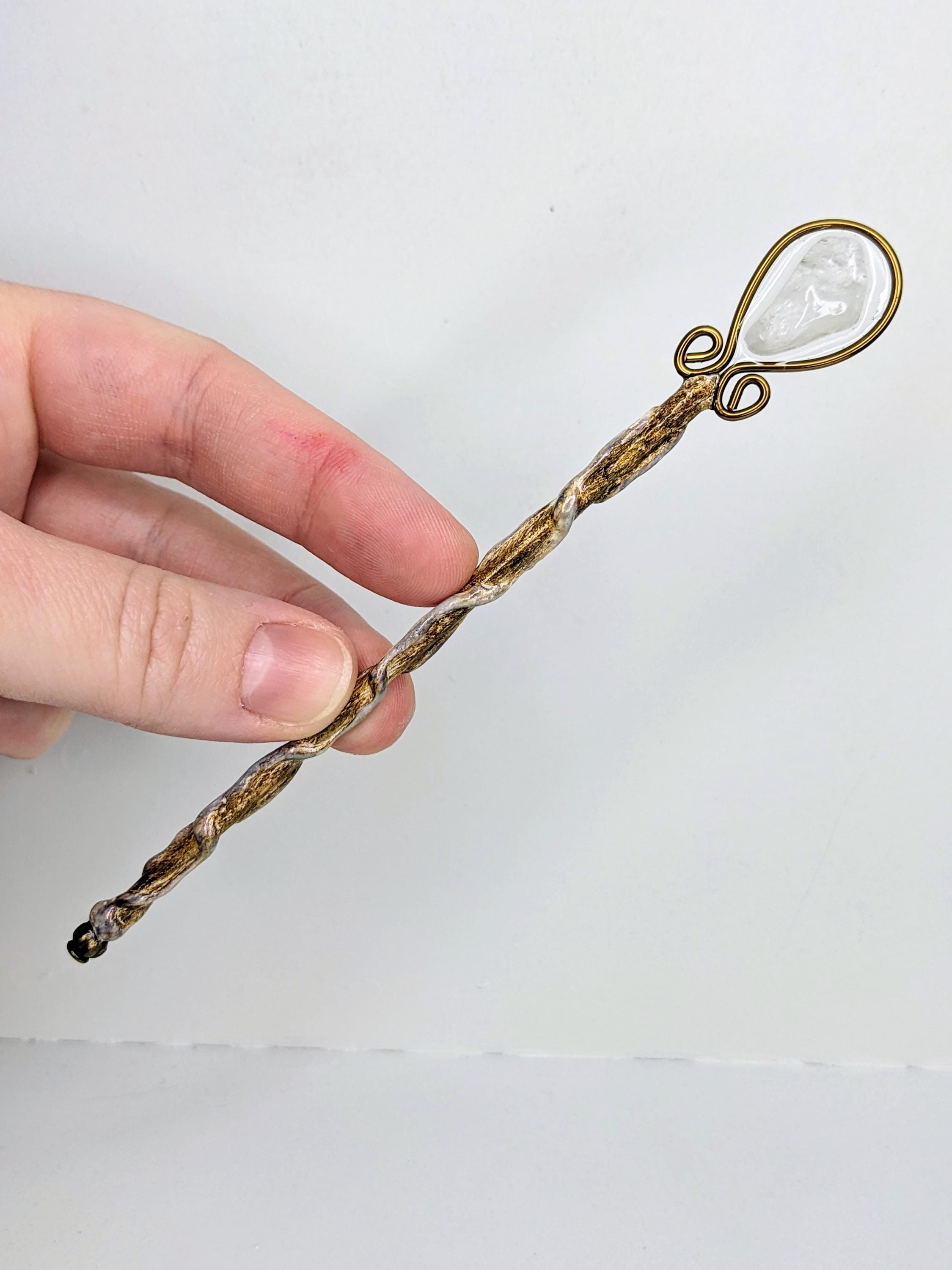 *Handmade Item!* A fantasy staff for your diorama or miniature display. This would work for both 1:12 or 1:6, please verify size for your desired scene. When making this, I wanted to see what effects I could make by "floating" a stone in resin, and I was thrilled with the result. I imagine it wielded by a God or Goddess.