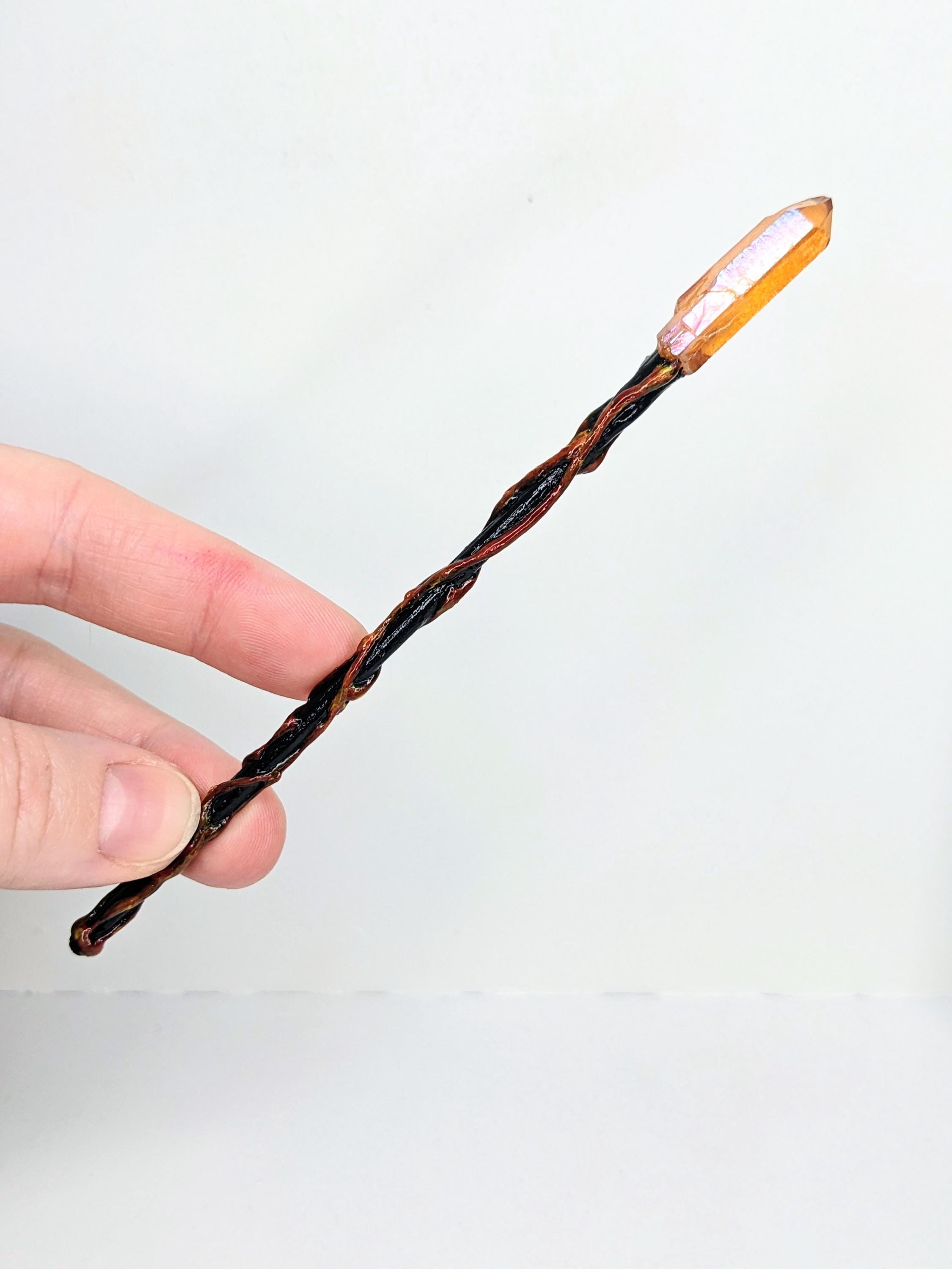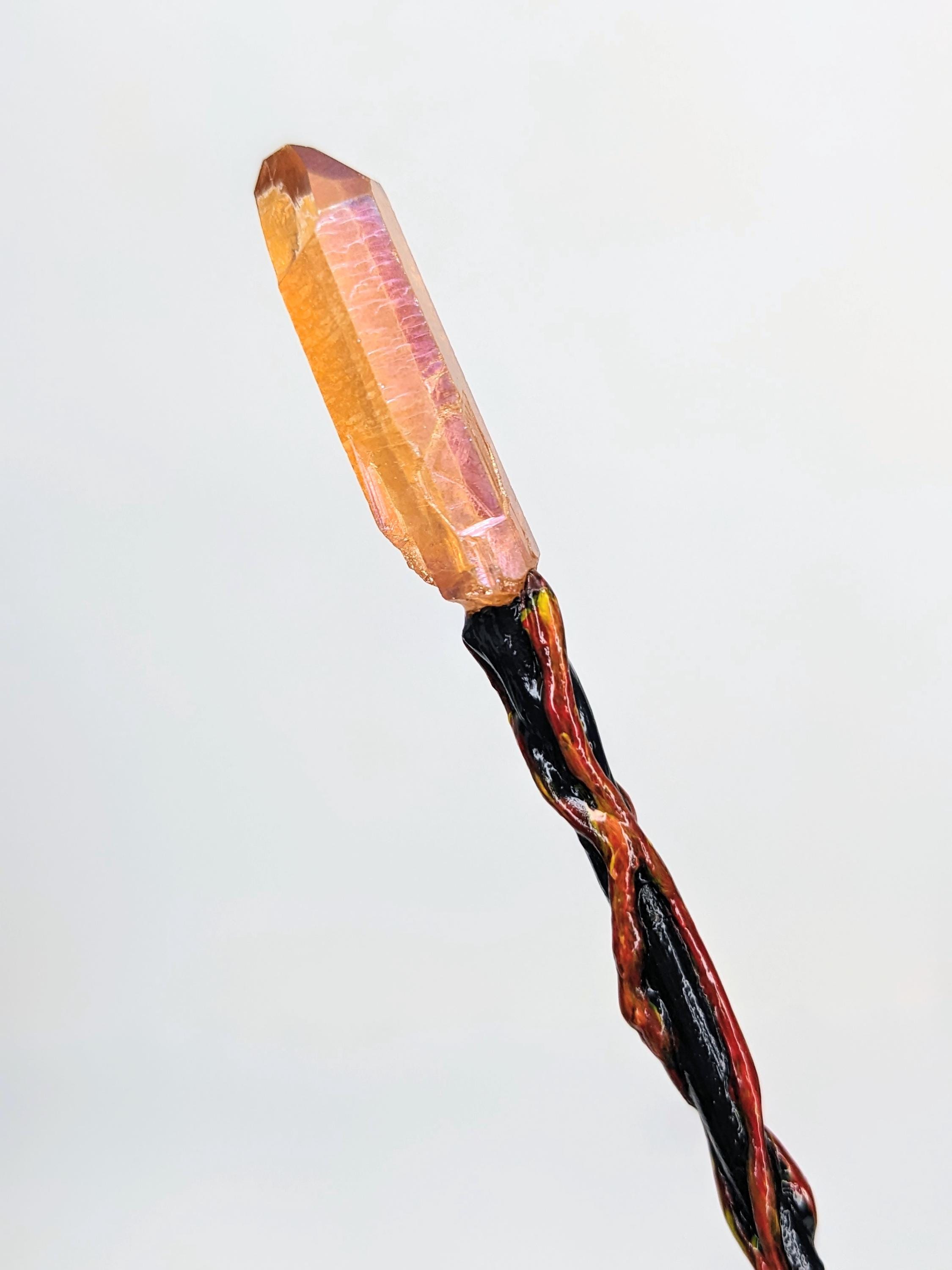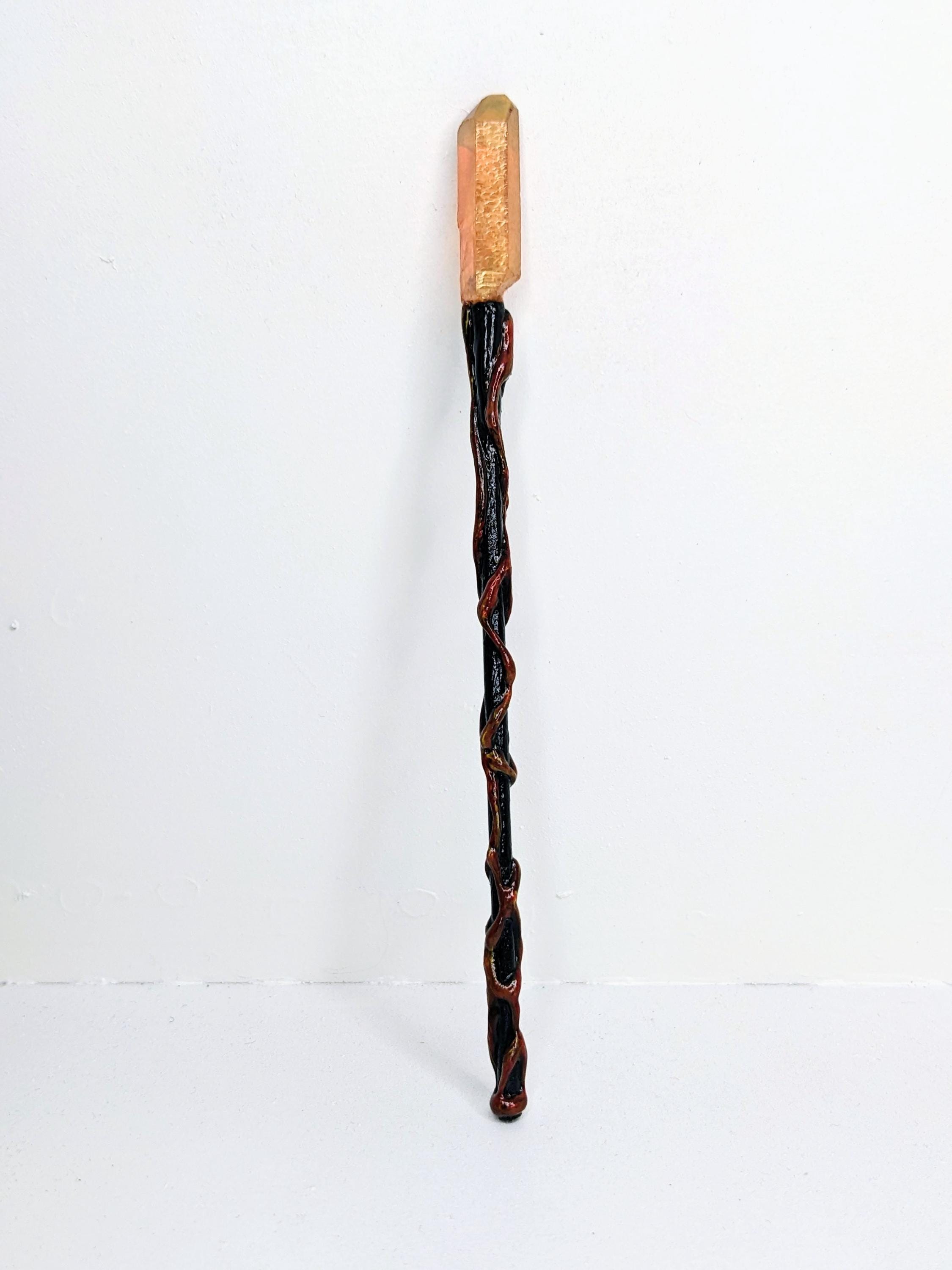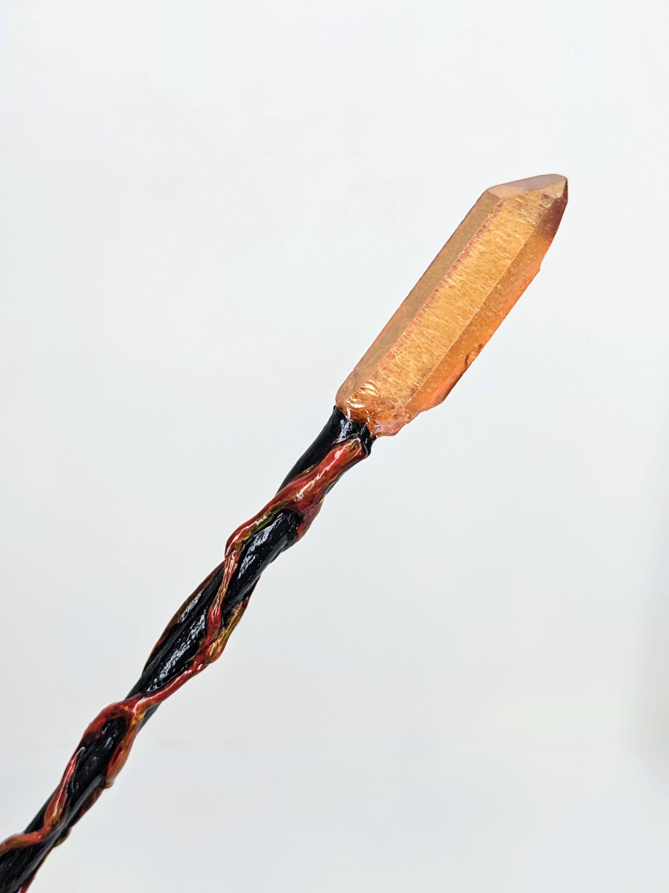 *Handmade Item!* A fantasy fire staff for your diorama or miniature display. This would work for both 1:12 or 1:6, please verify size for your desired scene. When making this, I fell in love with the amber-orange top crystal and knew right away that it would be a fire staff.