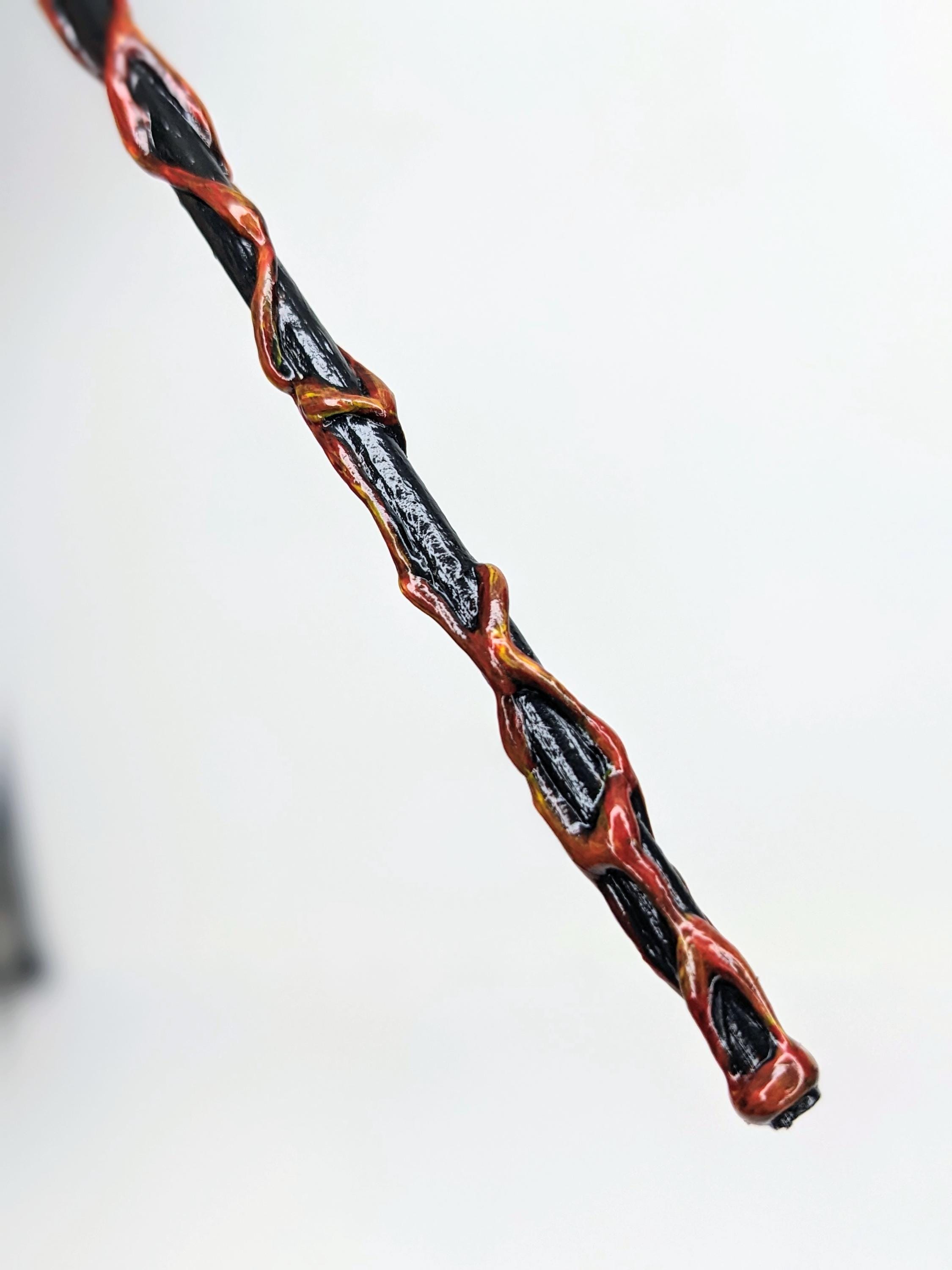 -hand-painted red and yellow veins wrapped around the handle