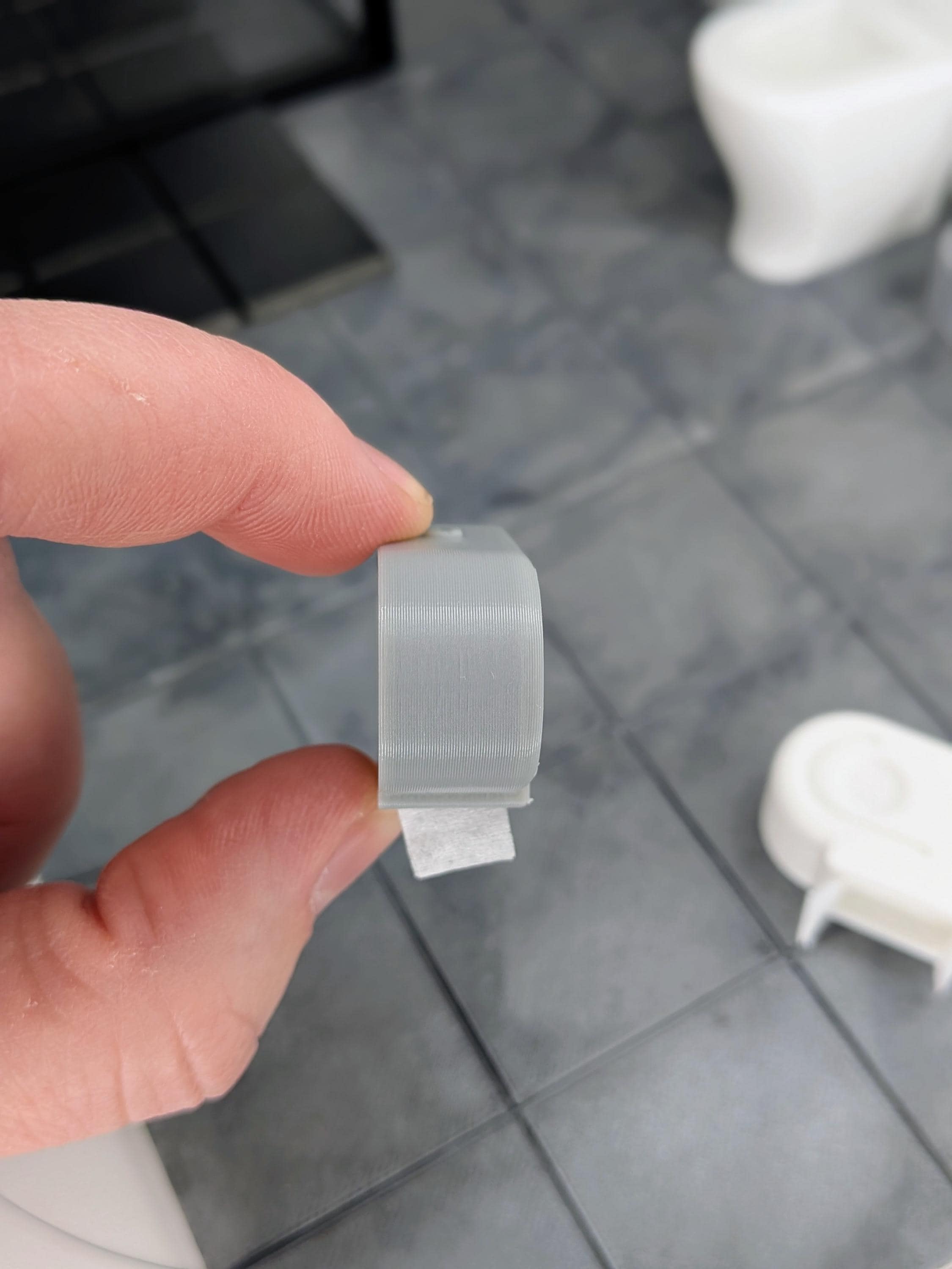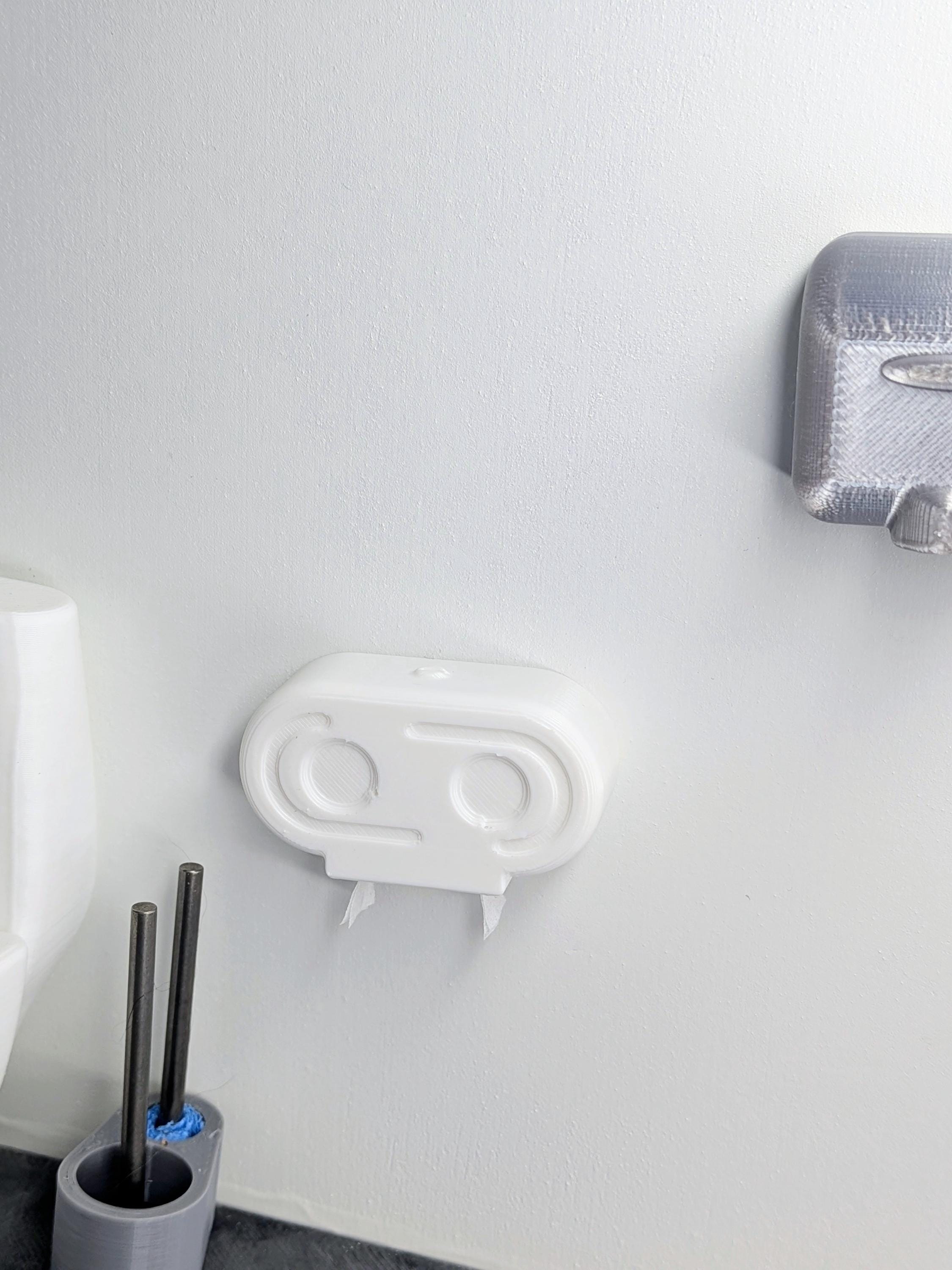 -Toilet paper dispenser has a little piece of paper glued in place. If you don't want it visible, you can tuck it inside the cavity or simply remove it.